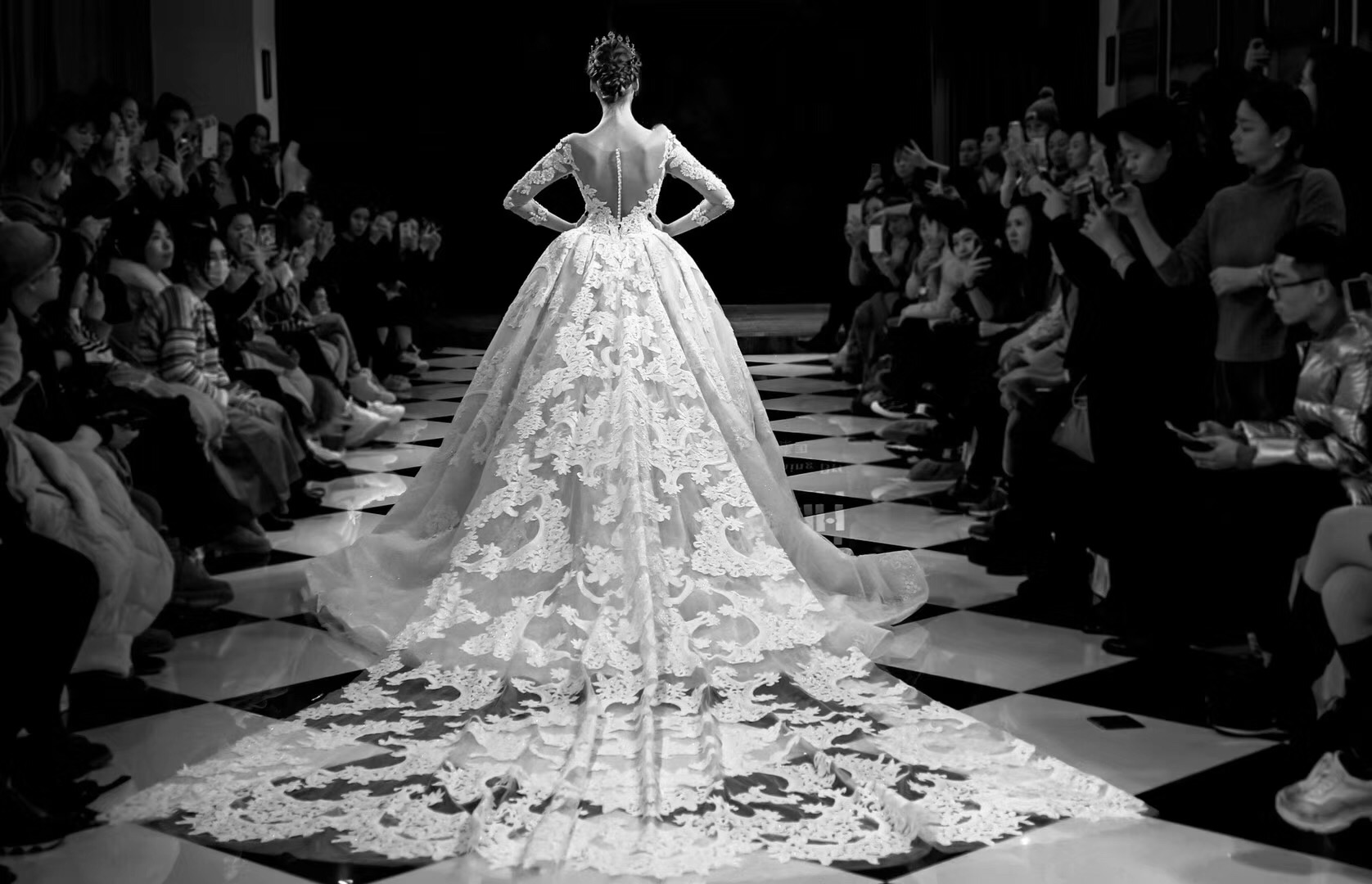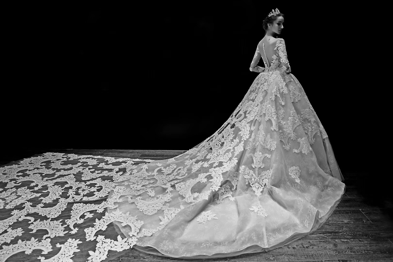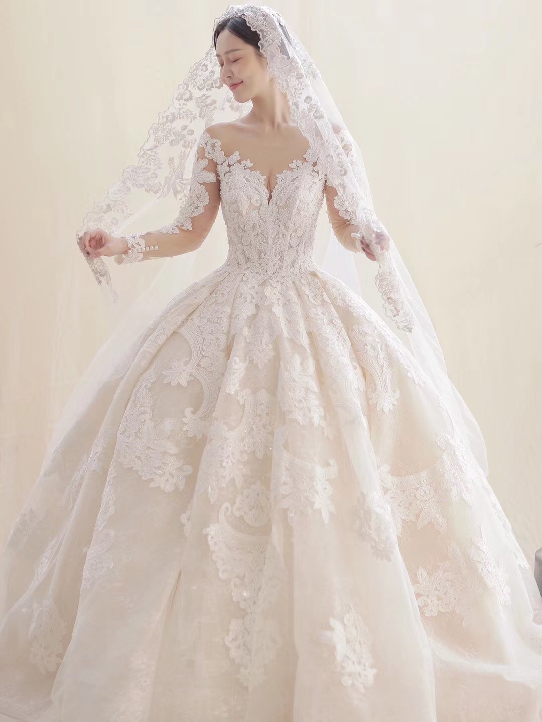 惊艳了时光的重工蕾丝大拖尾婚纱~