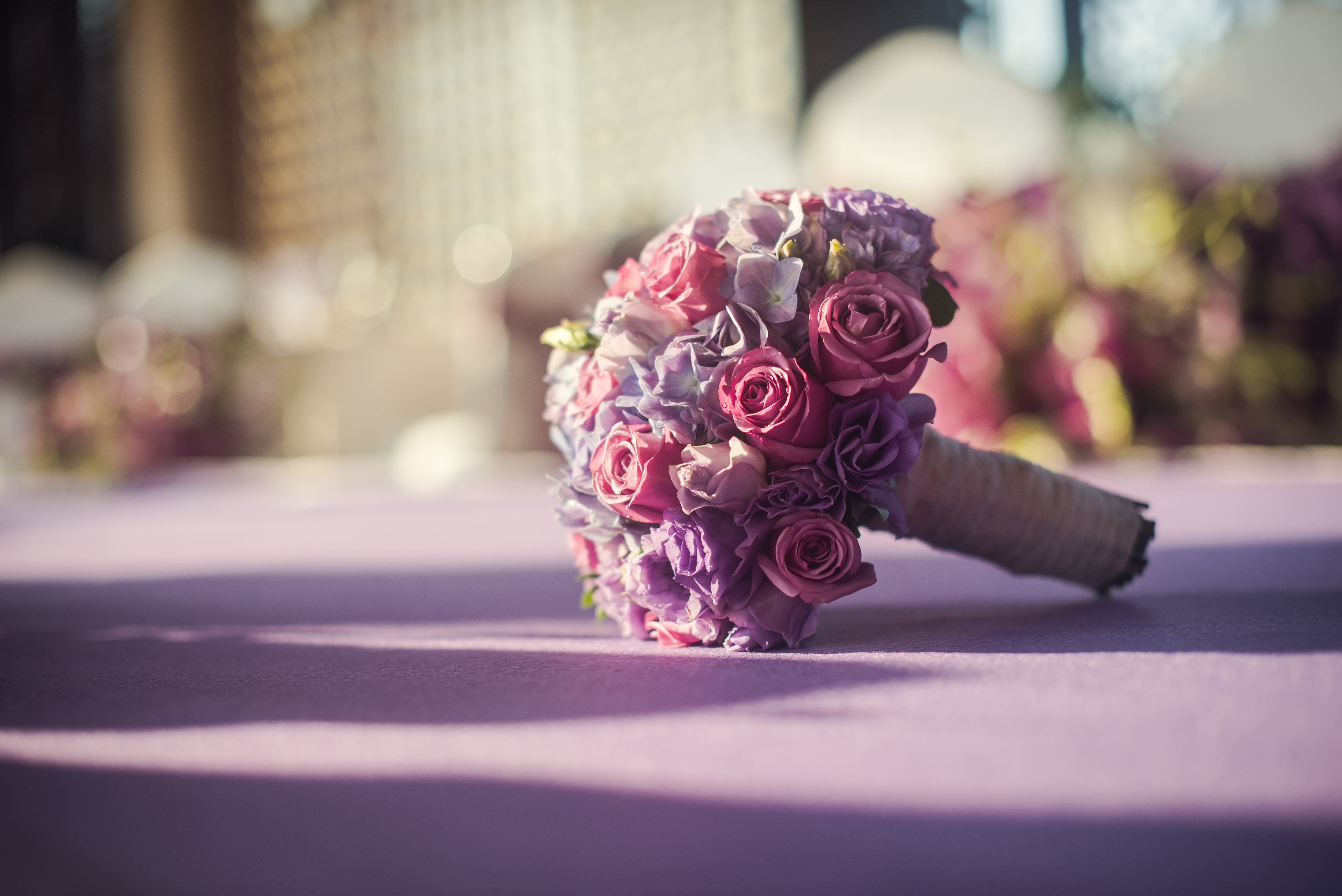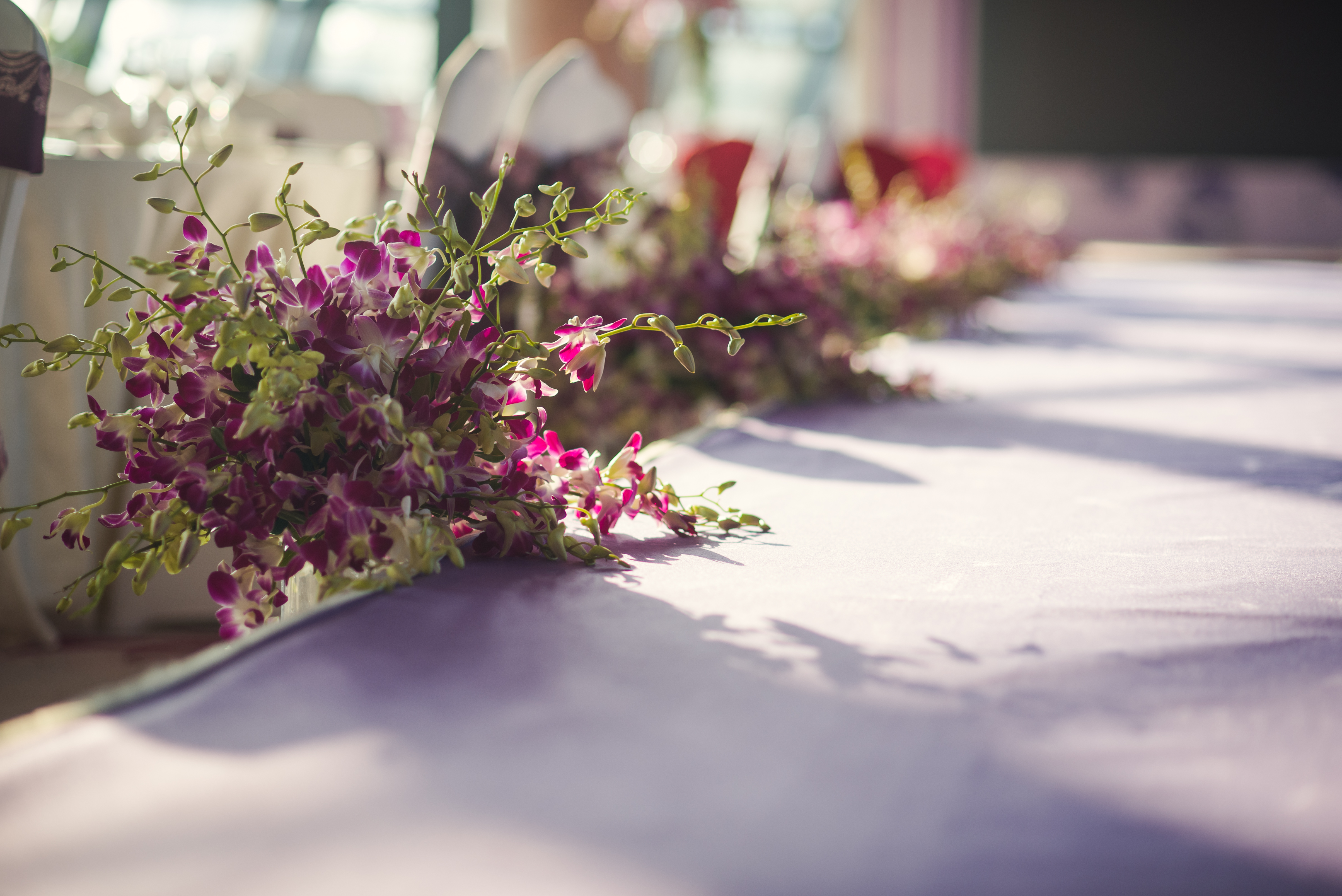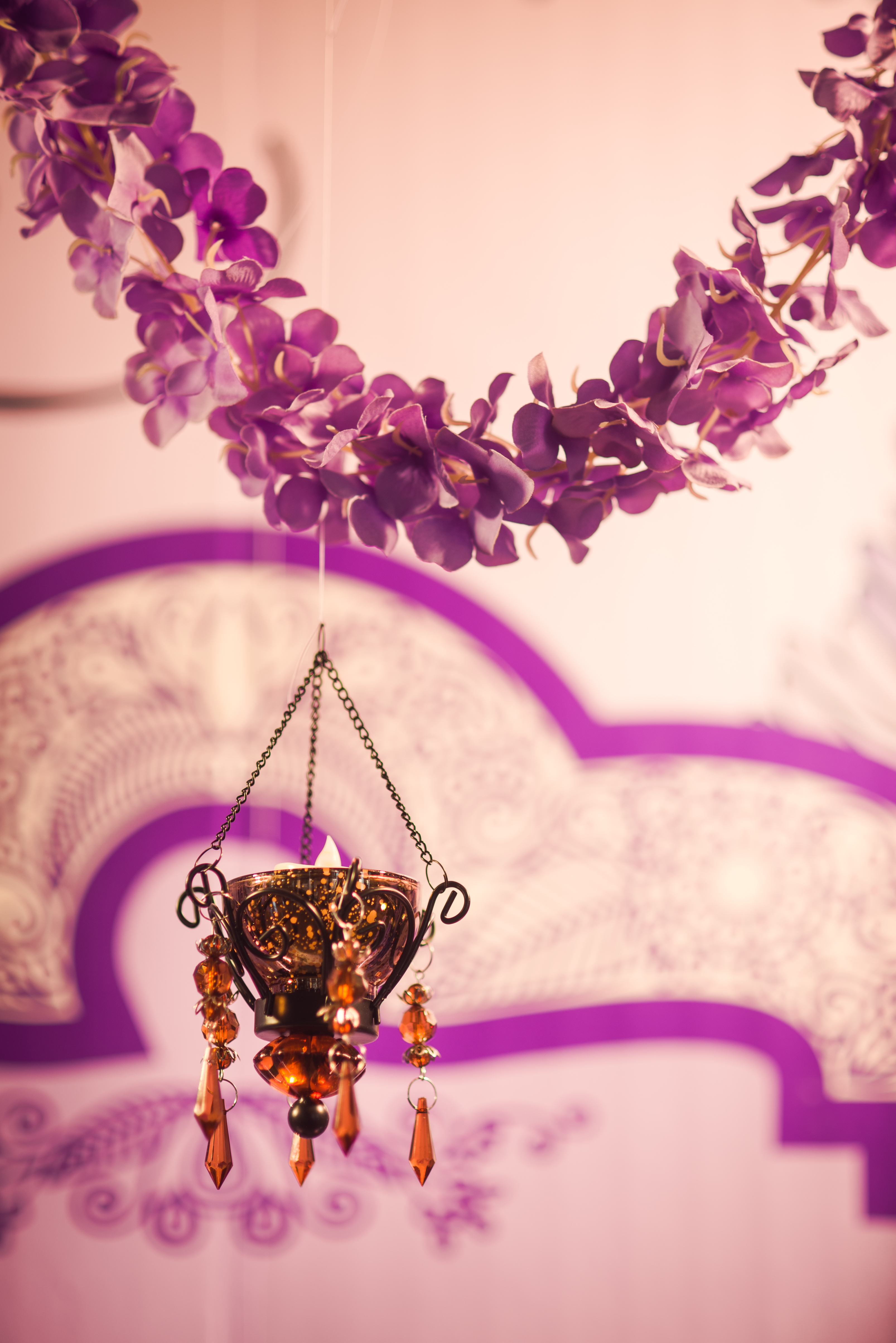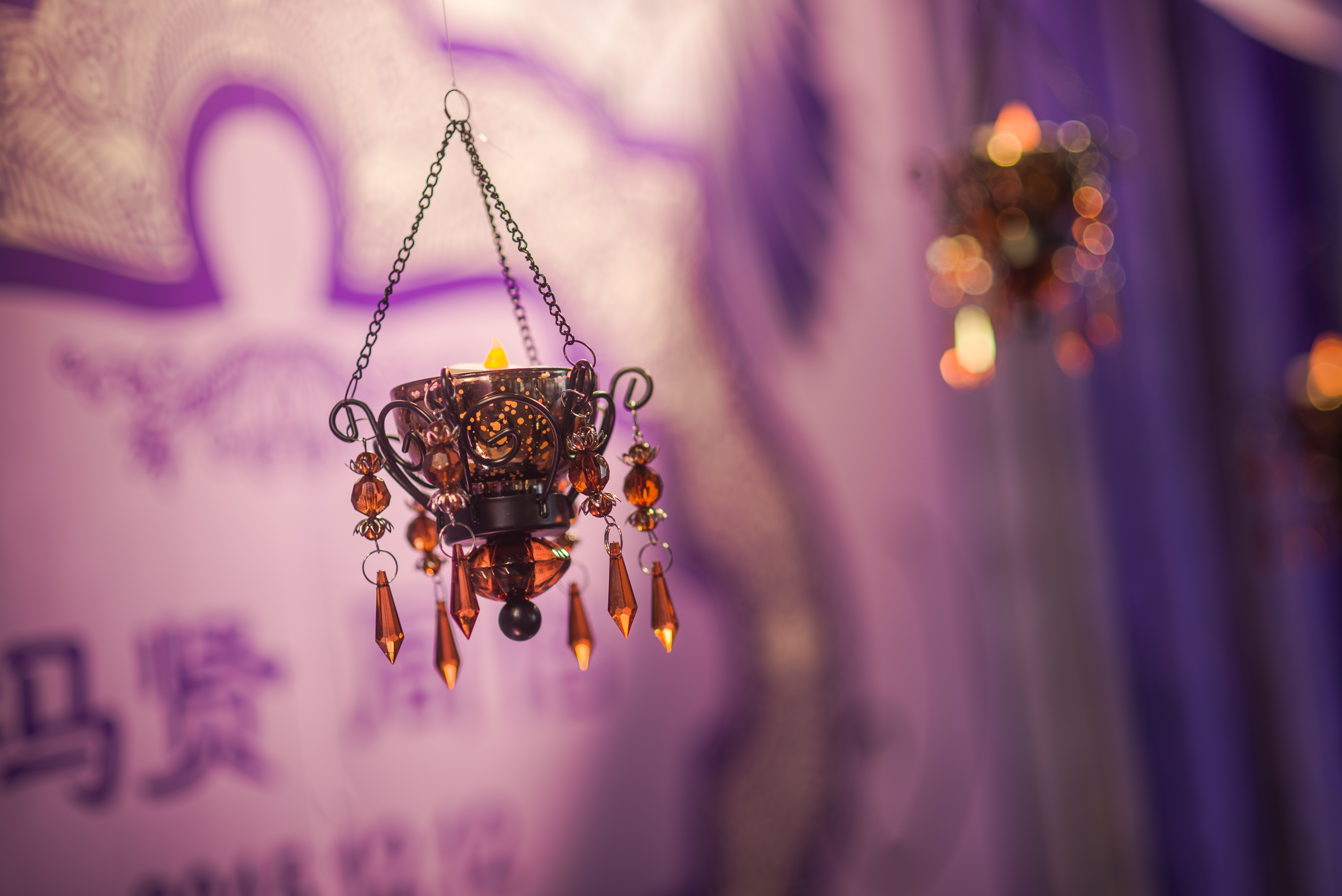 合影区:桁架9.6平米/KT板写真背景1.2mx3m/紫色雪纺布20m/渐变丝带背景2组/地面平台KT板写真2平米/琉璃灯3个/东南亚风格抱枕2个/紫藤花串4串/琉璃酒杯2个/复古相框1个/白色纱幔2m/琉璃烛台2个/铁艺风灯1个/鲜花1组/KT板写真指示牌1个
