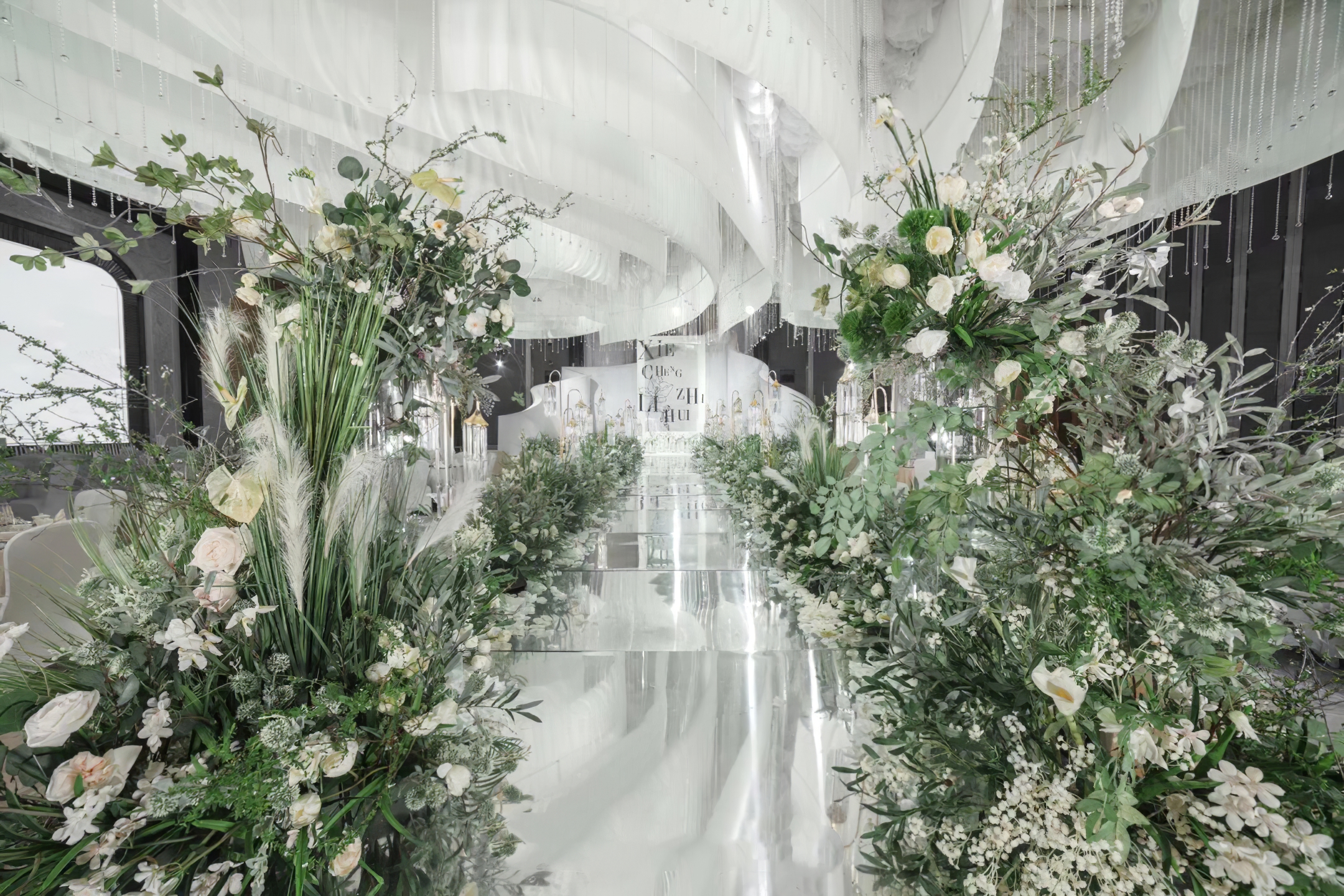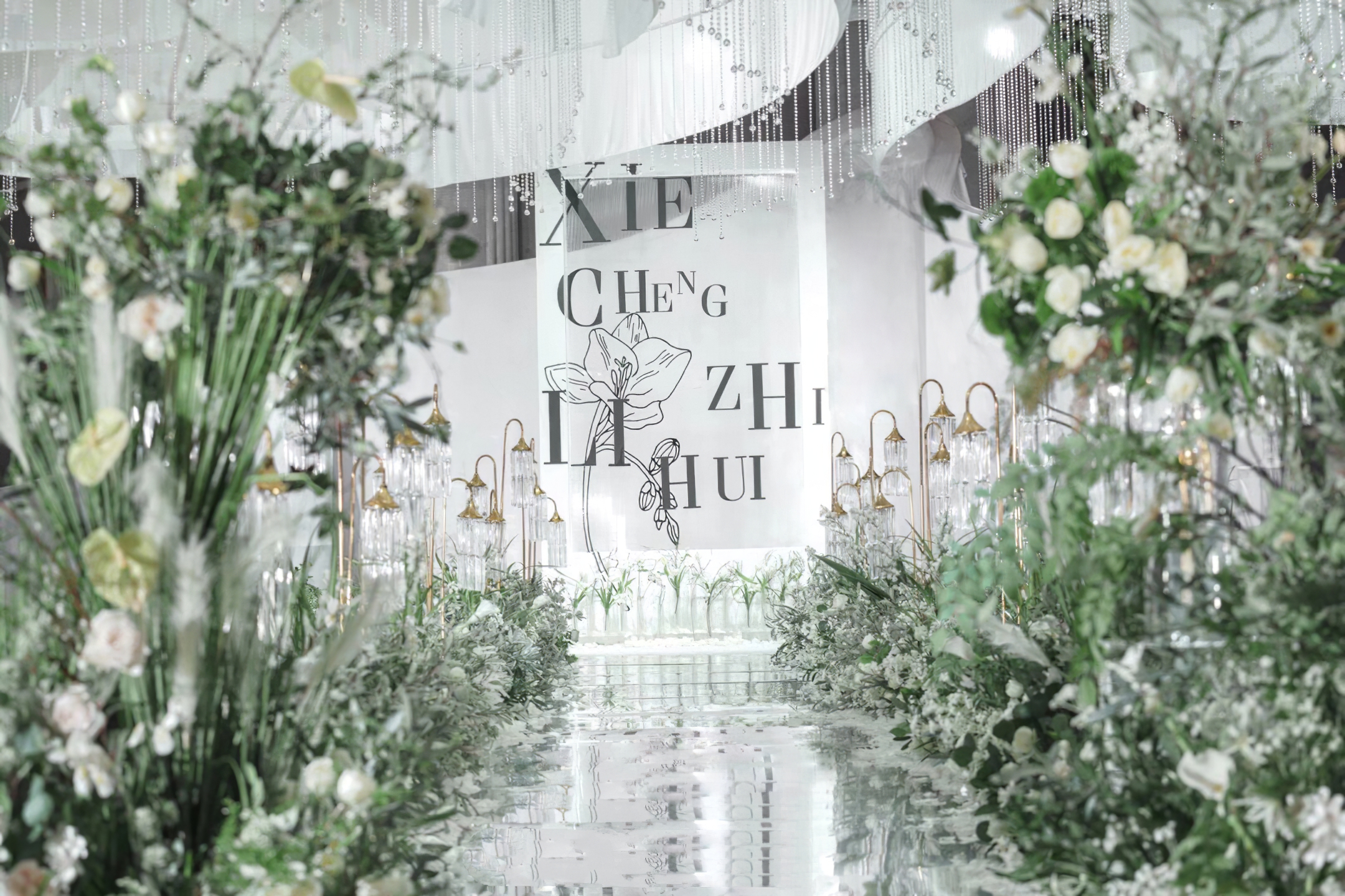 舞台背景、通道装饰、宾客观礼区装饰布置,结合花艺、灯光,营造不一样的婚礼氛围,按照新人的喜好要求量身定制