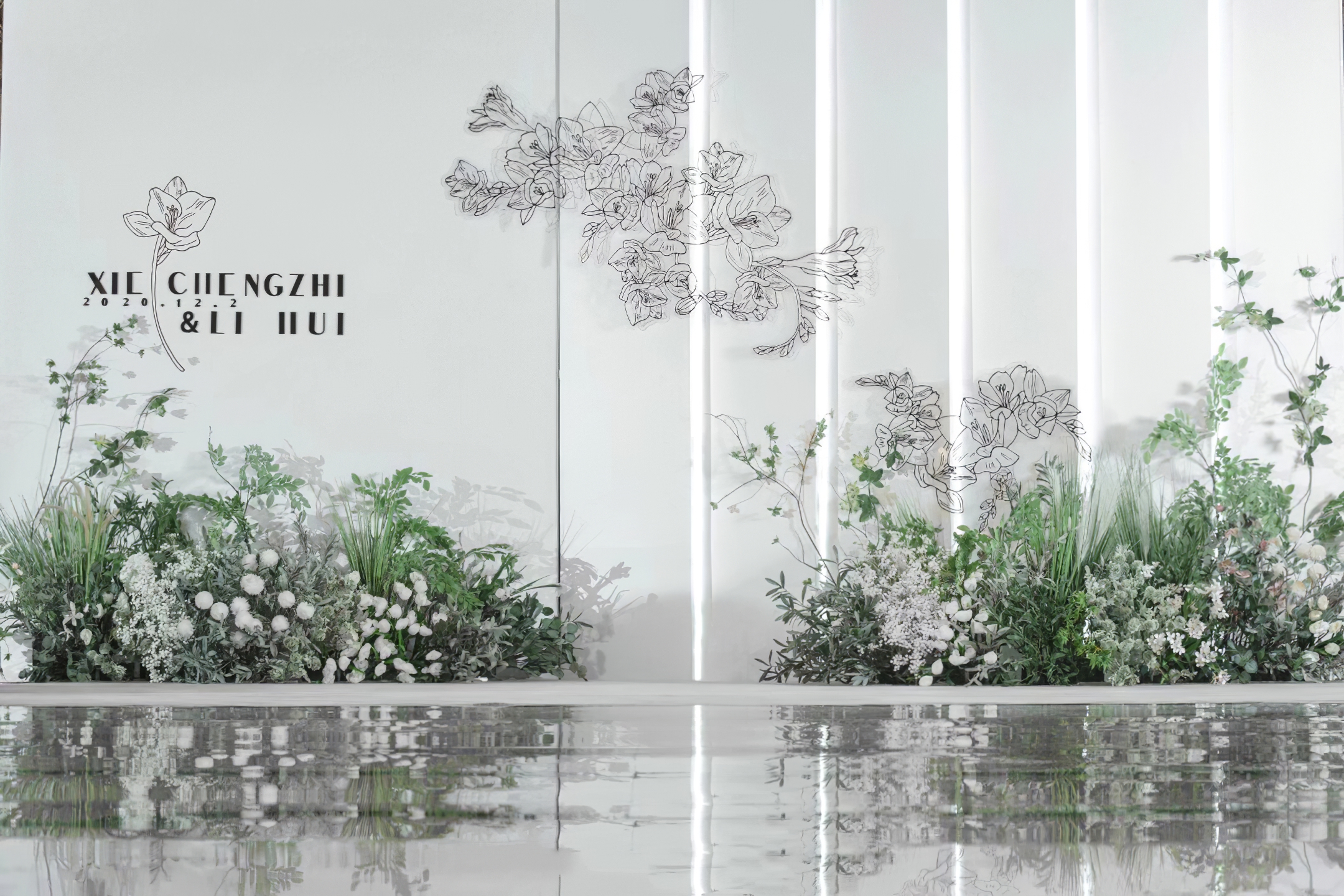 仿真花艺装饰,资深花艺师现场制作花艺,保证呈现客人满意的现场效果
