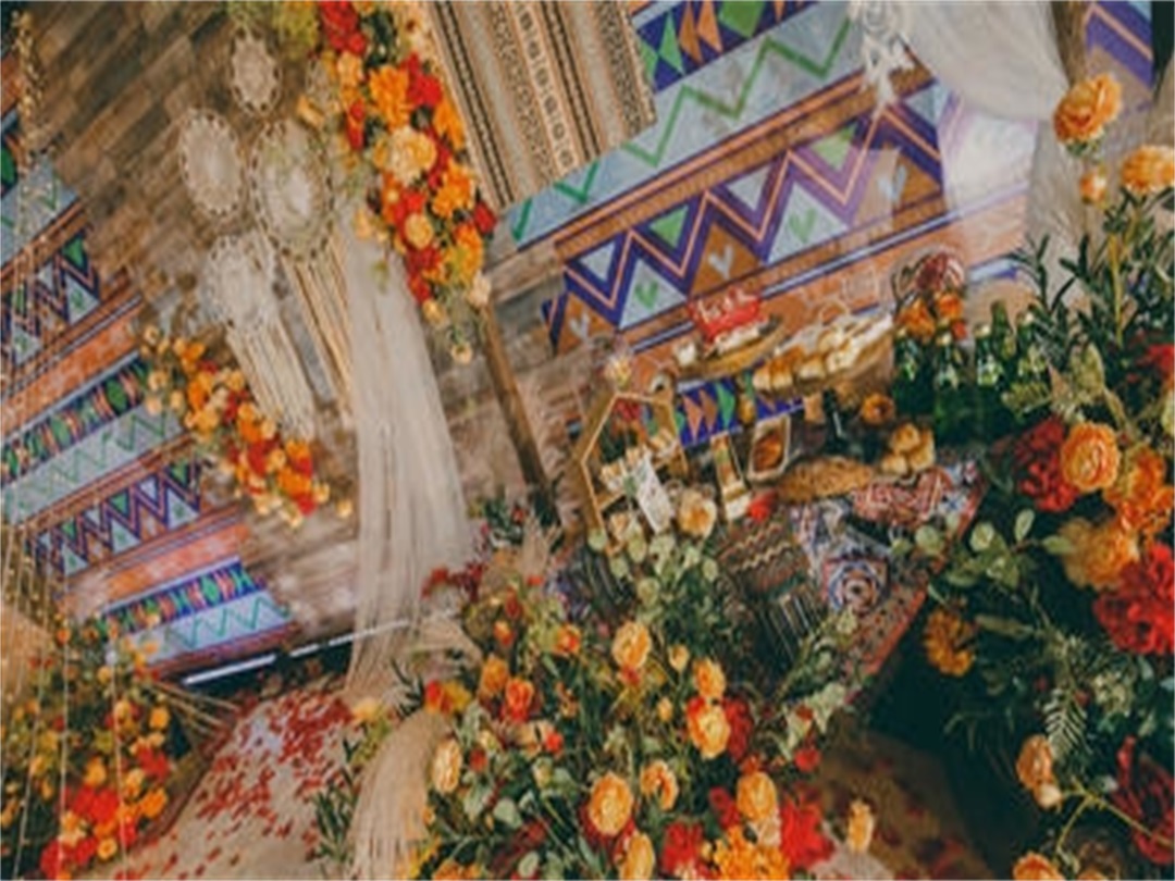 复古波西米亚风主题婚礼 加入少数名族元素 红色 橘色花艺