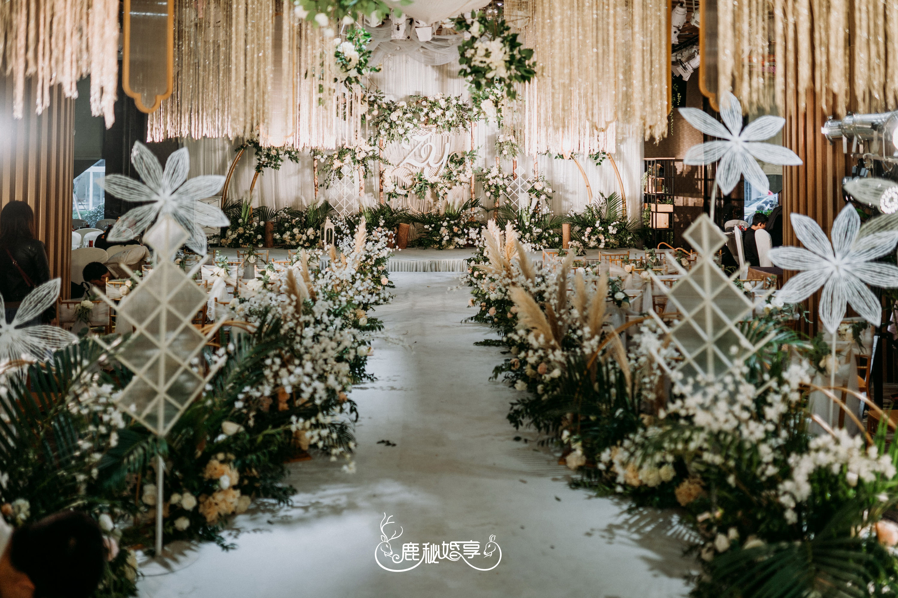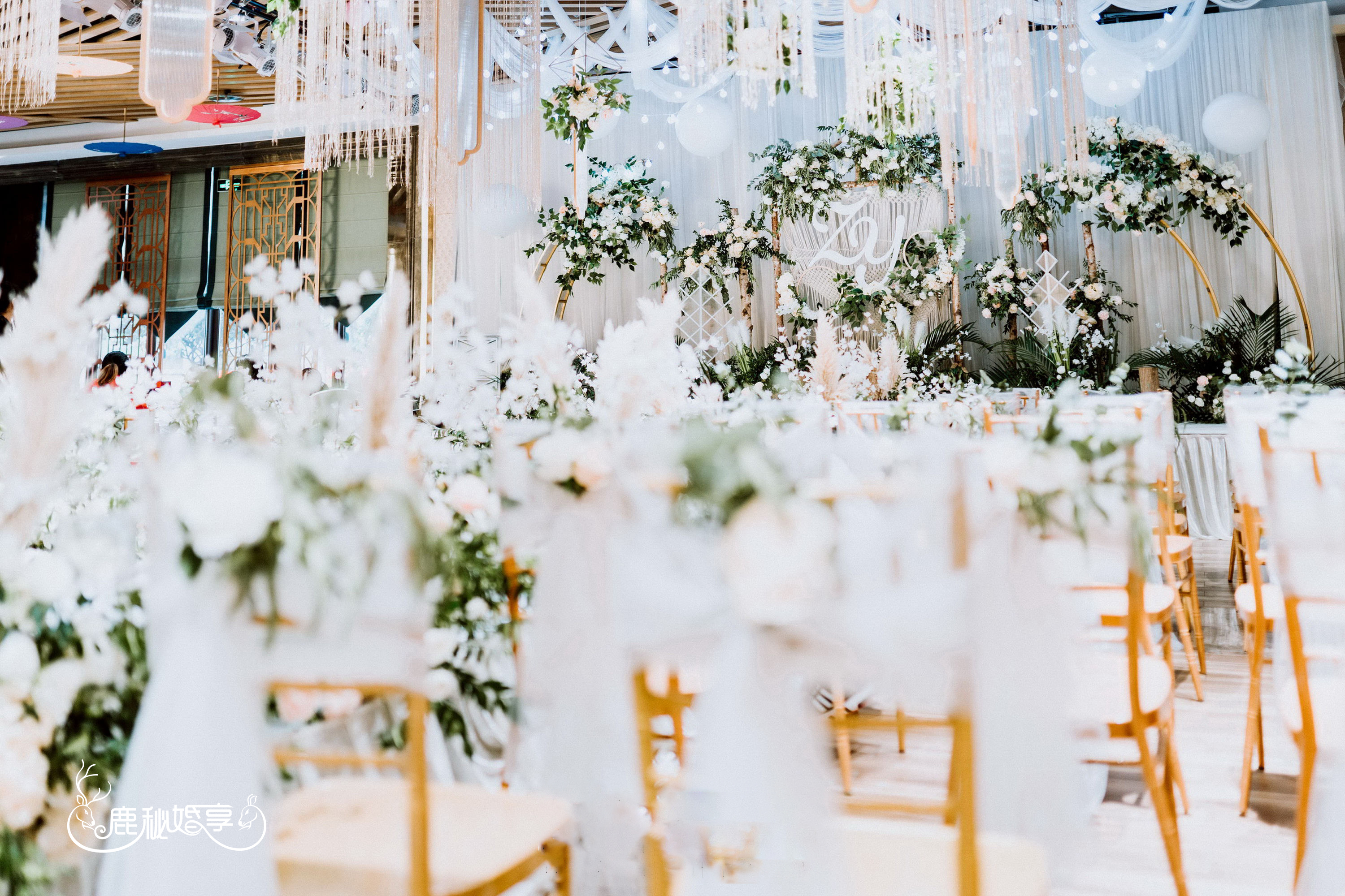 主背景花艺装饰5簇。