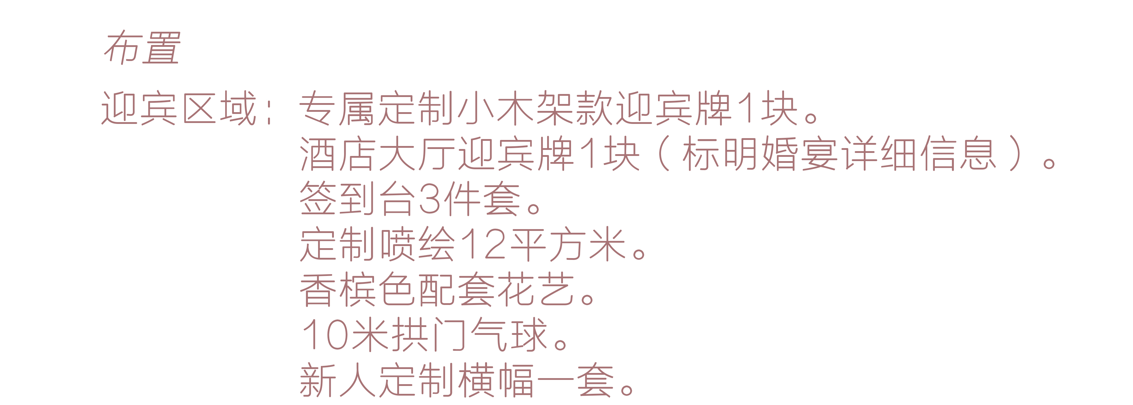 酒店大厅迎宾牌1块(标明婚宴详细信息)。
