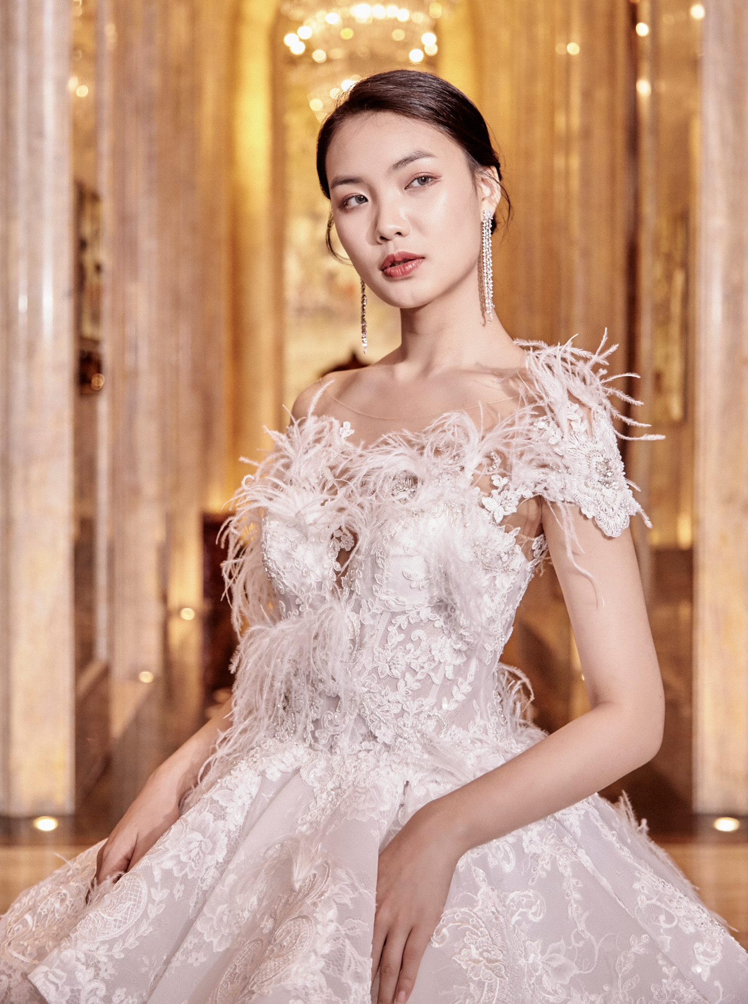 GN奢华羽毛仪式纱+出门服+敬酒服,超值租赁