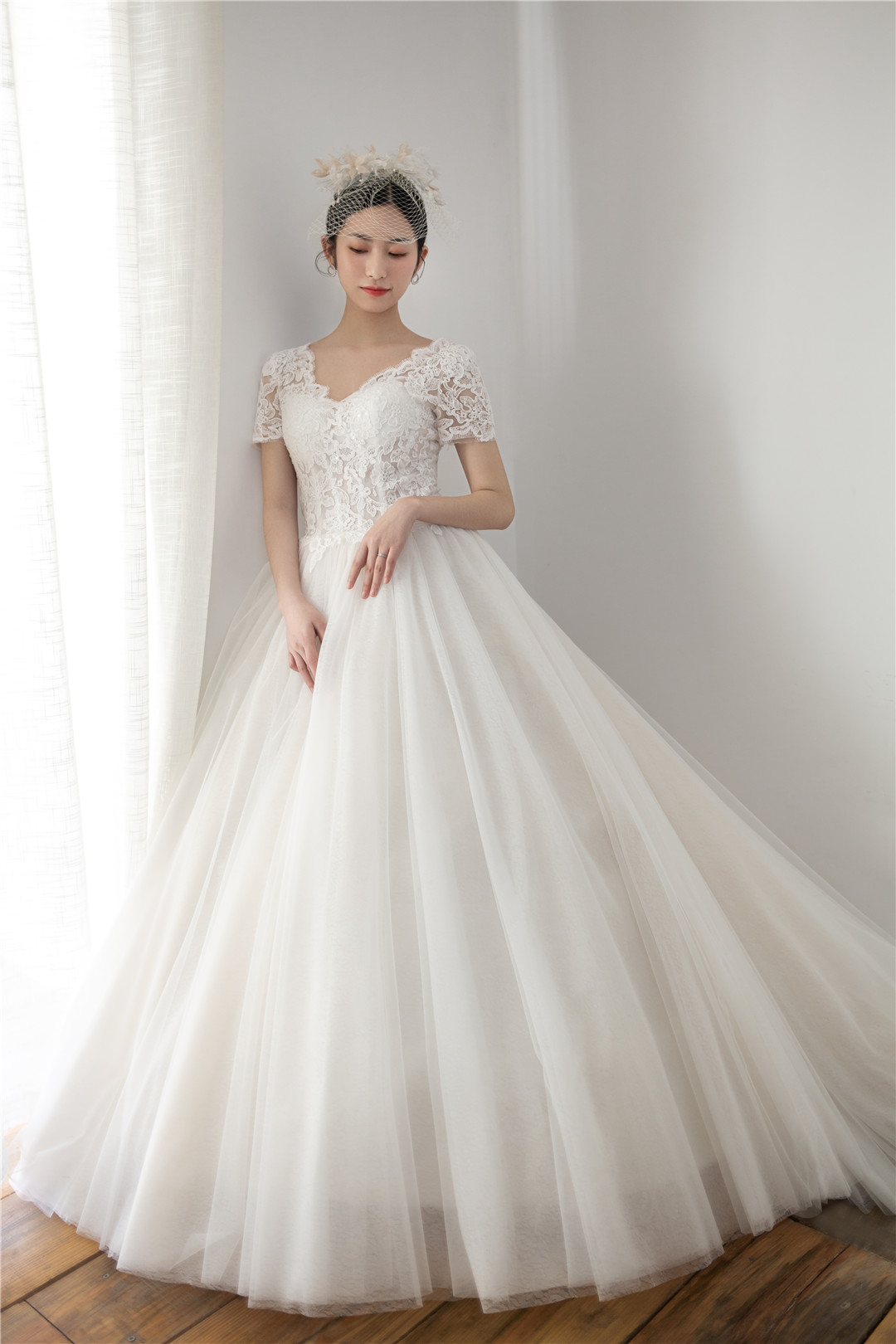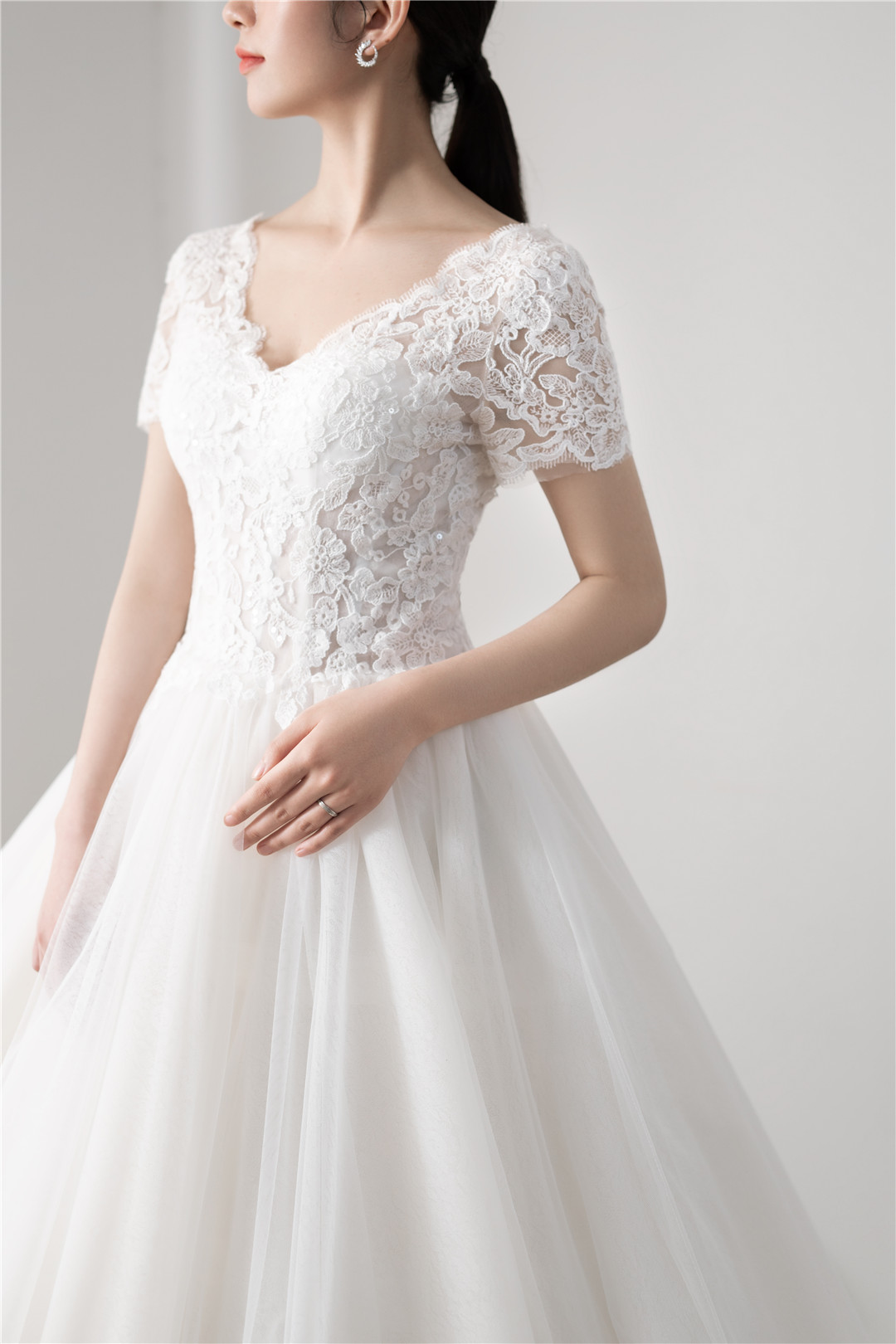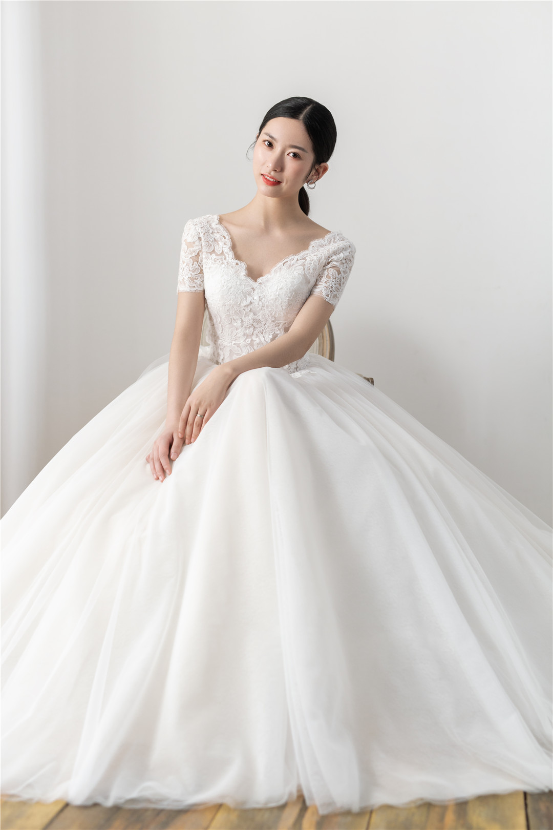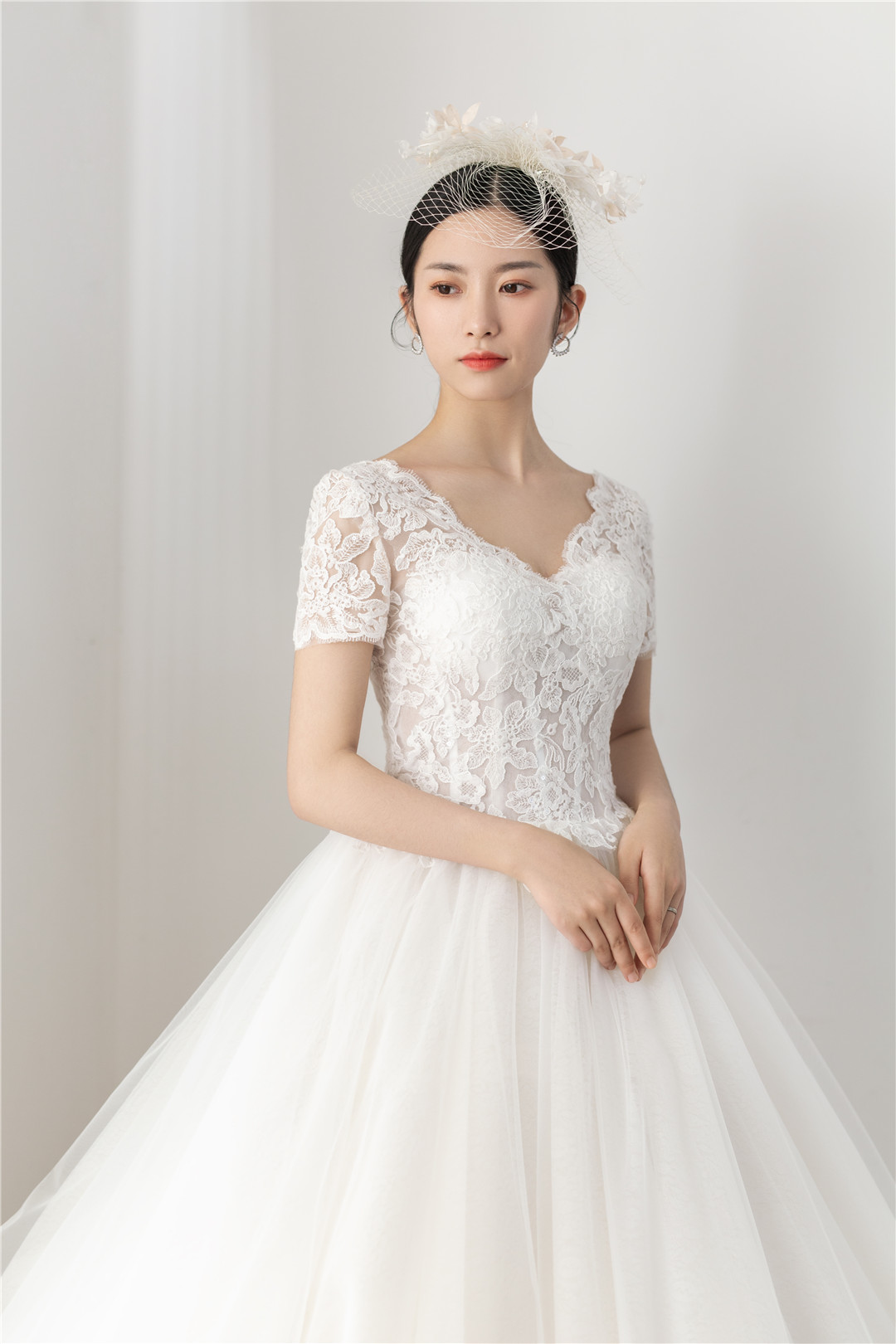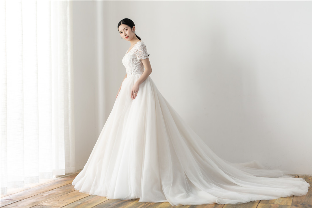 简约气质蕾丝V领小拖尾仪式纱+中式嫁衣,超值套餐