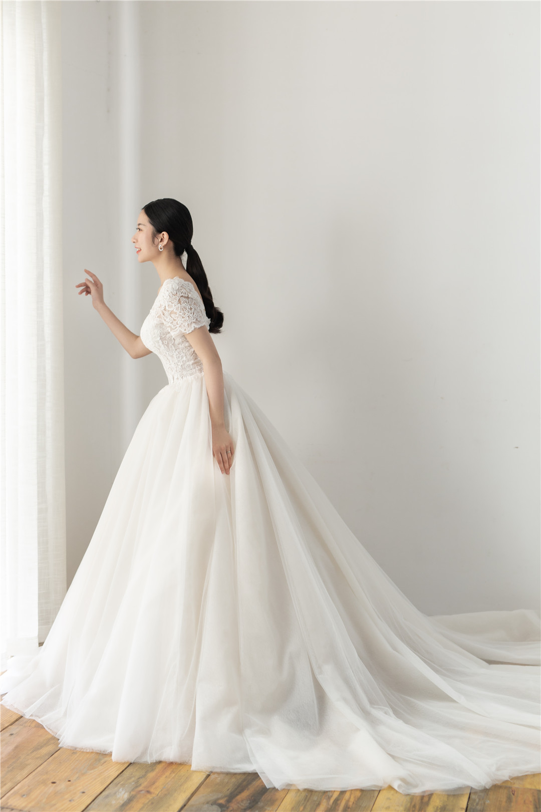 甜美宫廷一字肩仪式纱+敬酒服+出门服