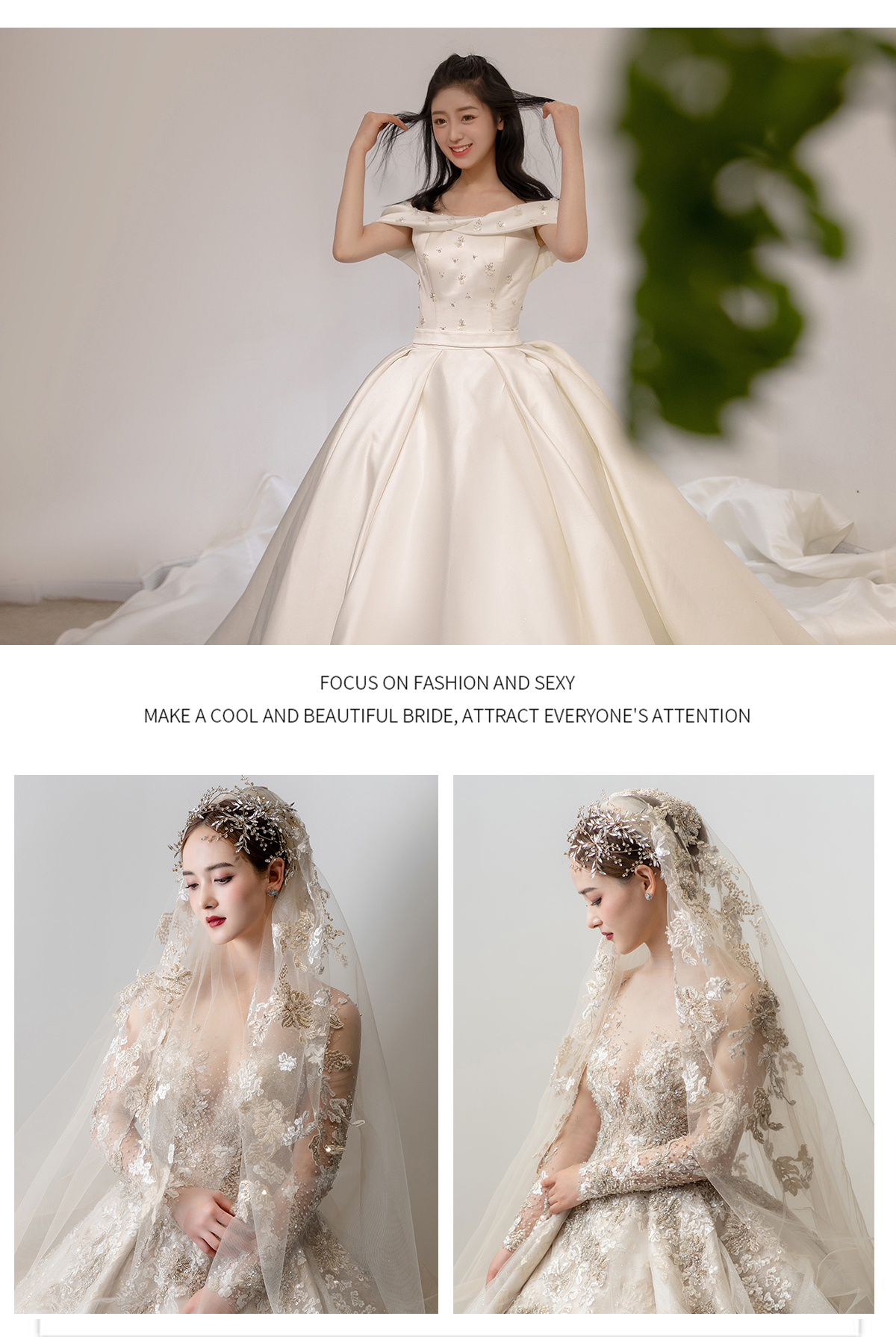 展示图片为本店部分样衣款式 本套餐包含三件套 主婚纱款式20-30件 材质:蕾丝、缎面、网纱 中式出门服:秀禾、马来服、龙凤褂20件左右 敬酒礼服:鱼尾、齐地、小拖尾、各种色系20件左右