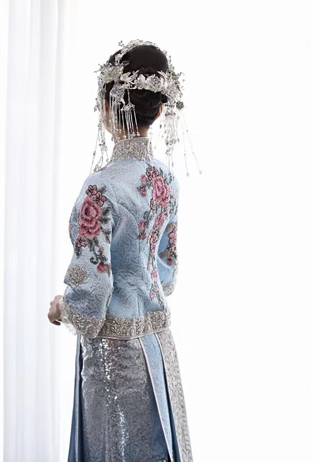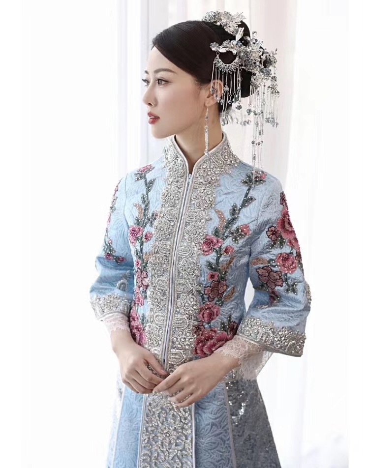 蓝色梦幻婚纱礼服七件套