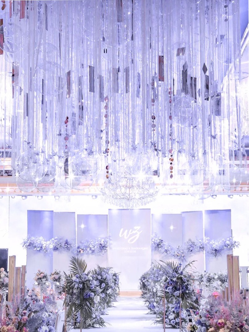 2交接区吊顶:订制浪漫唯美异型i水晶吊顶(4m*8m),订制花艺装饰。