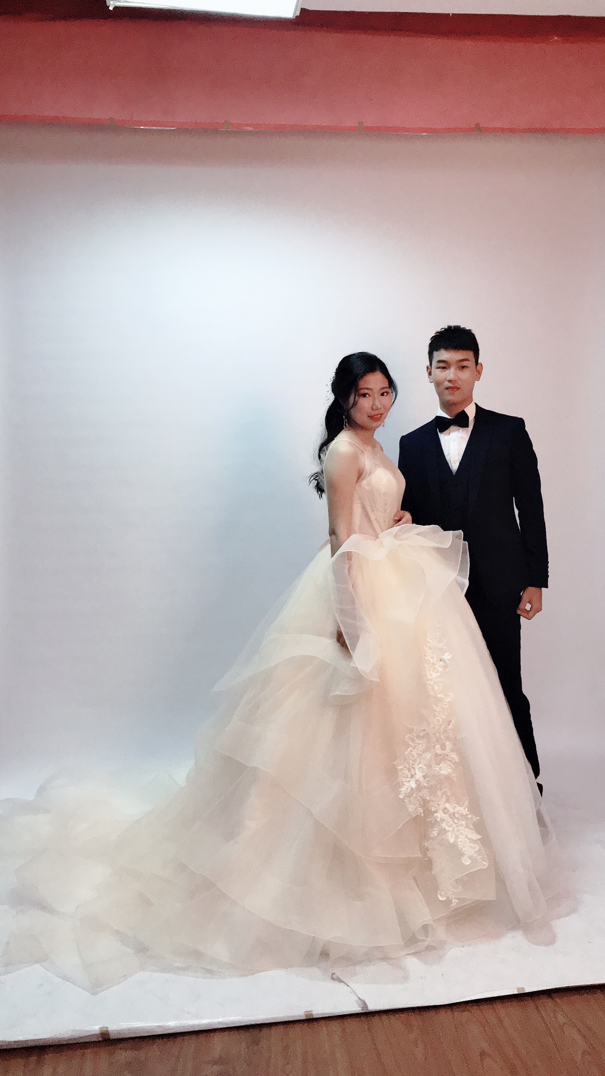 我们的试纱的小姐姐会全程3小时跟踪试纱,室内空调试纱,并且一对一试纱 设计师会详细谈到婚纱+西装设计方案,量身定做直成品出来