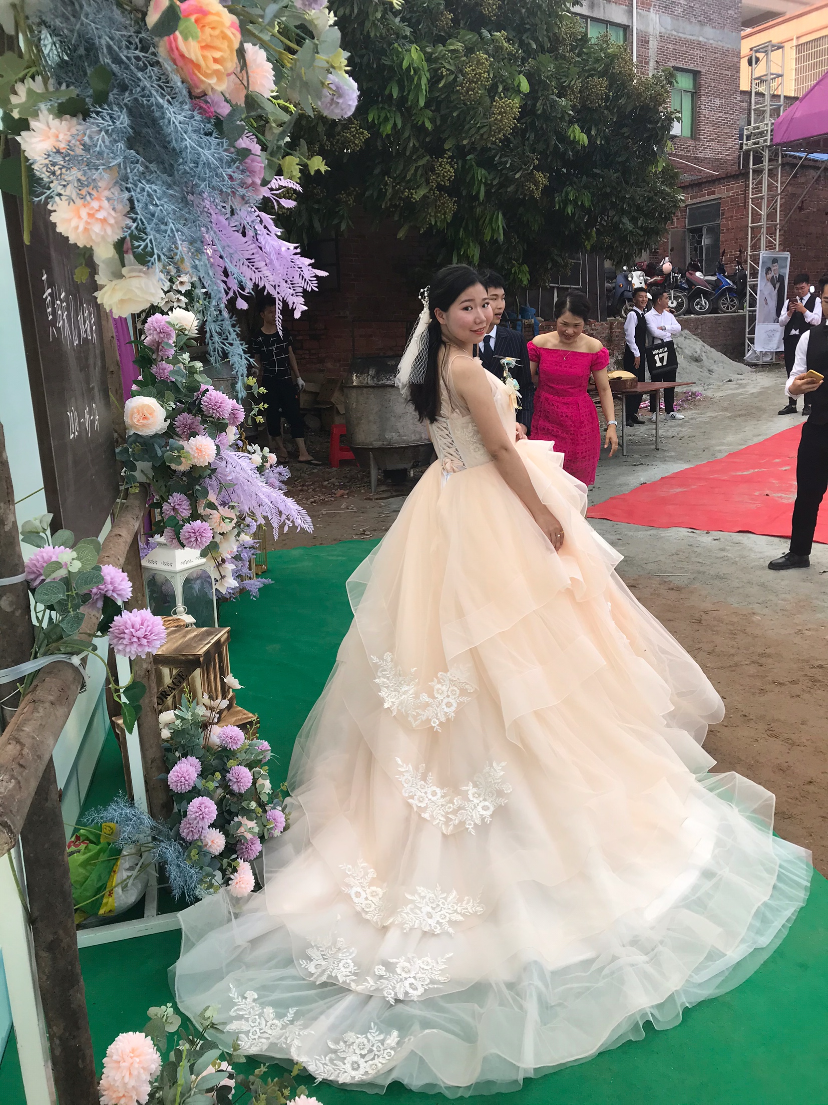 香槟色多层的拖尾,让背面也美成一道亮丽风景