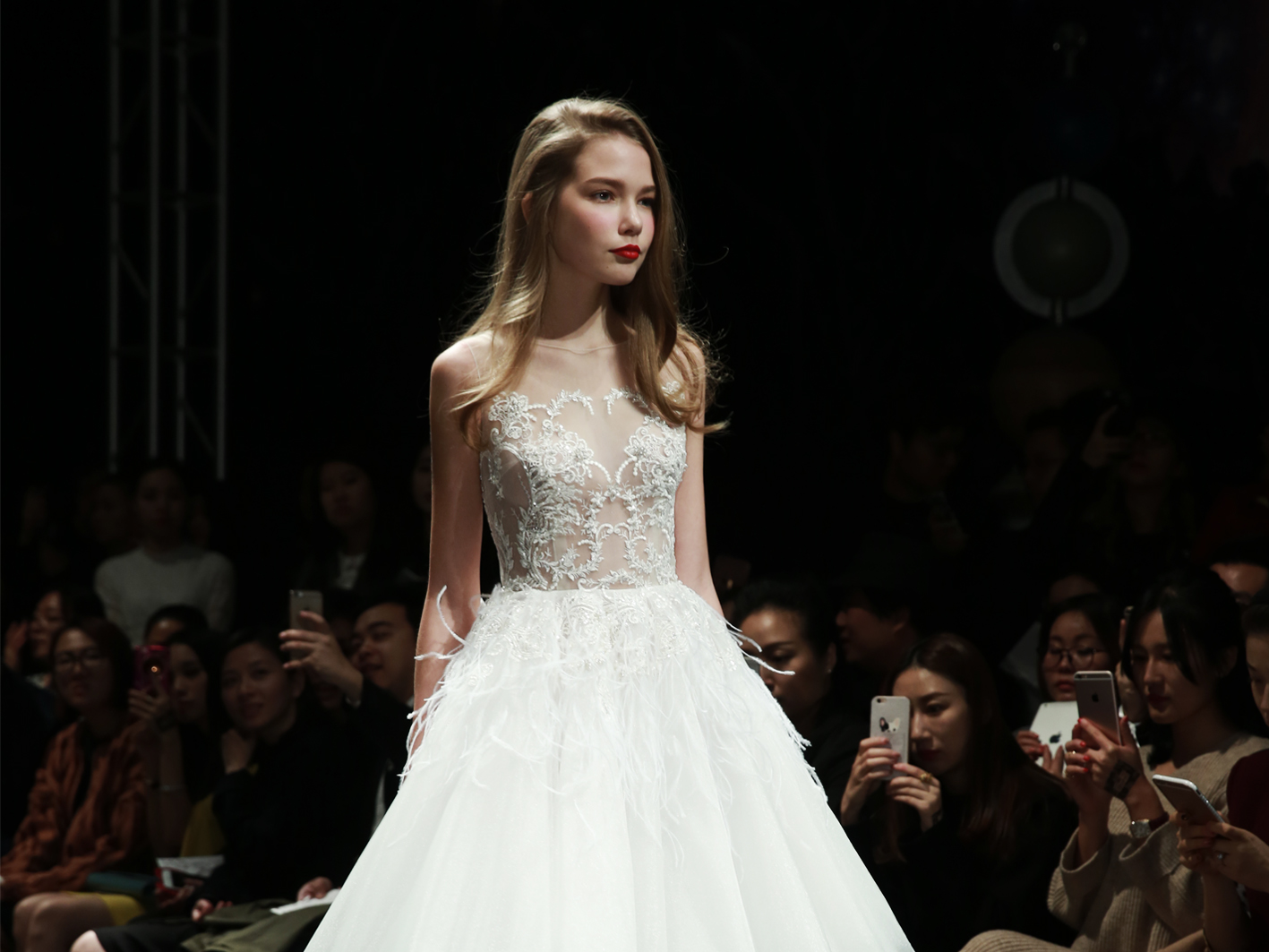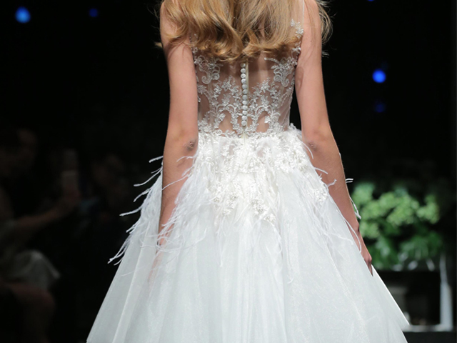 此款婚纱是2016春夏发布会#Le Jardin Mandarin故里花园#中的白色短款婚纱,摇曳的羽毛似是在诉说着属于两个人的爱情故事。单纯,浪漫又美好。