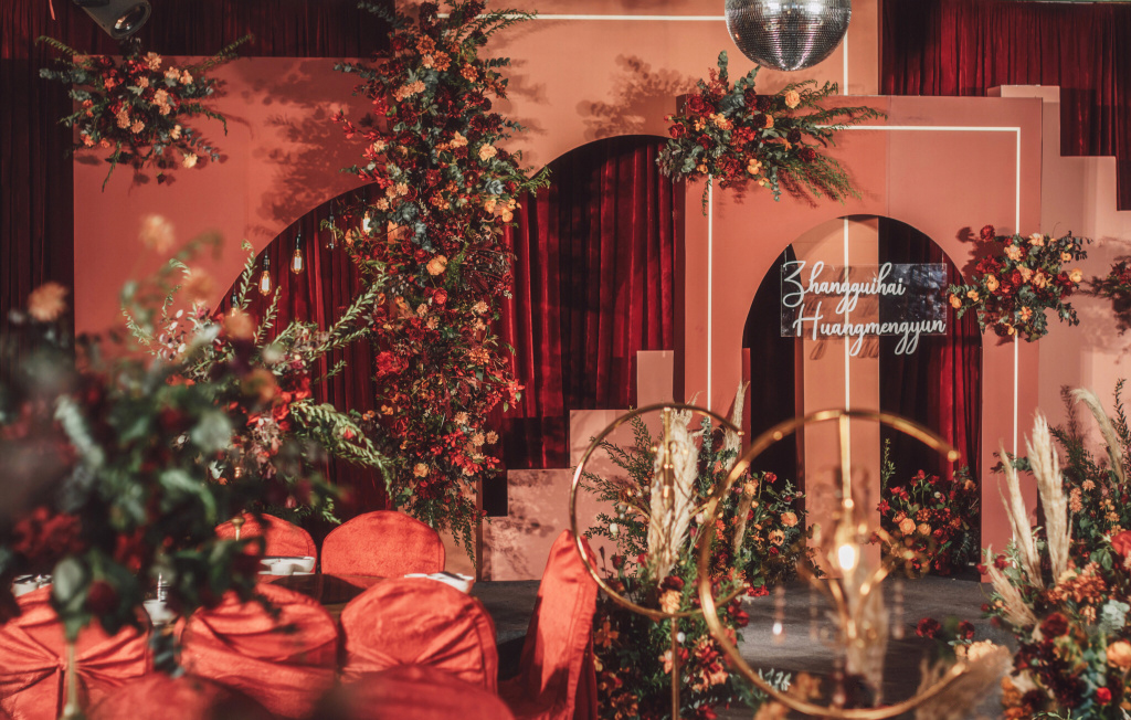 5、 签到台,香槟塔,烛台等鲜花花瓣装饰