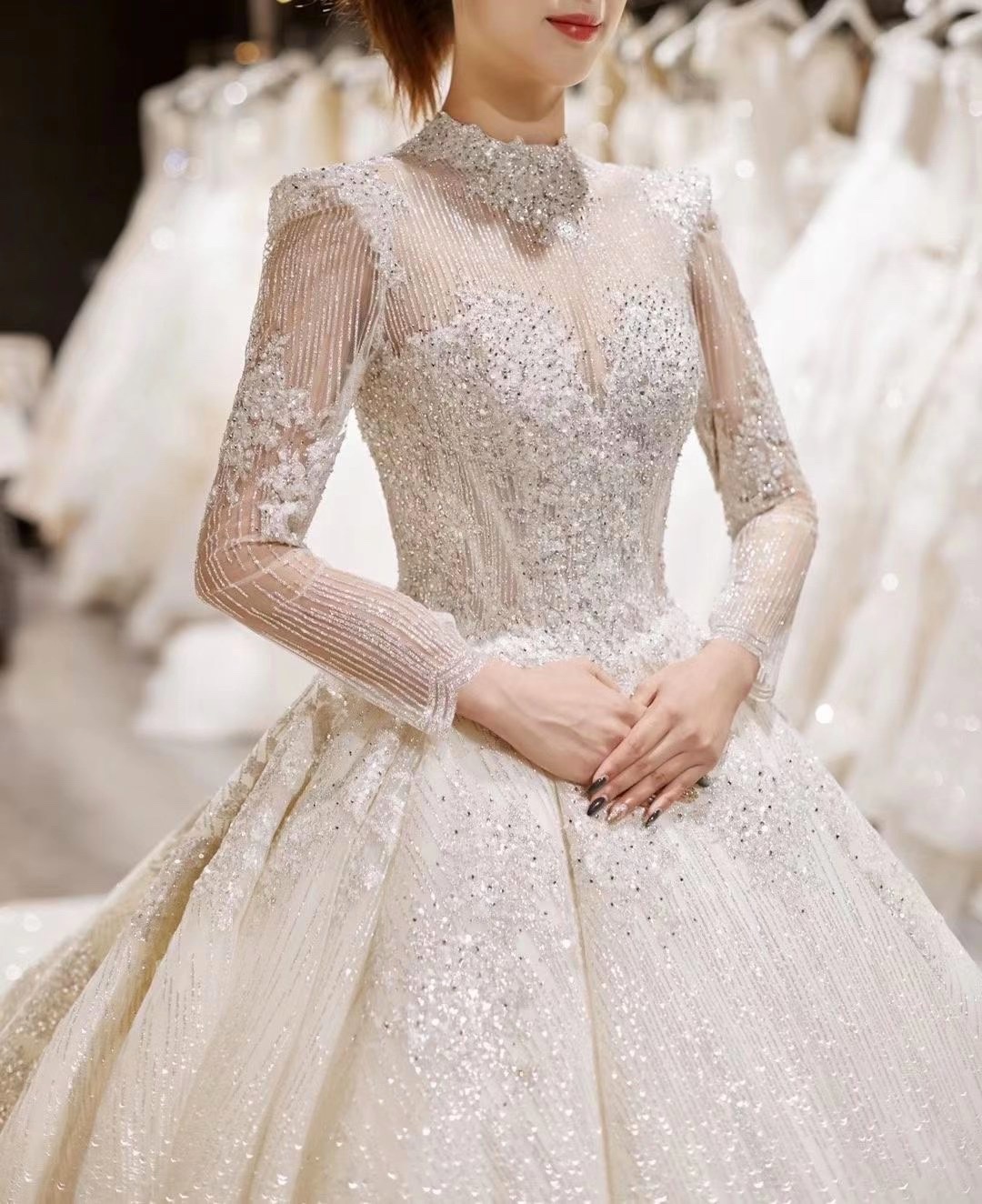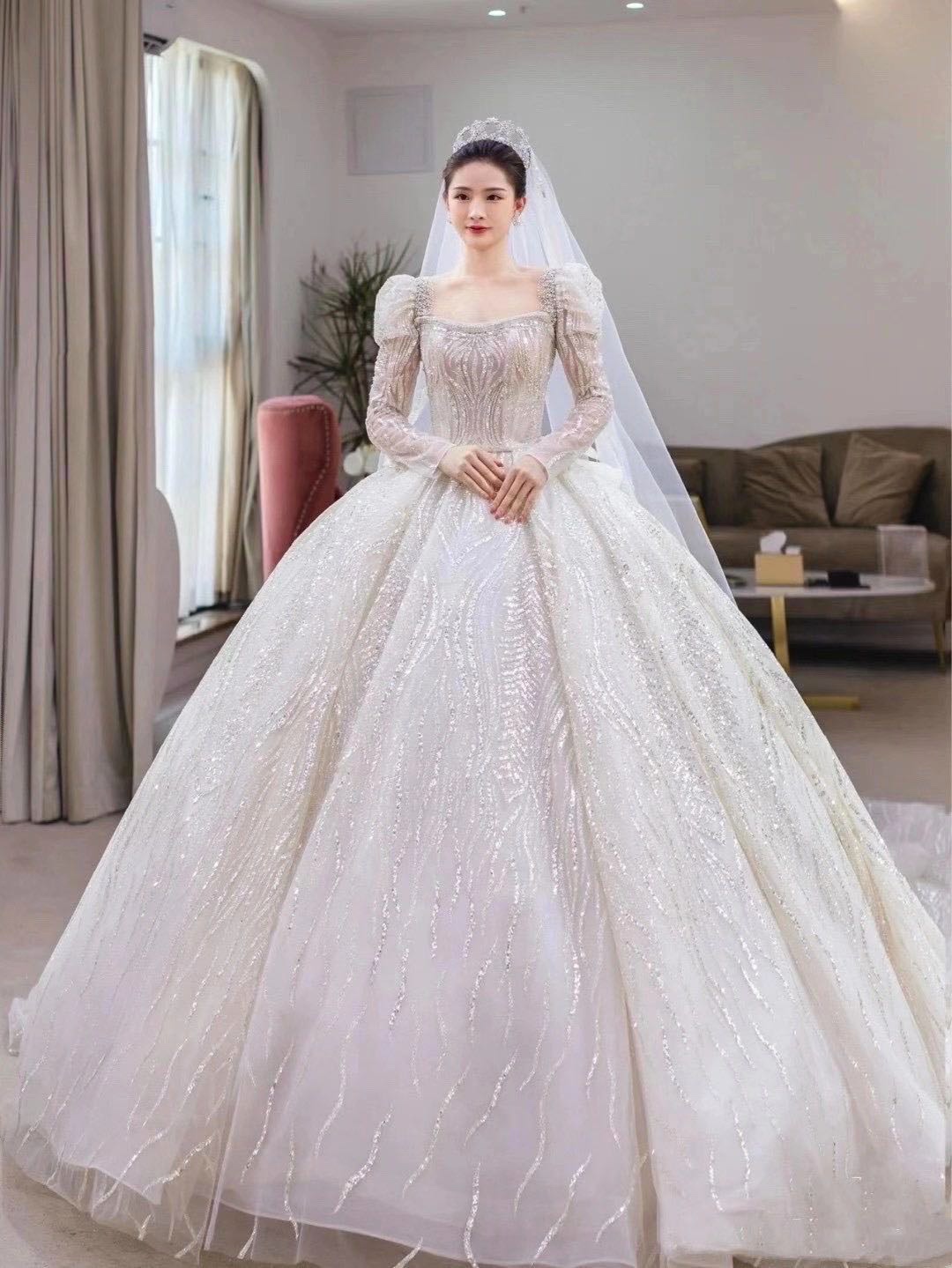 菏泽艾慕丝奢华重工拖尾主纱仪式纱