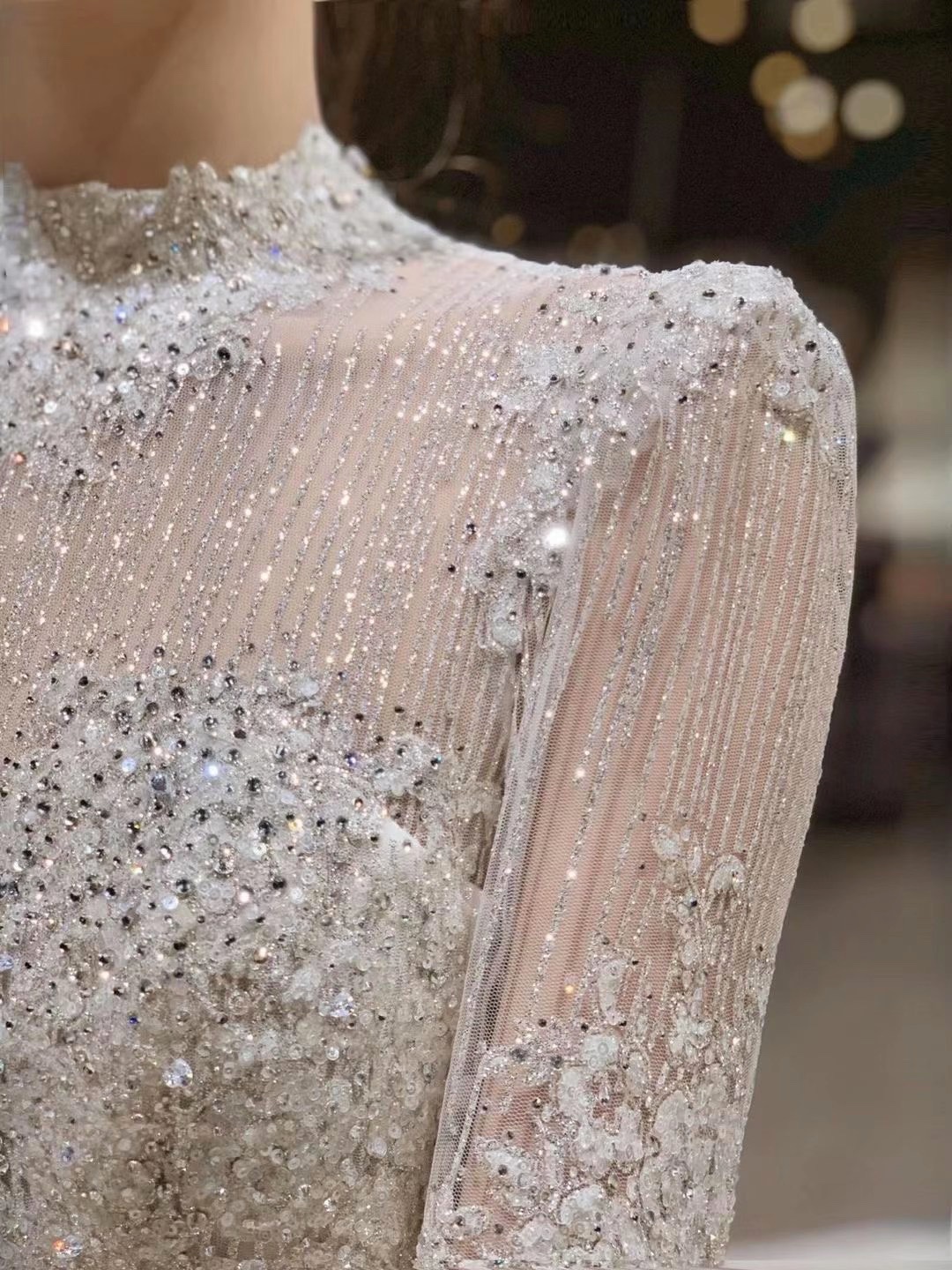 缎面长袖极简复古婚纱,法式婚纱
