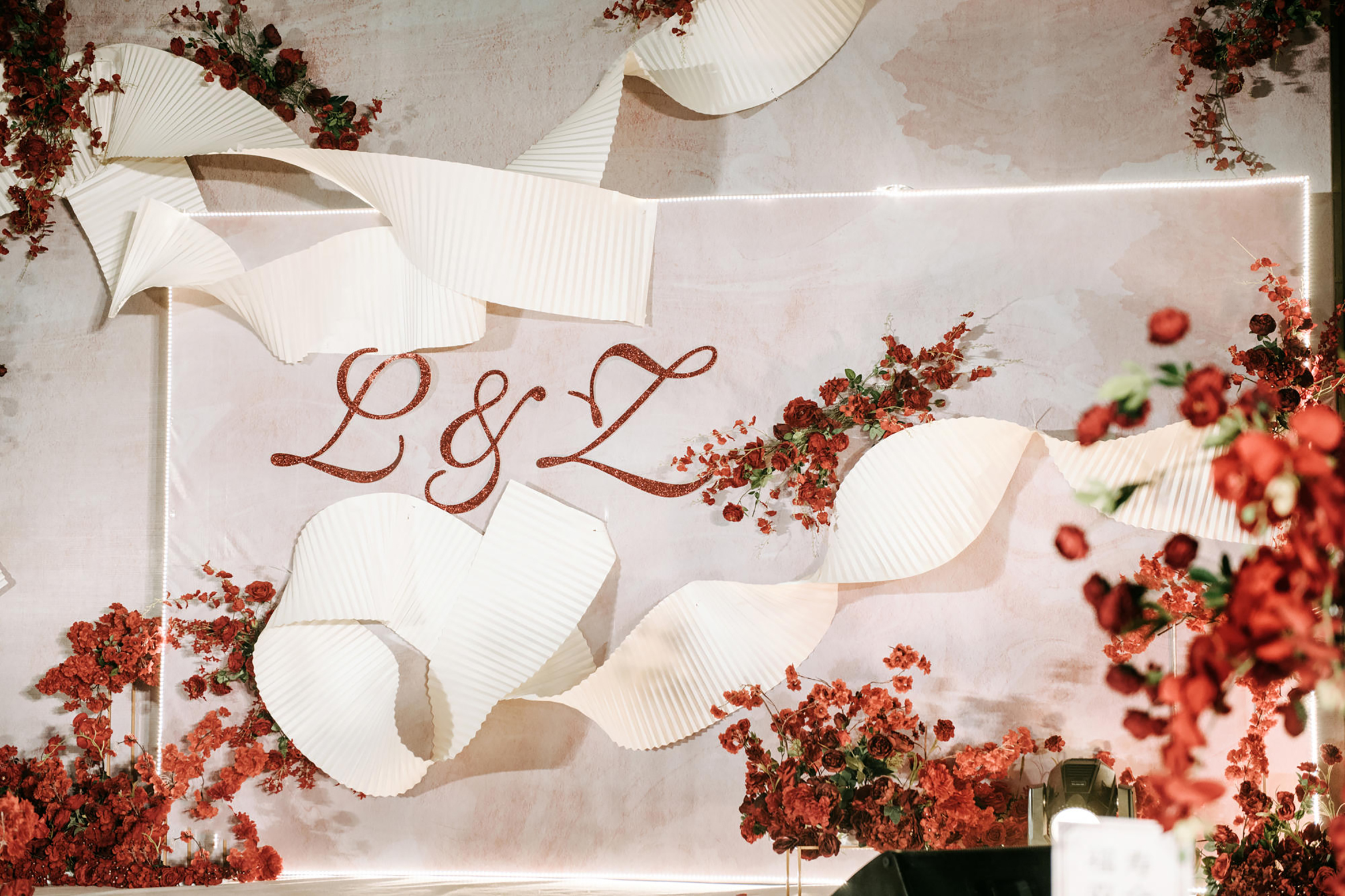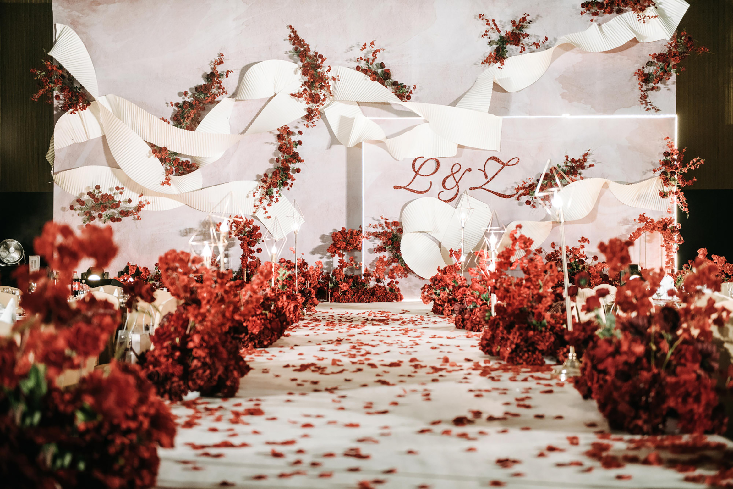 粉色梦幻森系婚礼,LED场,火烈鸟