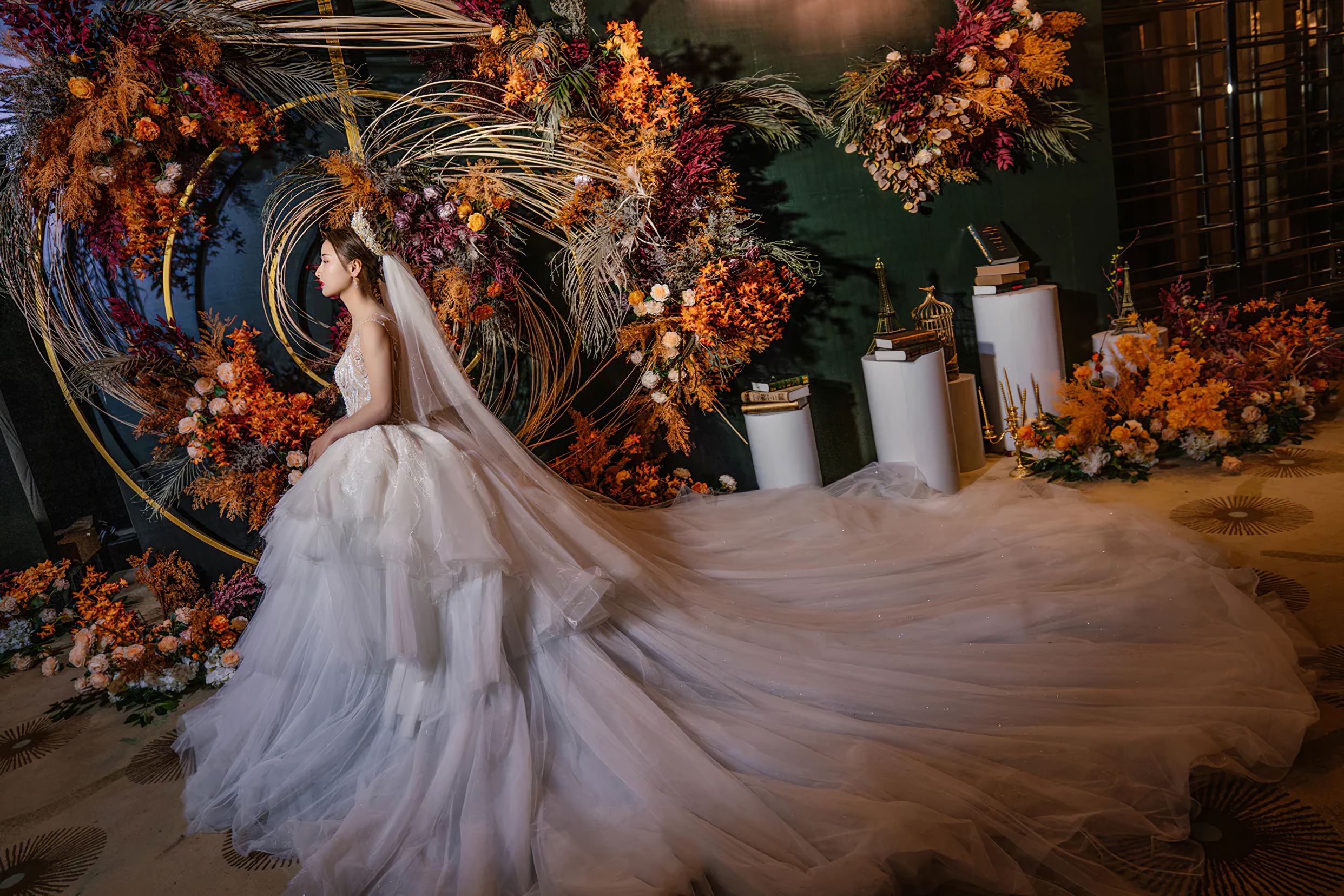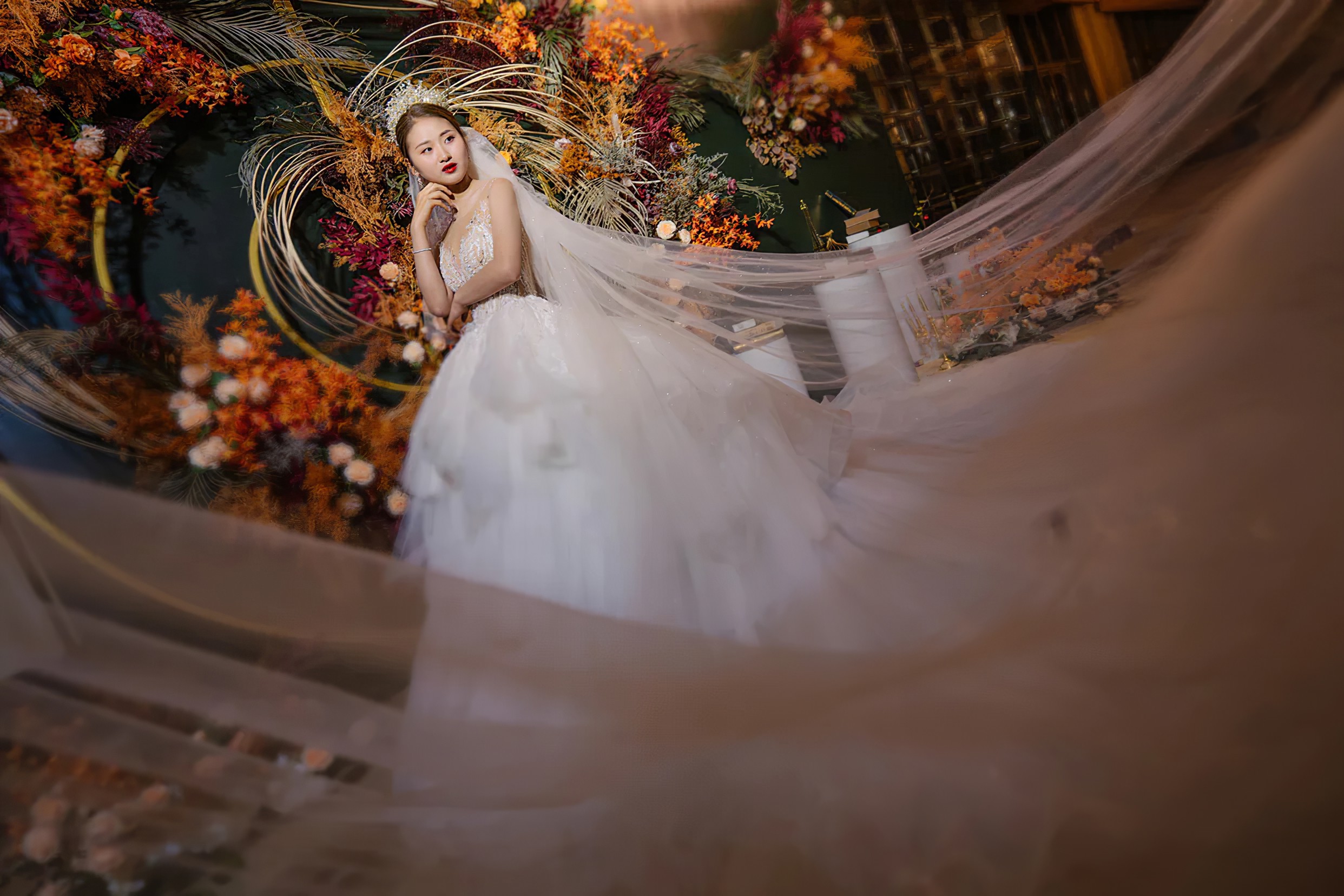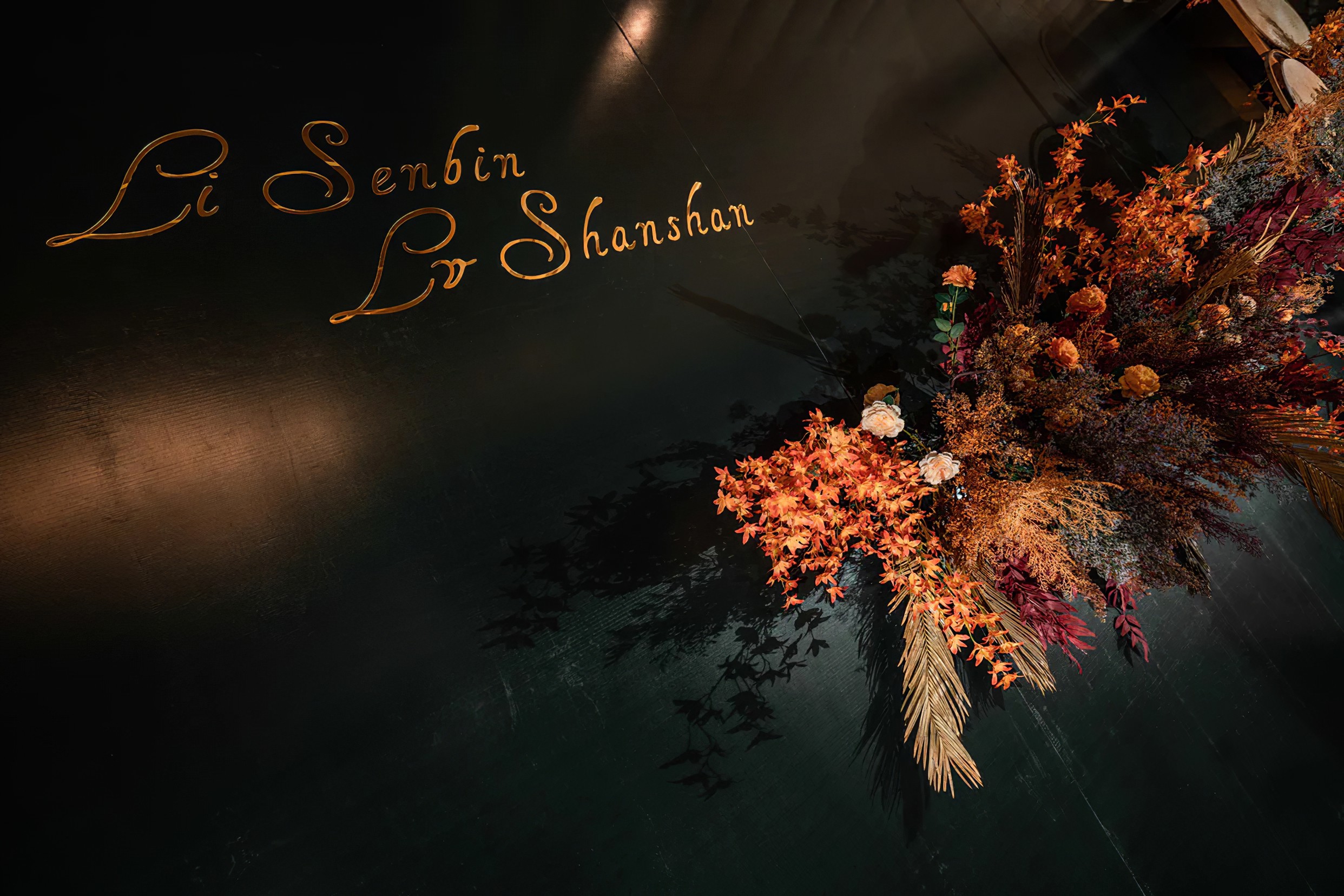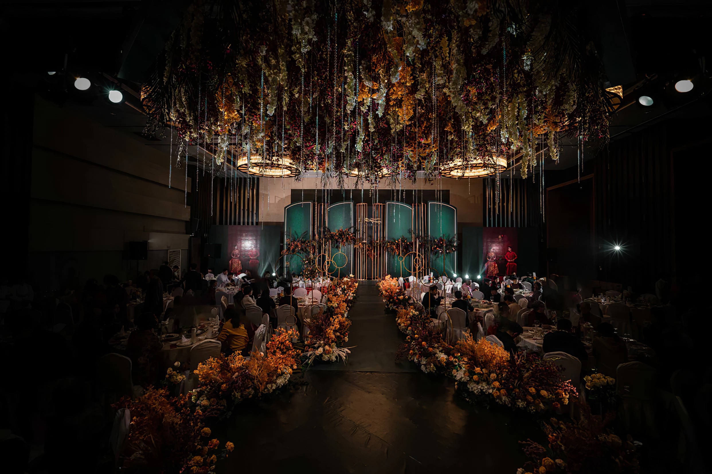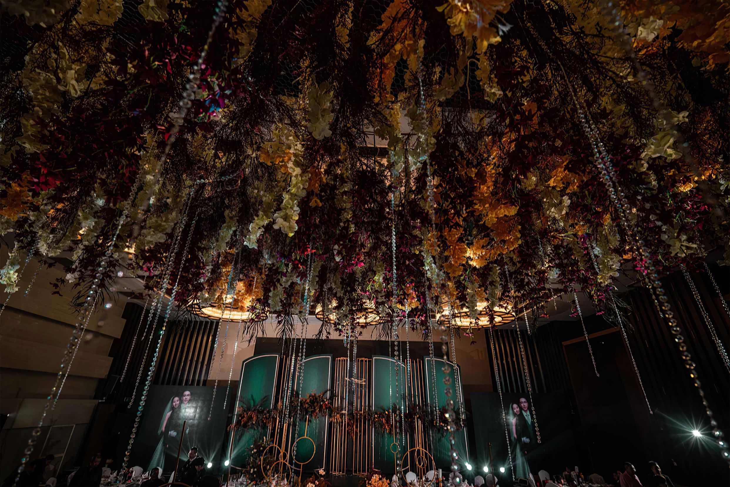 全场布景使用仿真花,没有鲜花