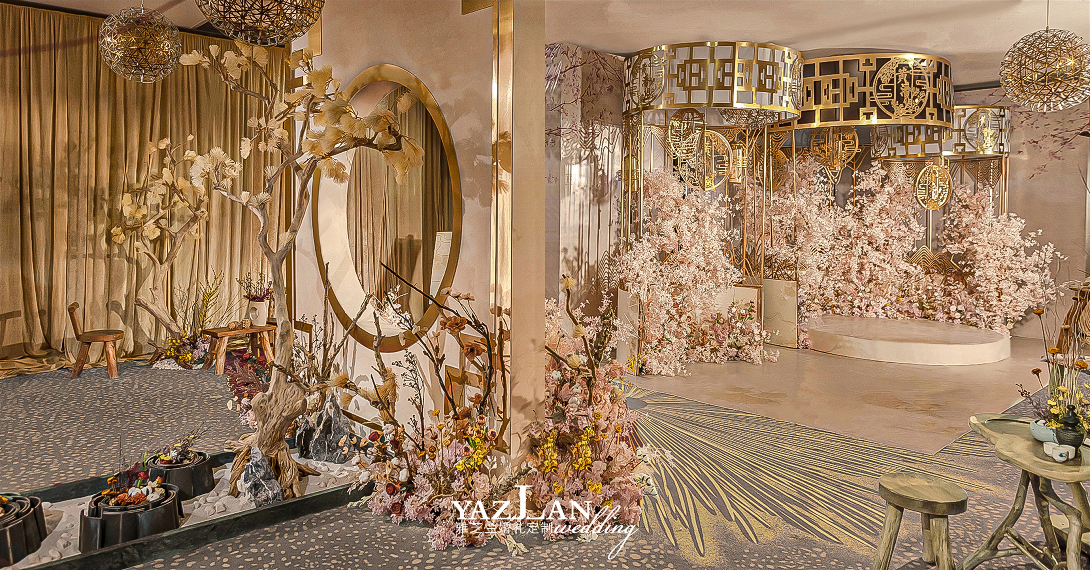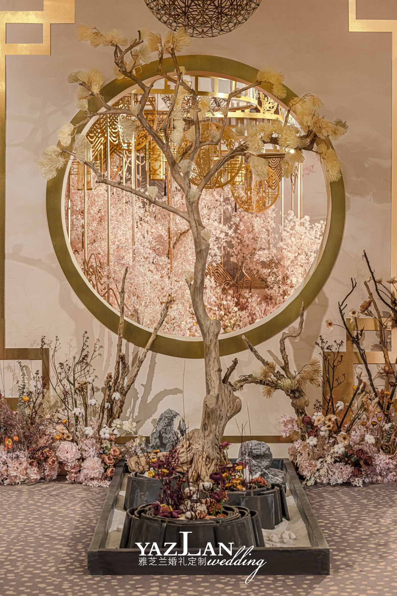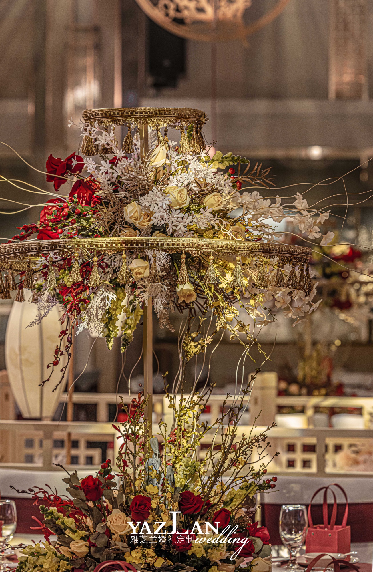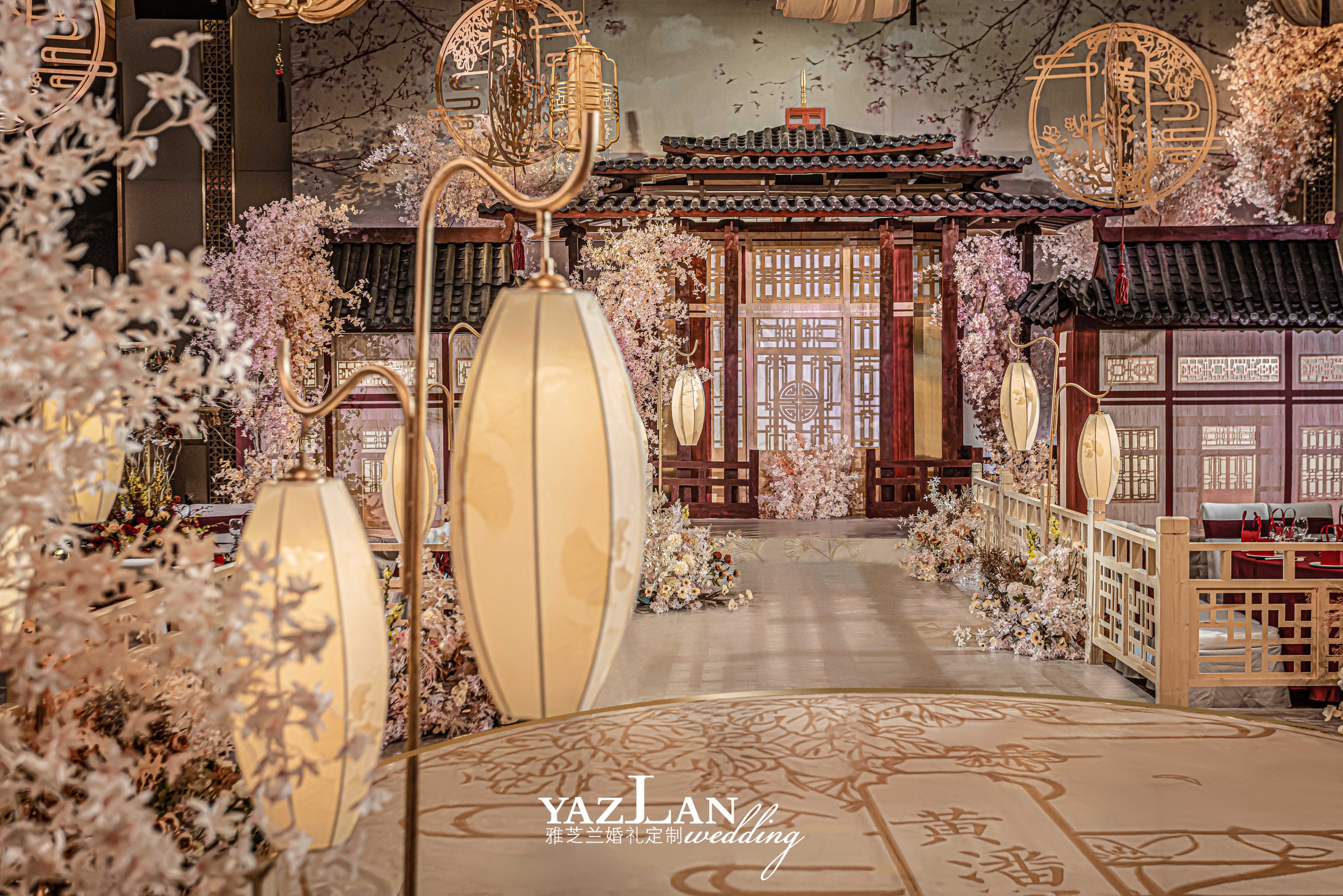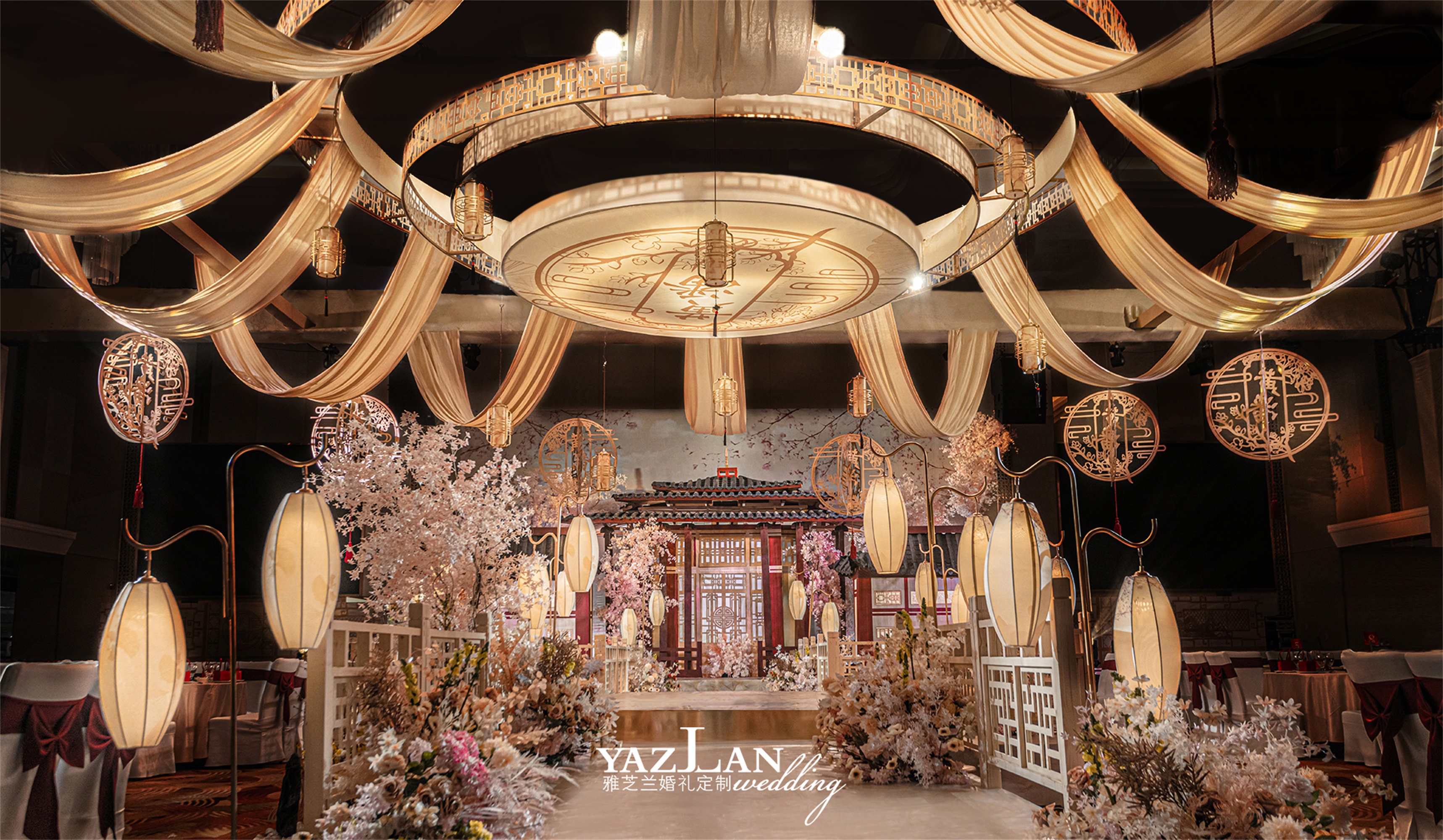 舞台场景式布置 舞台主题色背景搭建 舞台层次造景式定制设计搭建 舞台大型道具组合设计搭建 舞台主题色系地毯铺垫 舞台背景专属主题LOGO设计制作 蛋糕台主题色系布幔装饰 香槟台主题色系布幔装饰 主题誓言本制作二本 宴会区装饰 主桌时尚鲜花设计制作二座 主围时尚椅背装饰二围 T台镜面地毯铺垫 T台精致欧根纱灯带装饰 时尚交接台仪式搭建 时尚交接台仪式装饰