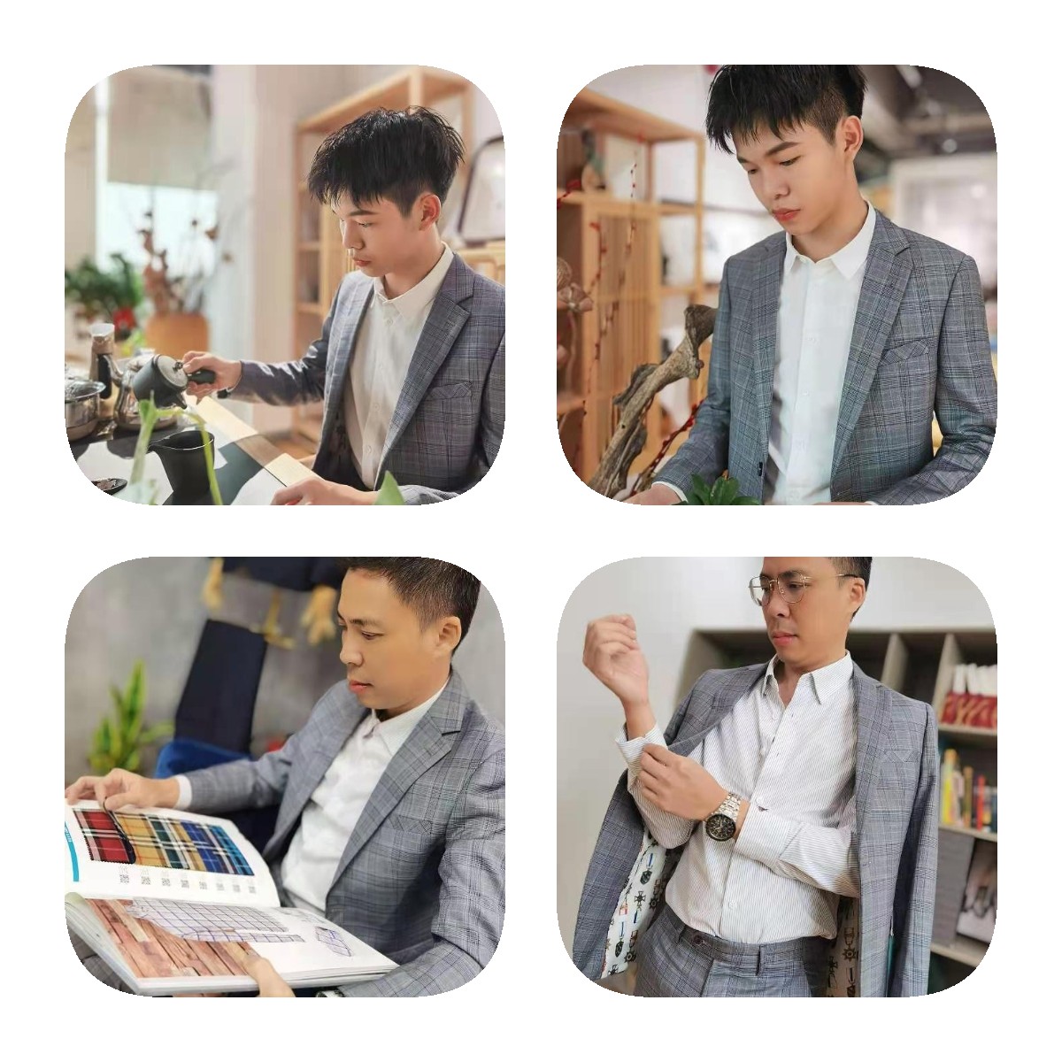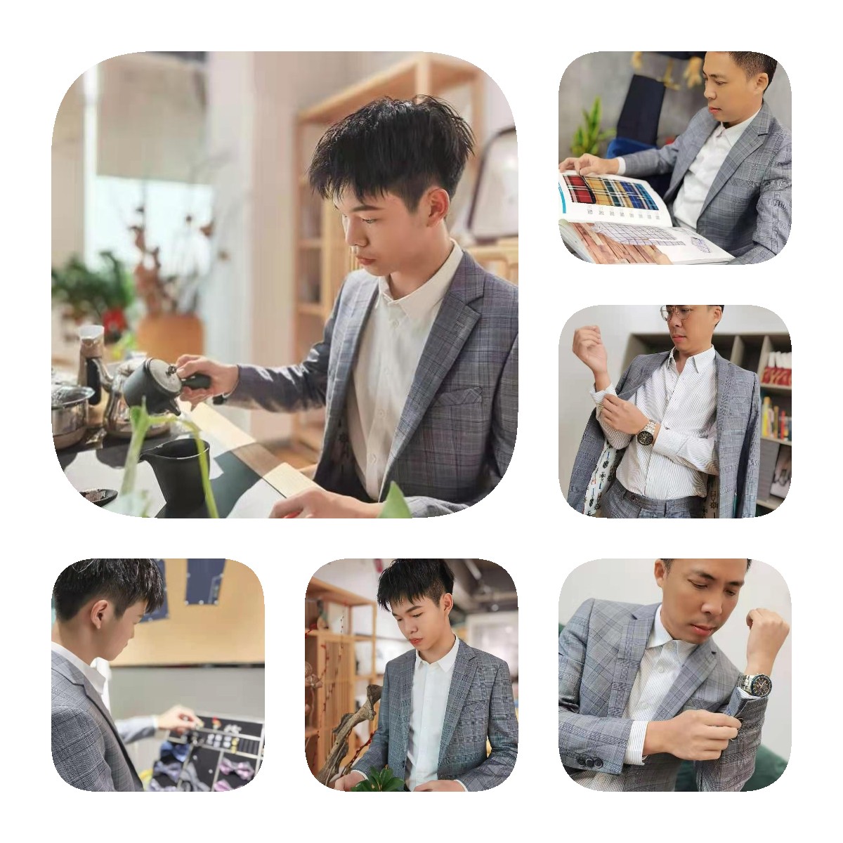 量E码数定制-时尚修身格子套西