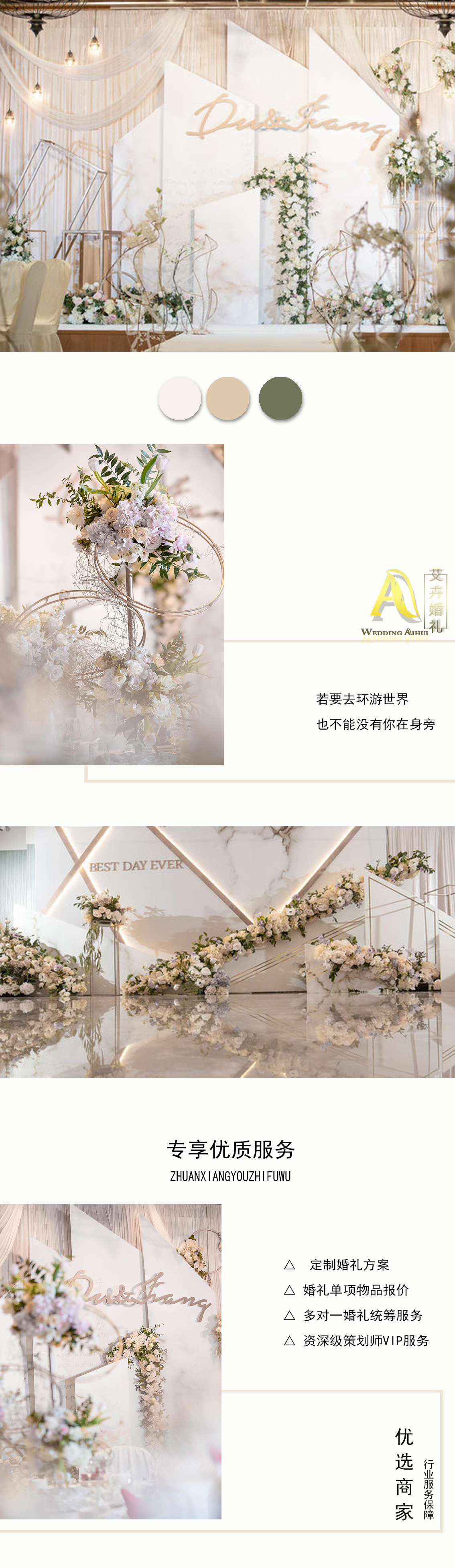 【1】. 主题定制迎宾合影区设计12平方内,根据婚礼风格不一设计,颜色任选