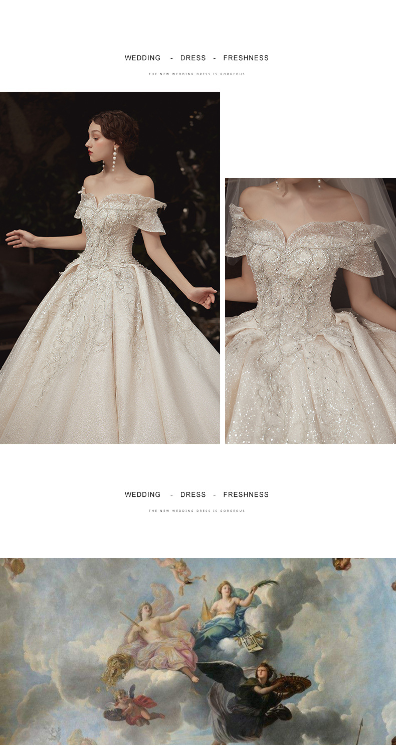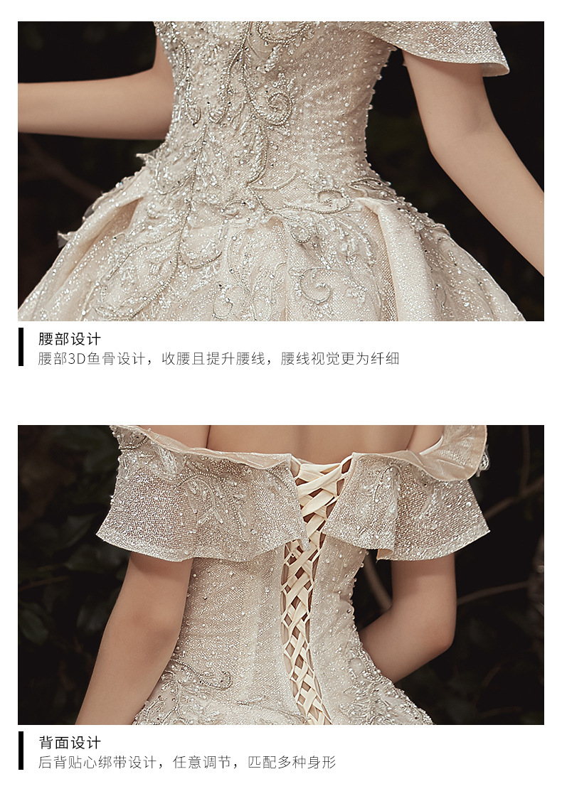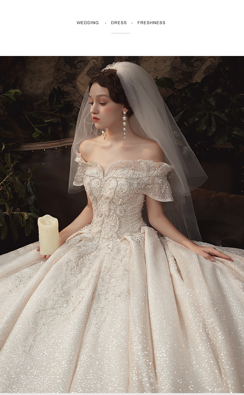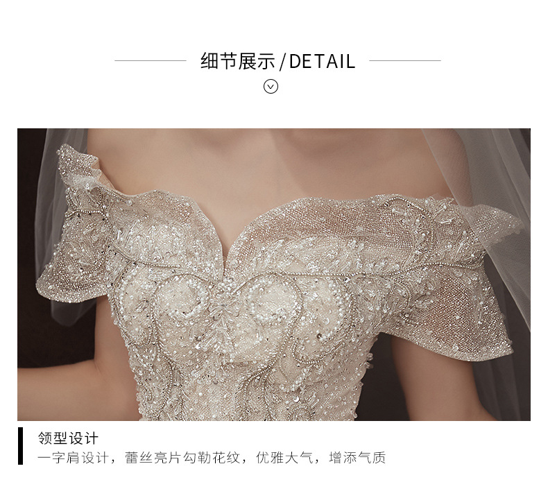 【仪式主婚纱】一字肩豪华大拖尾5件套