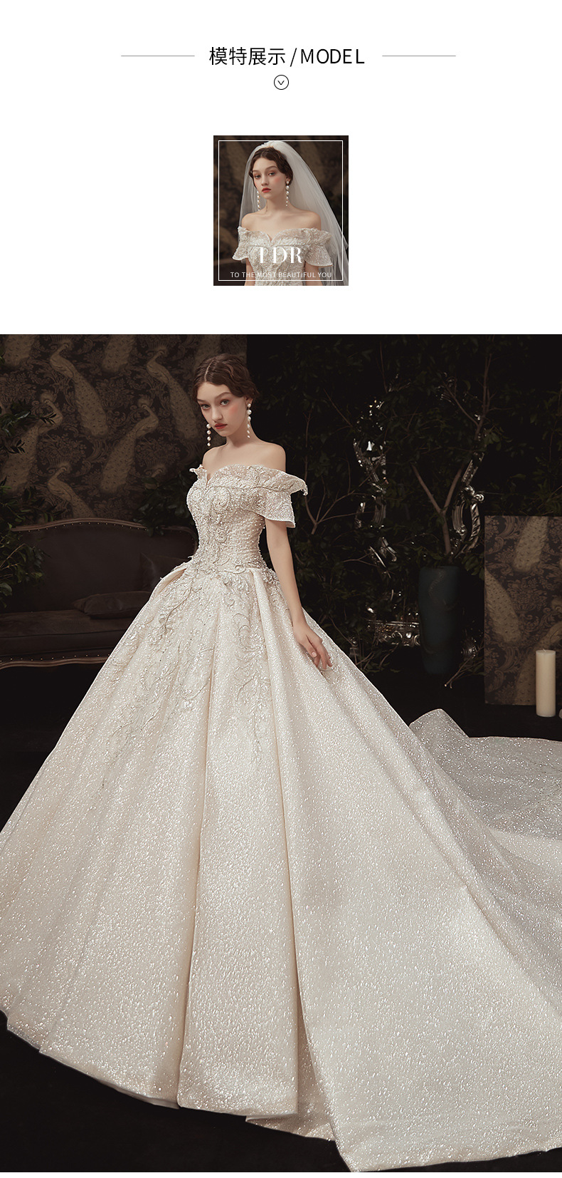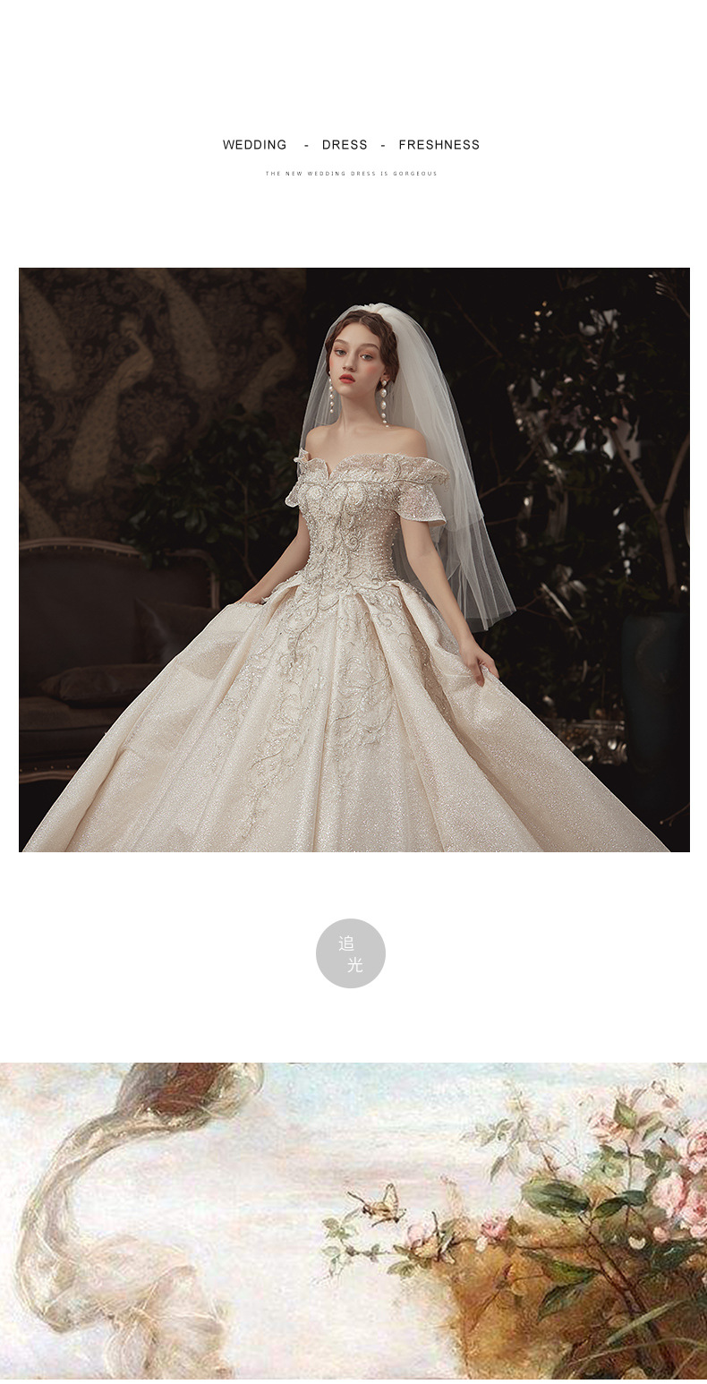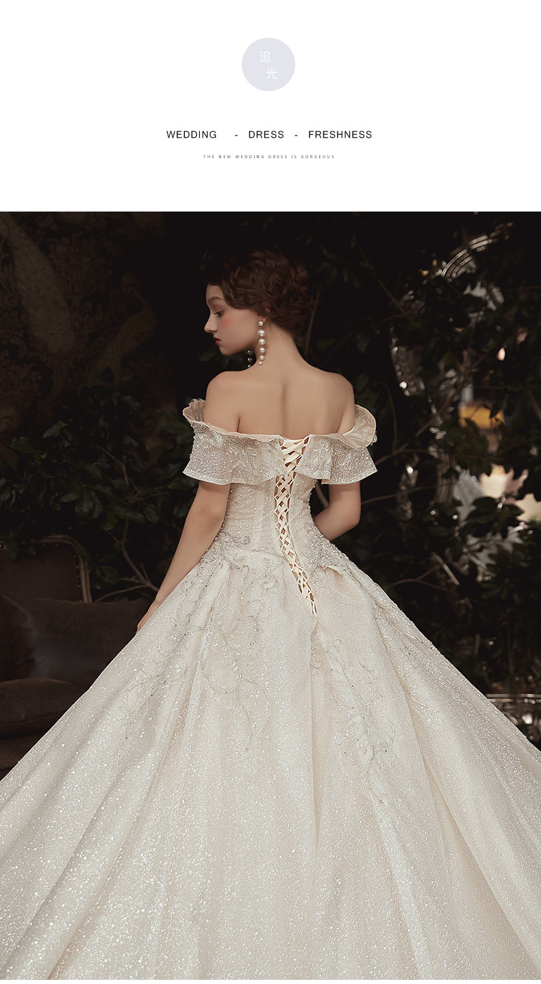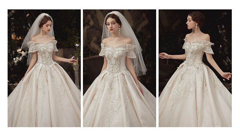 【仪式主婚纱】一字肩豪华大拖尾5件套