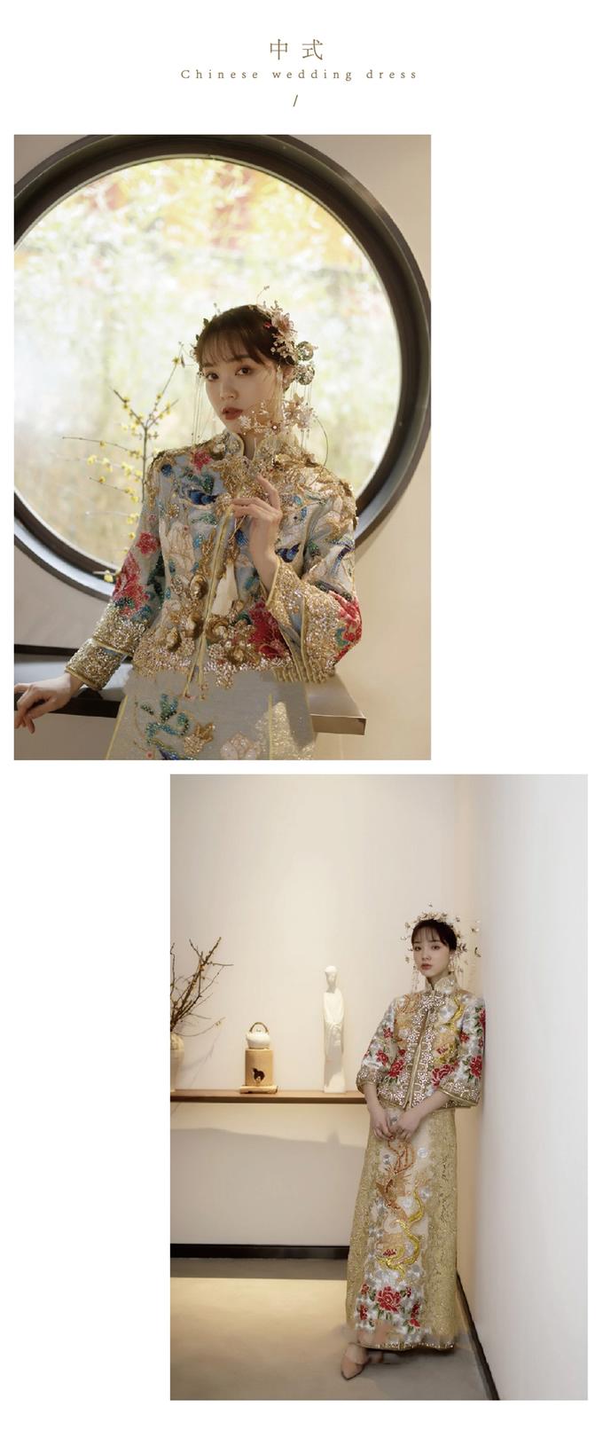 出门秀禾或齐地婚纱 仪式主纱 敬酒礼服 男士品牌定制西装 免费提供伴娘服+伴郎服