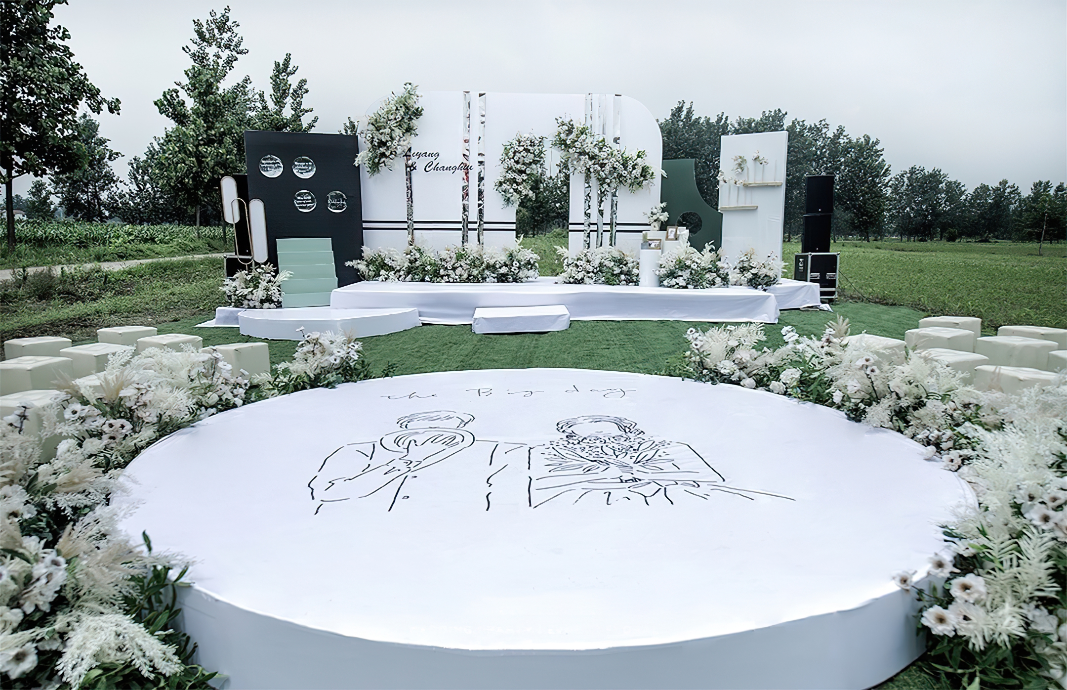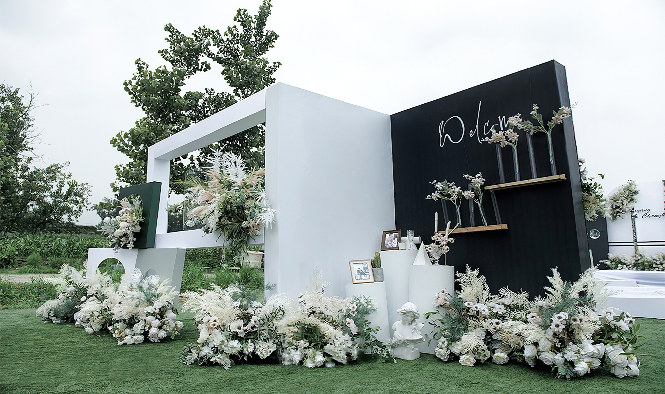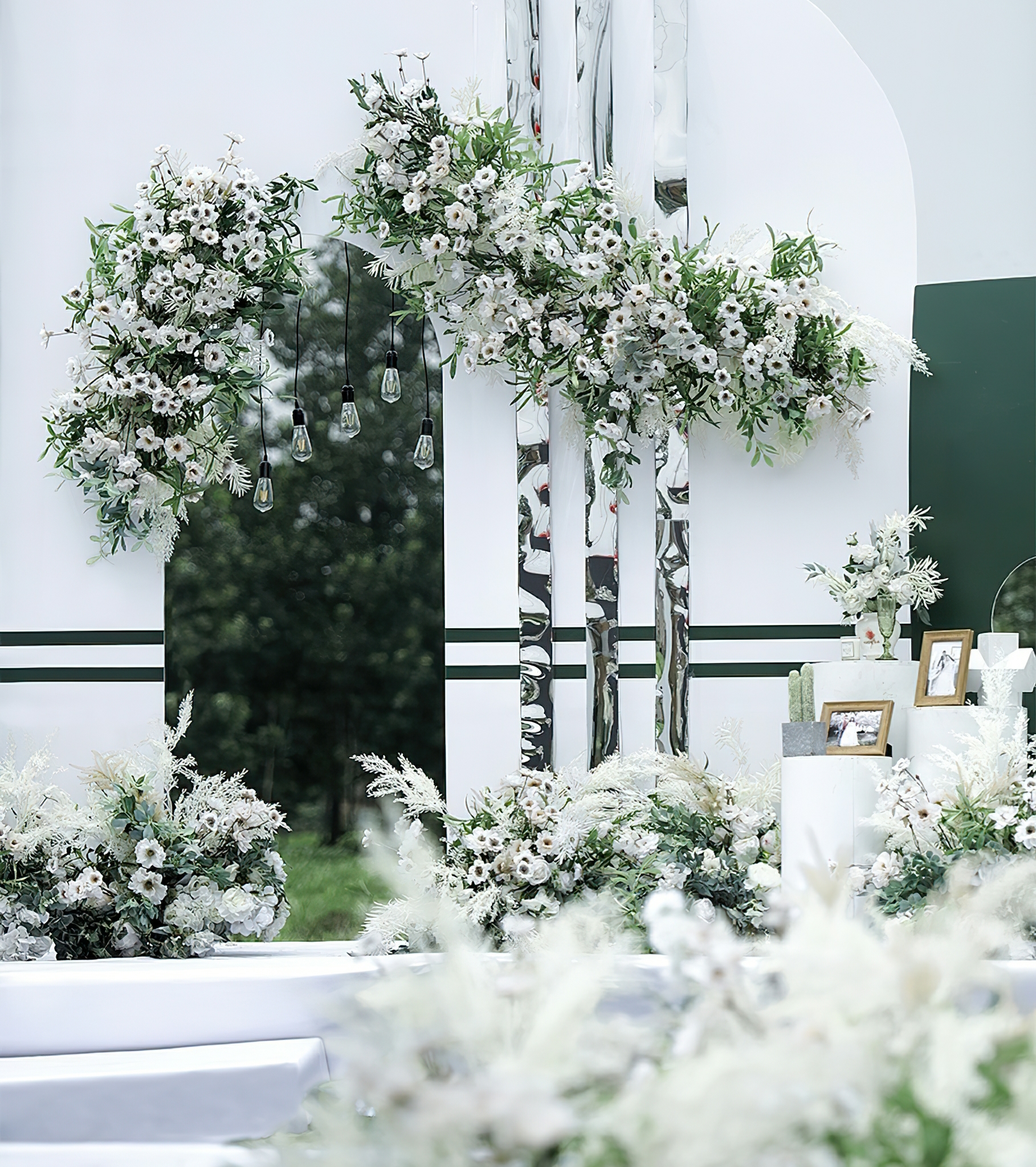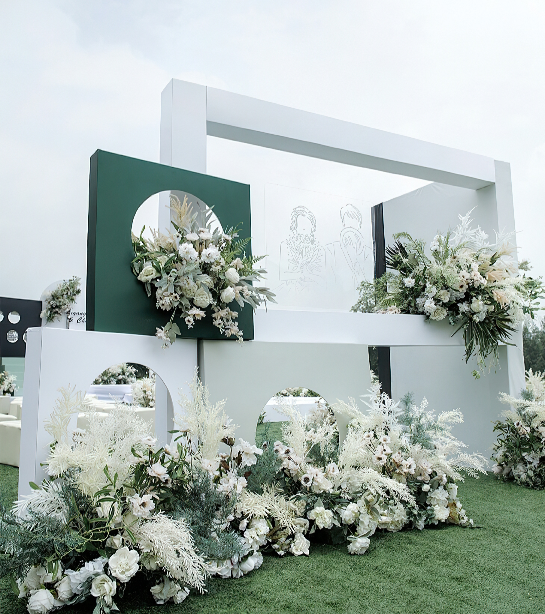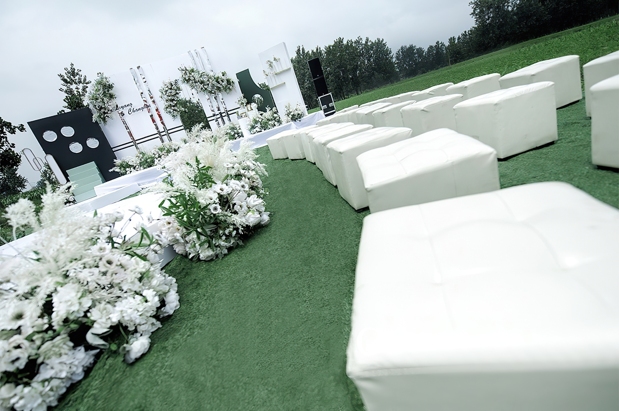 - 通道路引:仿真花艺造型设计10组 - 仪式起点:仿真花艺造型4组,主题道具装饰2组
