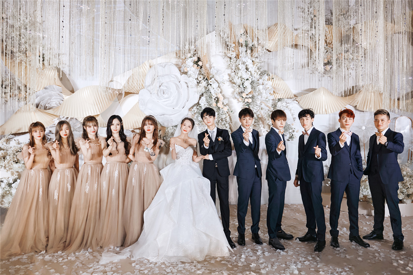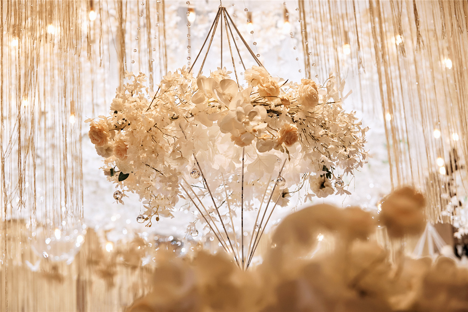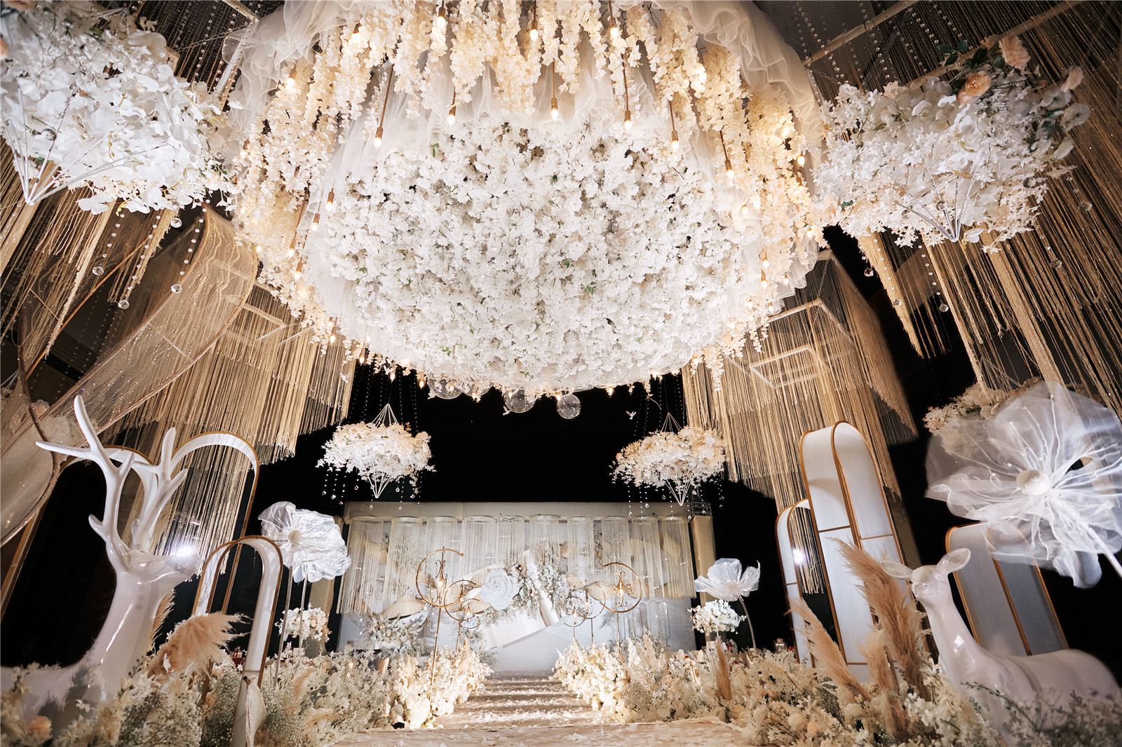 4路引花艺共6组,真花:仿真花=3:7,直径不小于60cm,颜色根据主题色调调整更换。