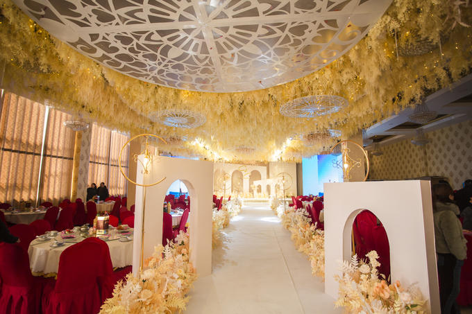 济南大喜日子婚礼会馆 做婚礼我们追求品质 金杯银杯不如新人的口碑 特惠套餐【一】9800元 原价13800元,仅售9800元 服务人元 1、专业婚礼司仪1名【与新人提前沟通彩排1次、婚礼当天带领新人敬酒】 2、婚礼全程双机位高清摄像师2名【婚礼全程录像、精彩后期剪辑】 3、婚礼纪实跟拍师1名【拍摄500张左右】 4、专业婚礼策划师1名【婚礼前期策划筹备、咨询、执行】 5、专业音响师1名 6、专业灯光师1名 7、现场布场人员若干名 婚礼现场布置类 一、婚礼酒店门口10米/12米拱门一座 二、主舞台背景布置 1、唯美纱幔、舞台背景1套 2、主题喷绘、KT板和花艺装饰 3、主舞台摆件、仿真花艺装饰 三、T台布置 1、T台2.6米宽、长12米一组 2、精美婚礼路引、路引花各一组 3、T台地毯、仿真花瓣一组 四、幸福起点布置 灯光音响类 1、面光灯8台含灯架一组 2、LED帕灯4台含灯架一组 3、洗墙灯一组 4、高品质音响一套 婚礼现场鲜花六件套【装饰婚车头花、车边花、新娘手捧花、新人胸花、手腕花、花瓣】 赠送:婚纱礼服三件套 婚纱、秀禾服、晚礼服 伴娘服2套
