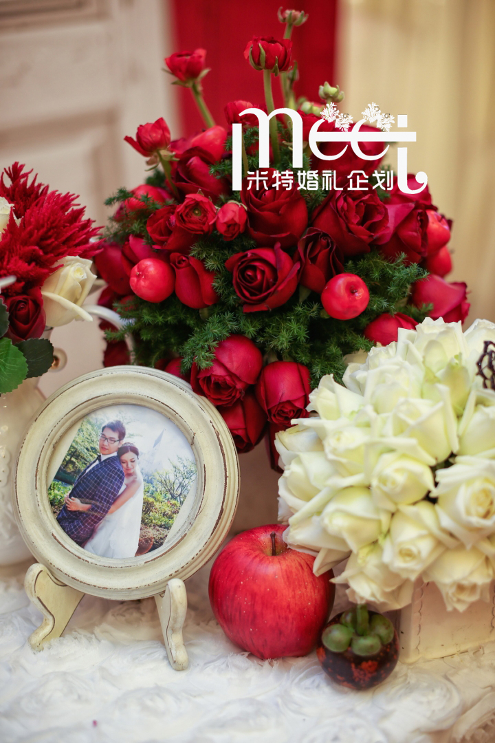 “那一天,阳光正好,你穿了一条红色的裙子,那一刹那,所有的色彩都黯然失色,只有你最耀眼。”红色是幸运的颜色,也是新郎第一次见新娘她身上穿的颜色。愿幸福永远伴随你们。