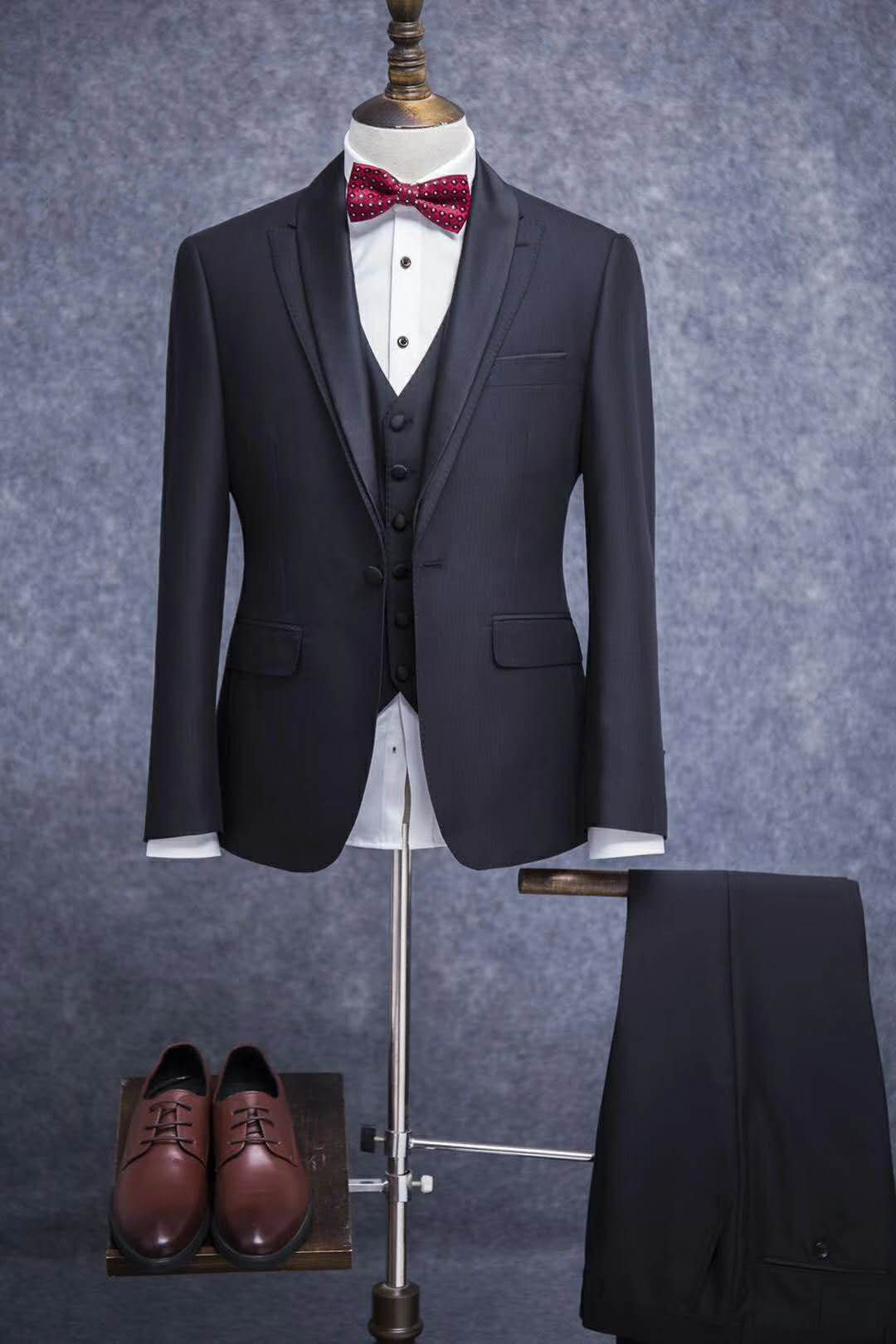 西装一套+衬衫+领结/领带,全套配齐,一站式采购。更有牛皮、羊皮皮鞋厂家价格出售(皮鞋我们原厂价格出售哦~),欢迎挑选~