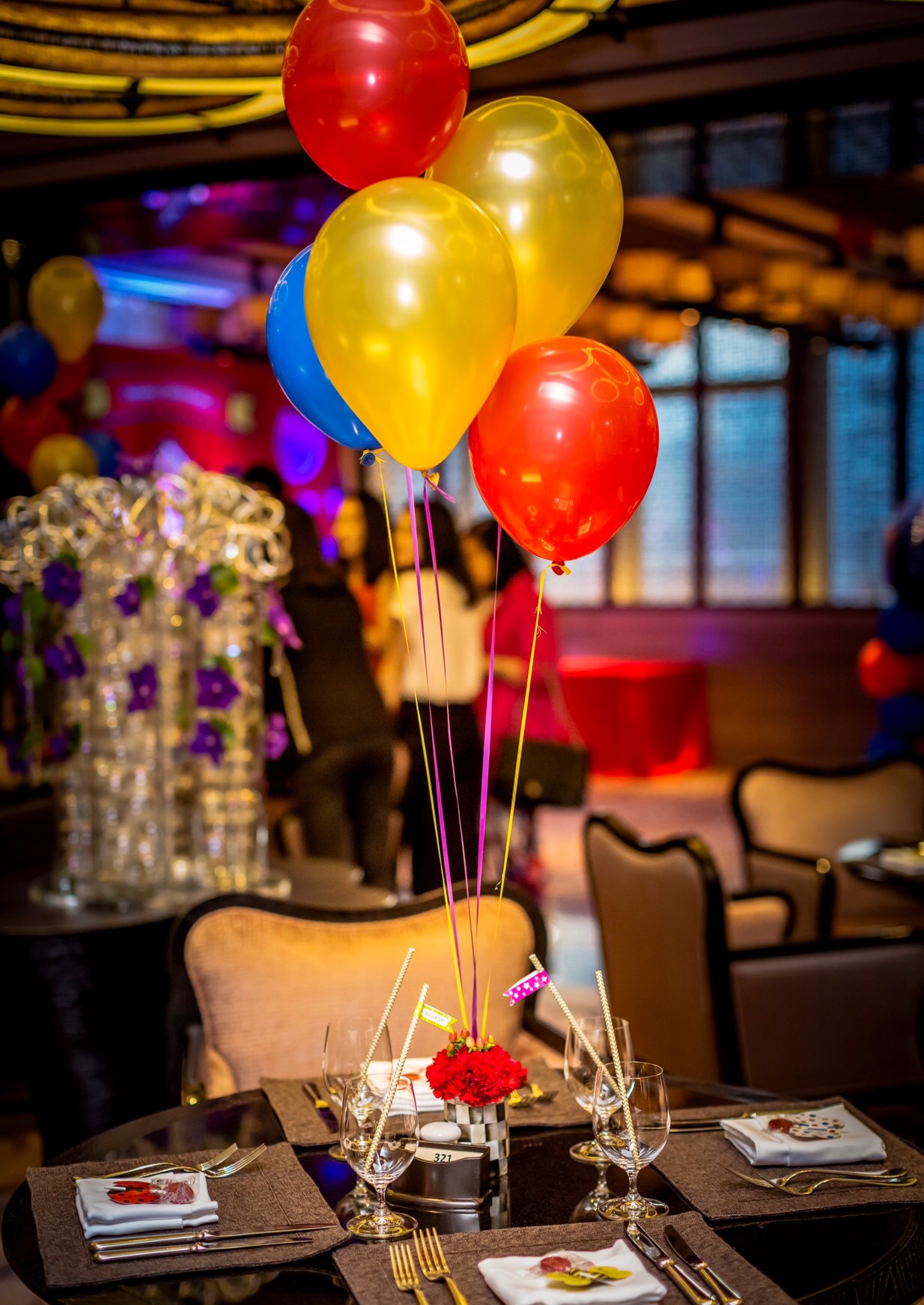 桌面鲜花布置,桌面飘空氦气球布置