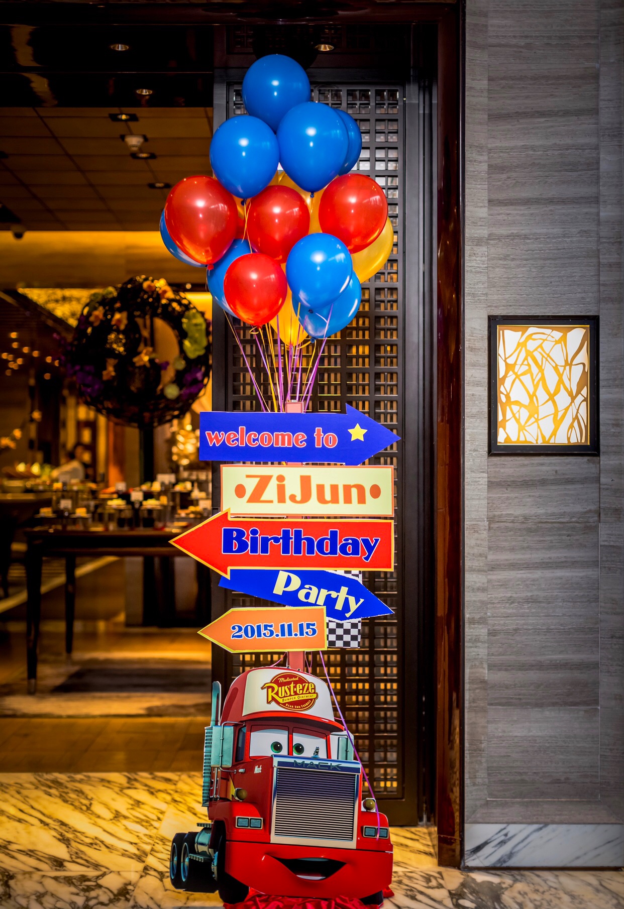 门口宴会主题迎宾牌加氦气球布置一组