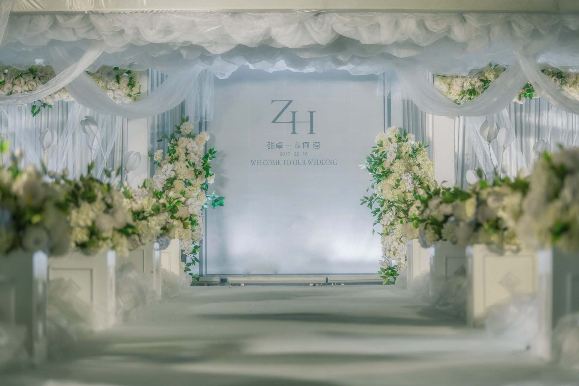 通道轻纱 24米中间韩式花柱中间穿插