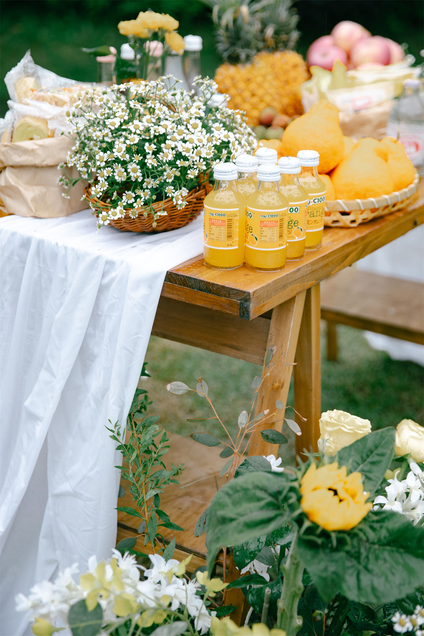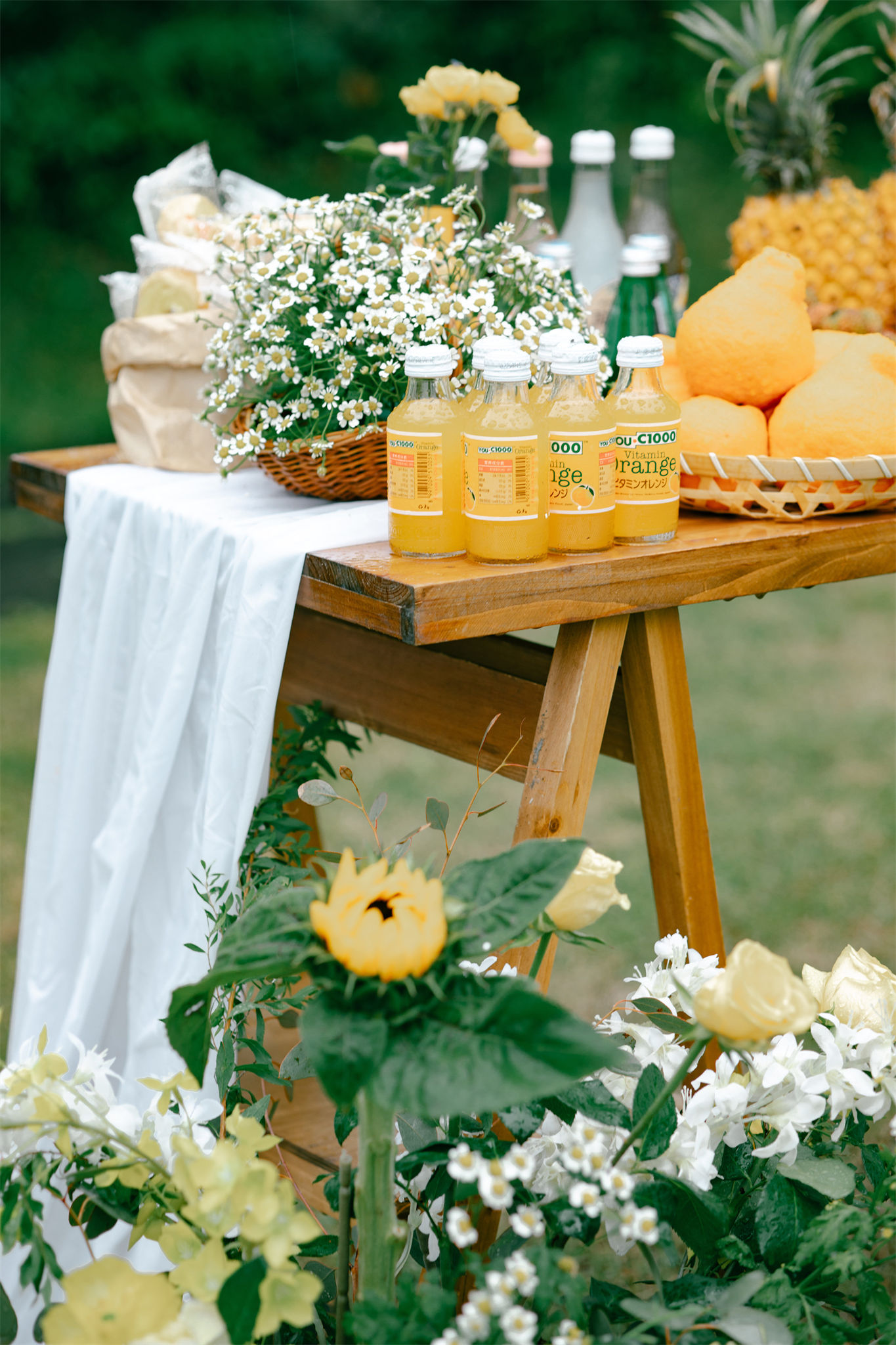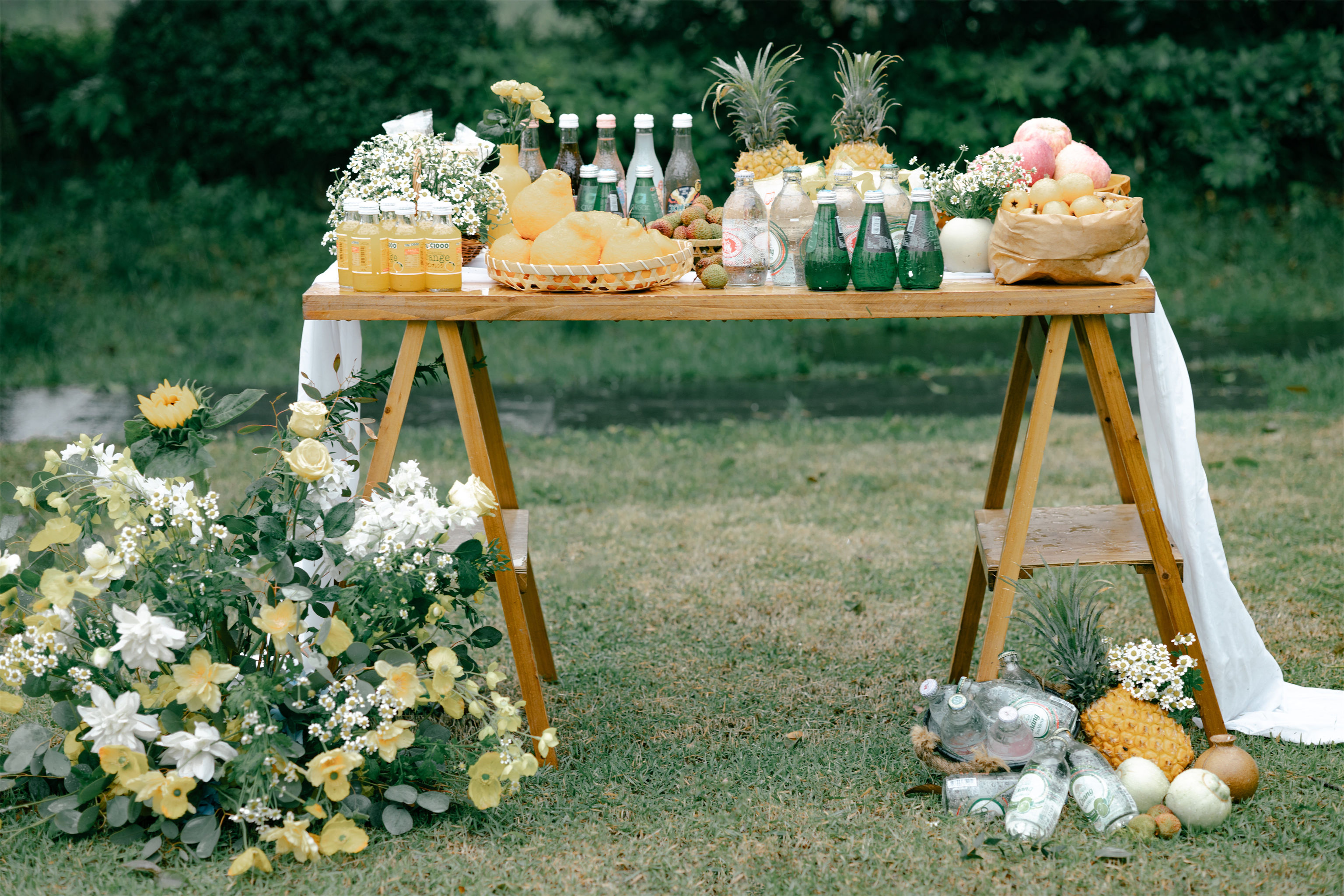 户外草坪黄色系小清新婚礼布置