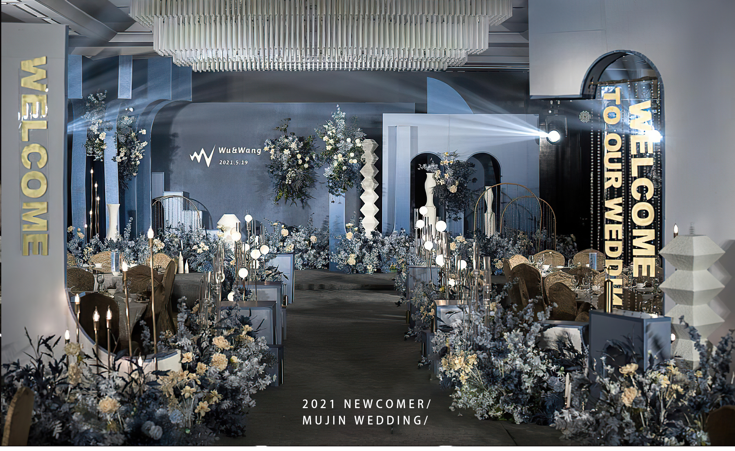 中小型宴会厅精致布置 沉浸式蓝色文艺婚礼
