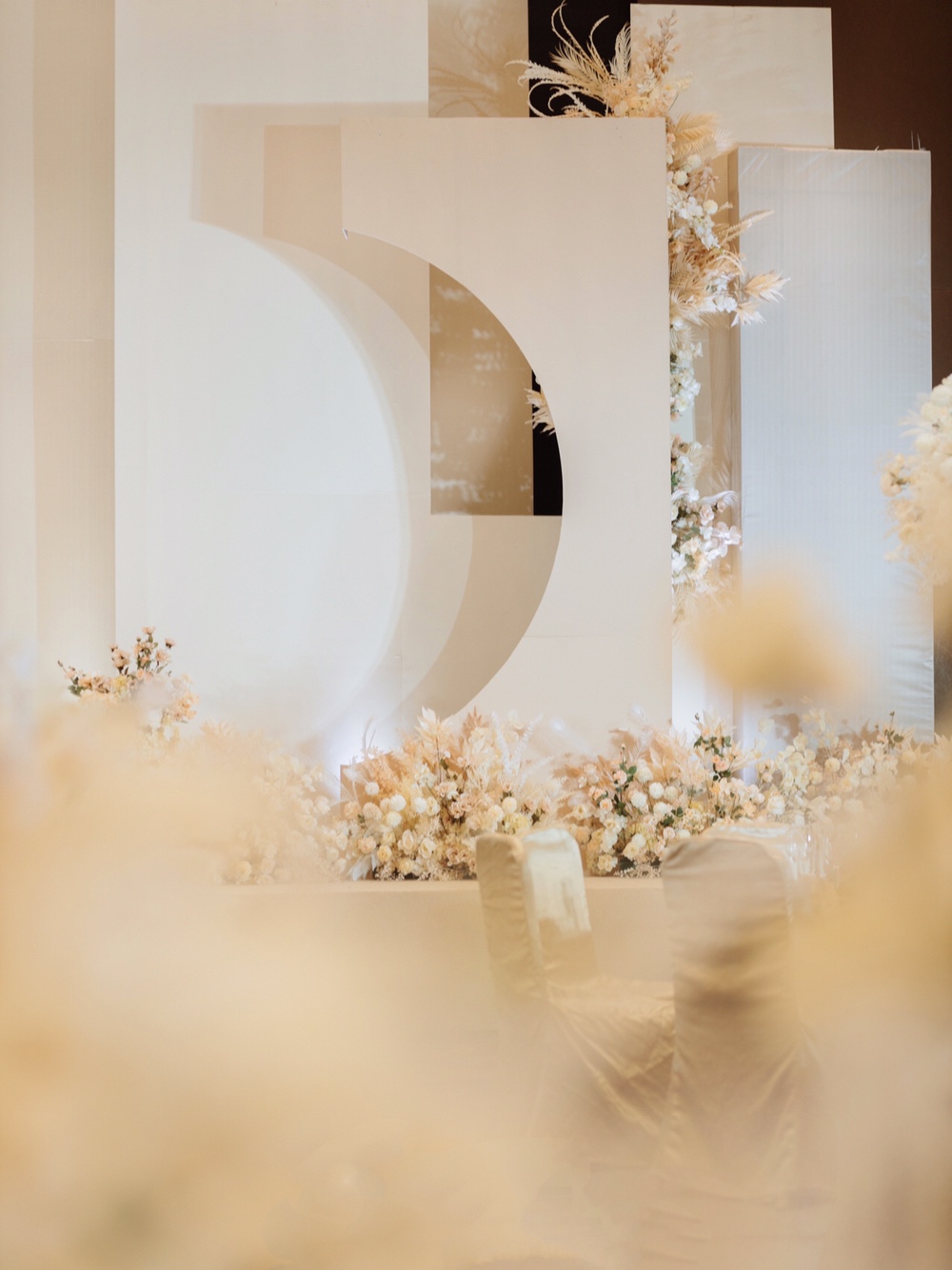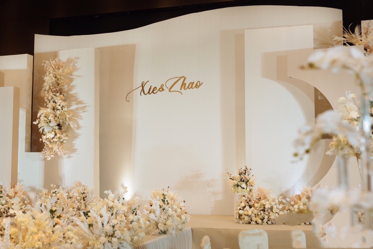 - 婚礼采用了低调含蓄的香槟色为婚礼的主色调,纯粹的色彩柔和唯美,赋予婚礼温柔细腻的质感,搭配同色系精致花艺,似乎在与你诉说着此生挚爱。 - 婚礼通过设计,将灵感与创意糅合,呈现泰式简约风格,明朗的线条随心而为,即成格调,以细节勾勒婚礼轮廓,在质感与简约的碰撞下散发着纯粹温馨的魅力,艺术感满满。 -