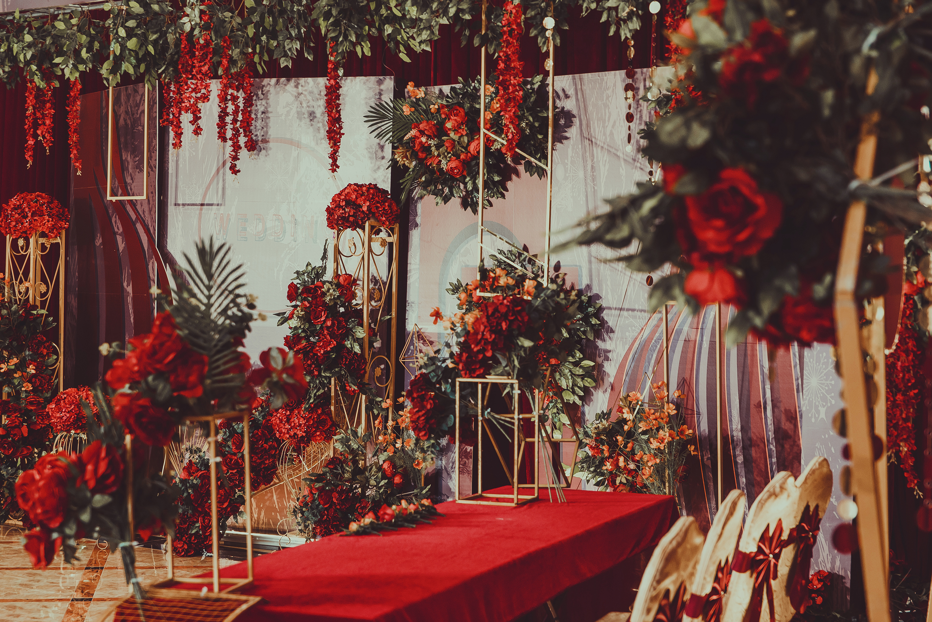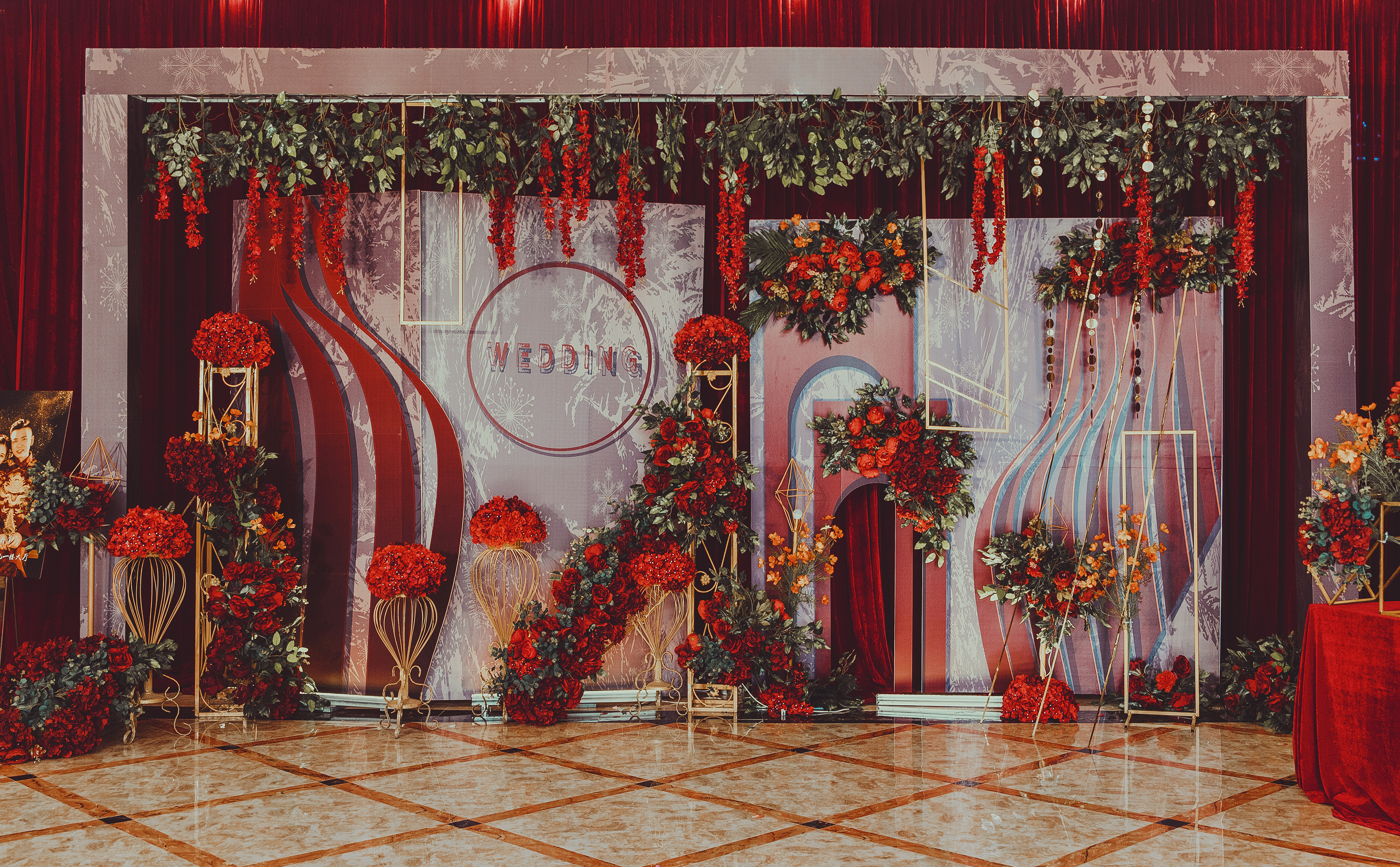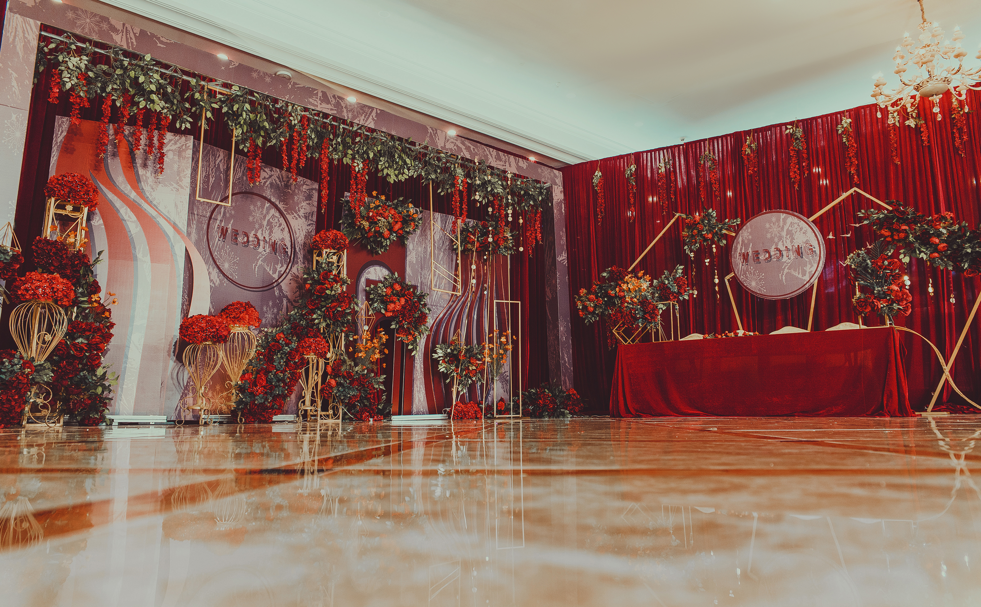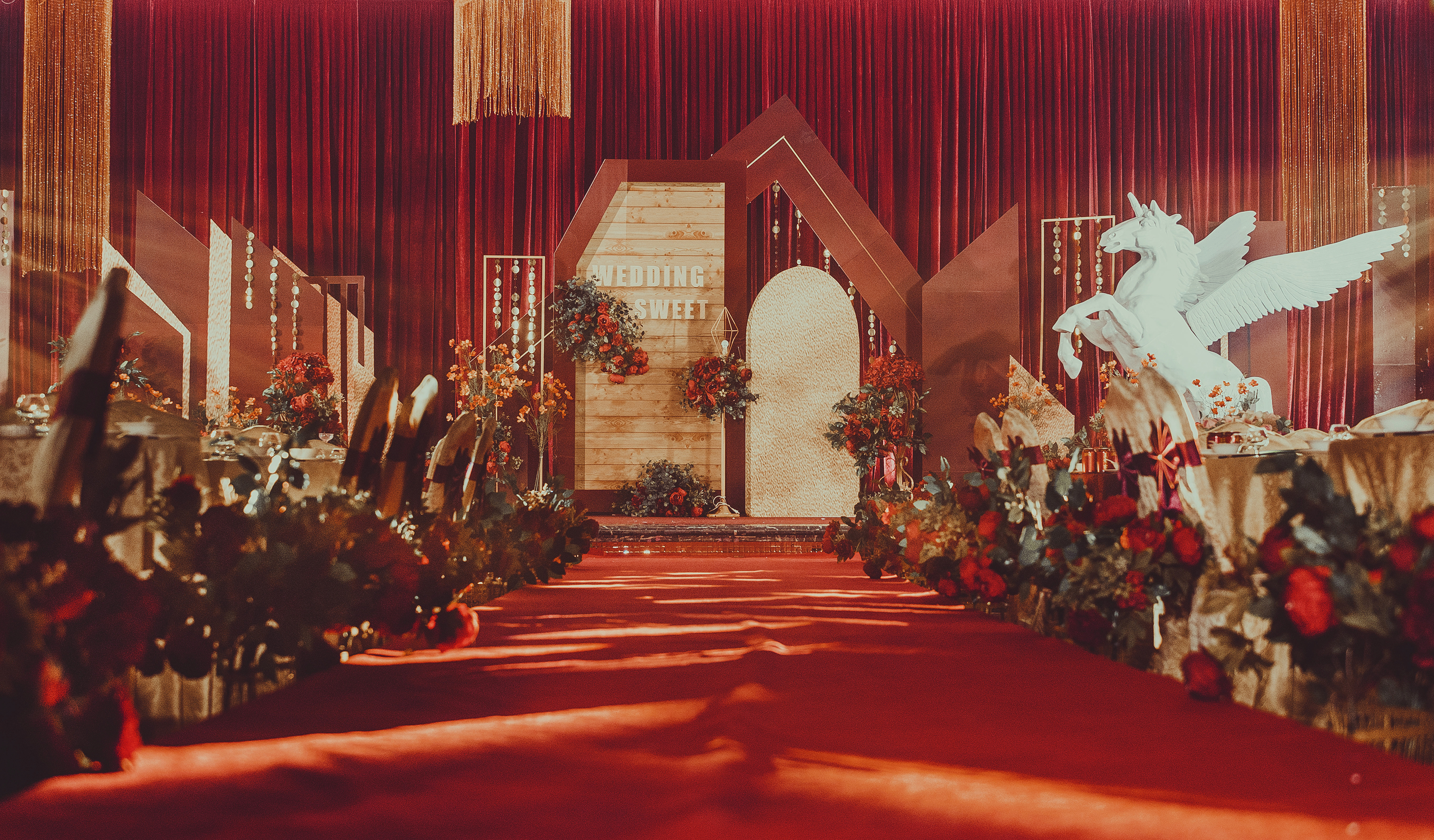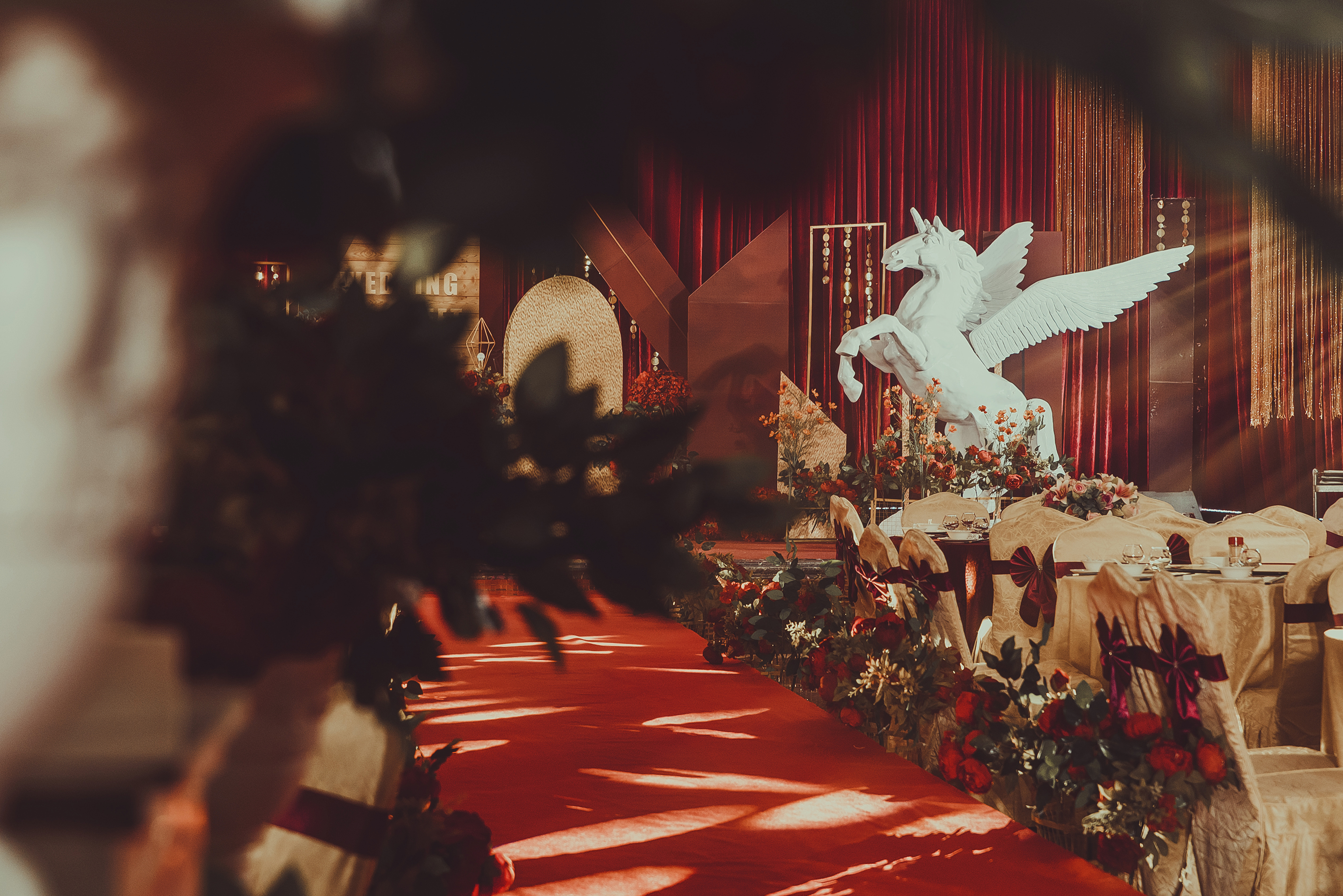 ·T台布置+T台摆设(大红地毯布置+主题色仿真花)