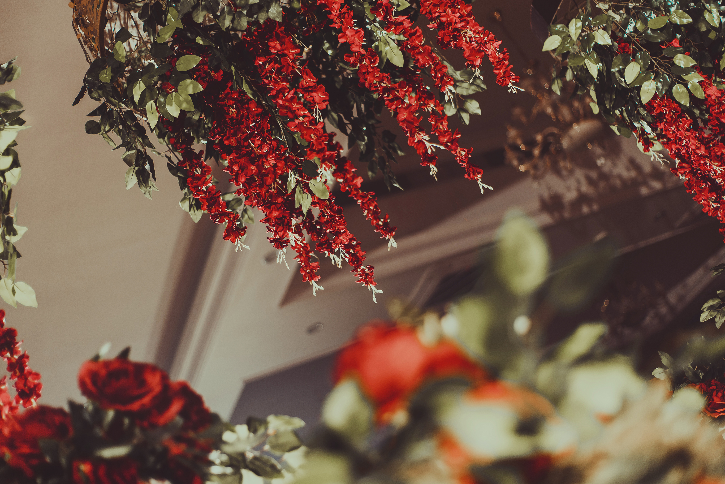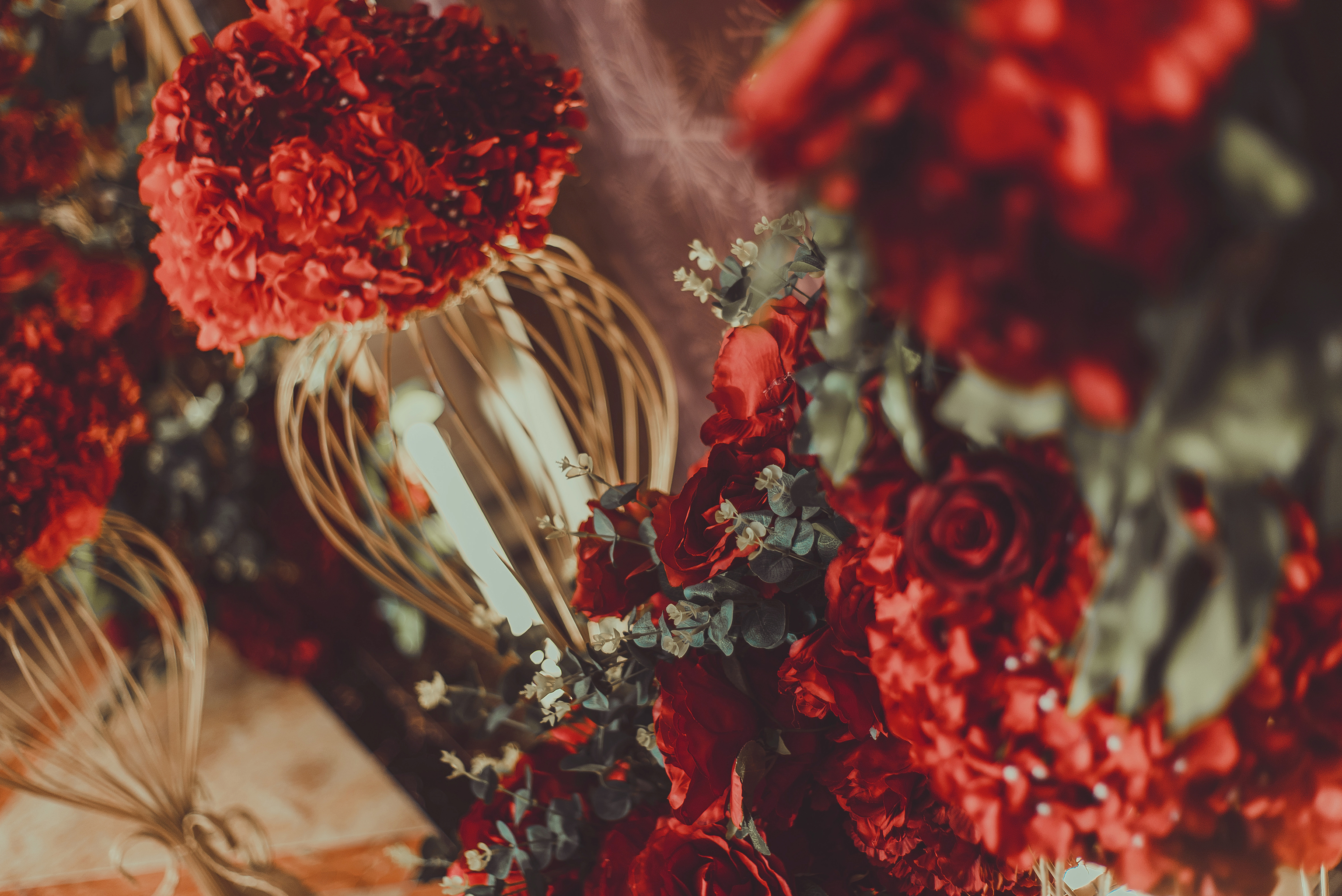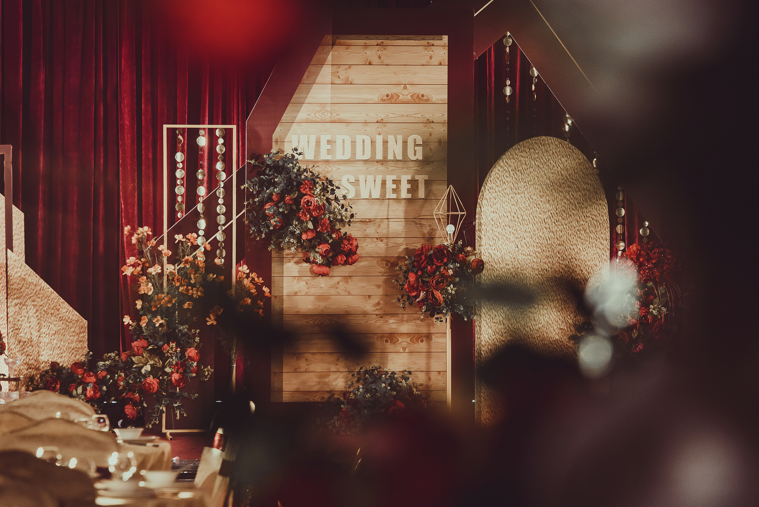 ·中式签到台区布置(主题色系鲜花+各式布置摆设)