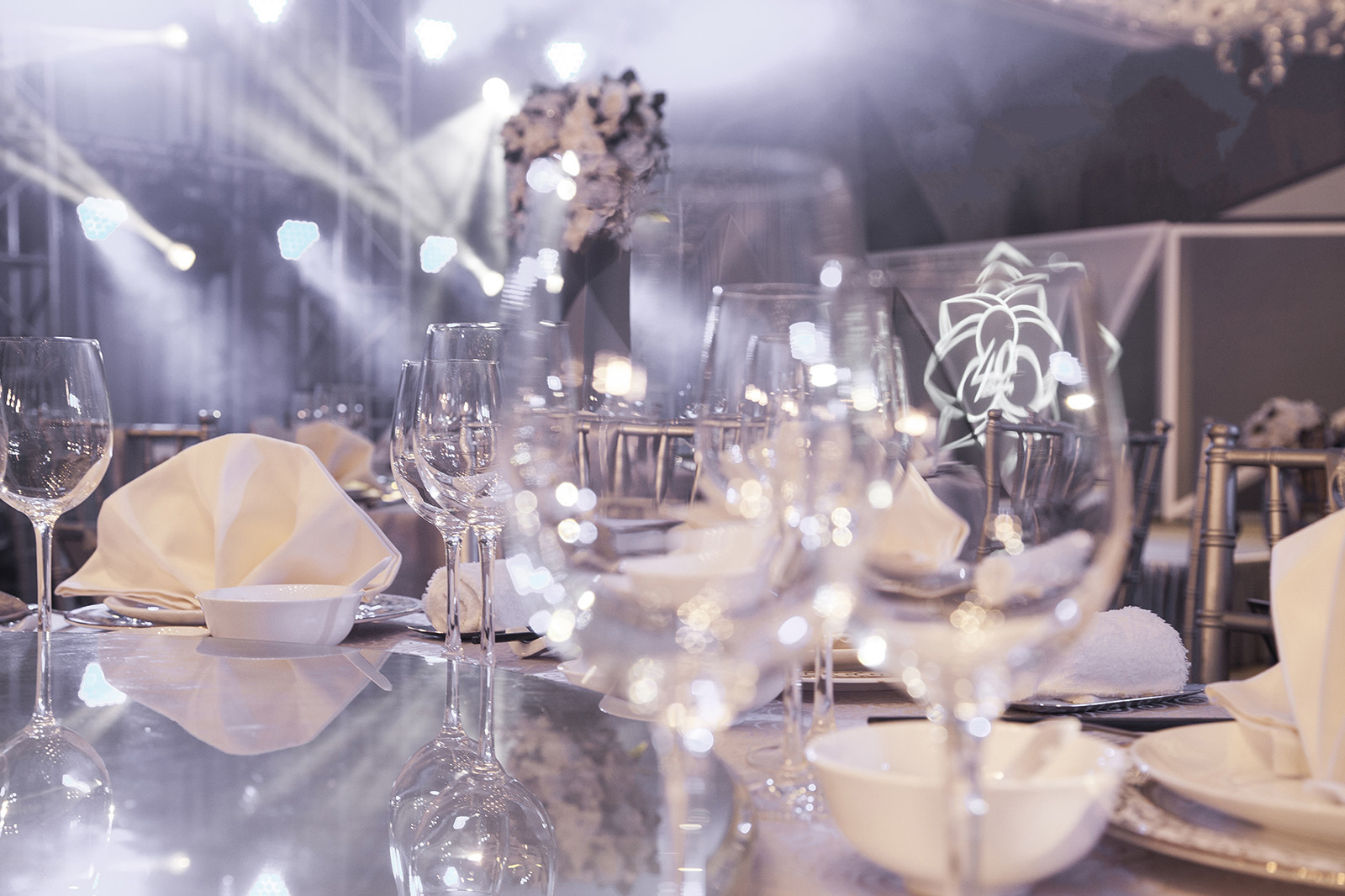 双风口大功率泡泡机,包含遥控器和泡泡油。配合婚礼进程,在高潮环节进行渲染,营造唯美的舞台气氛。
