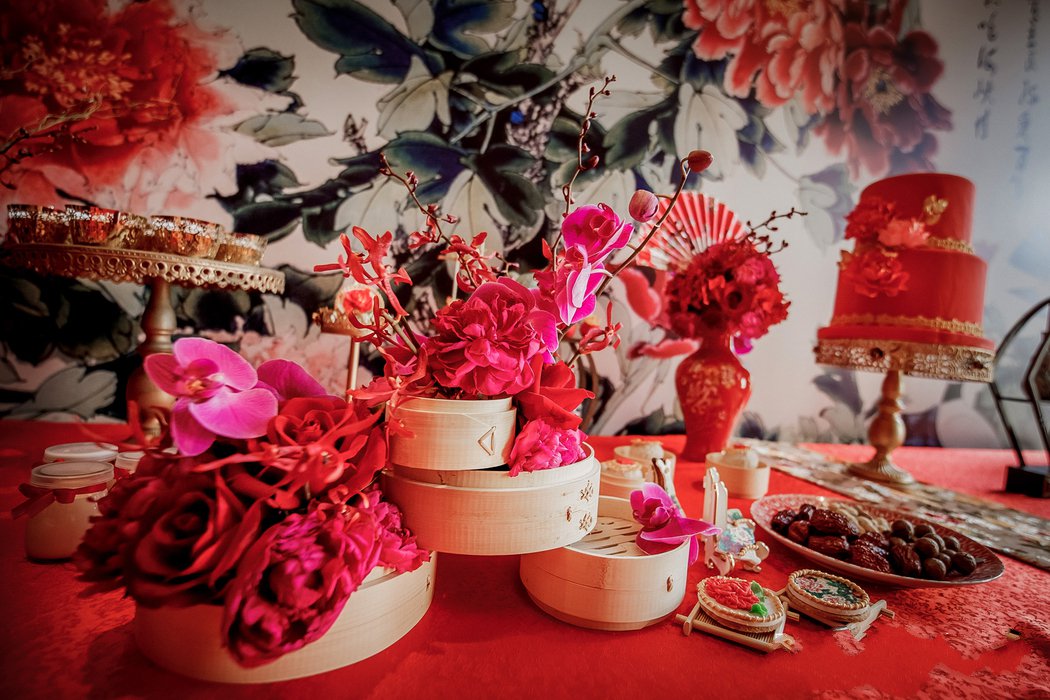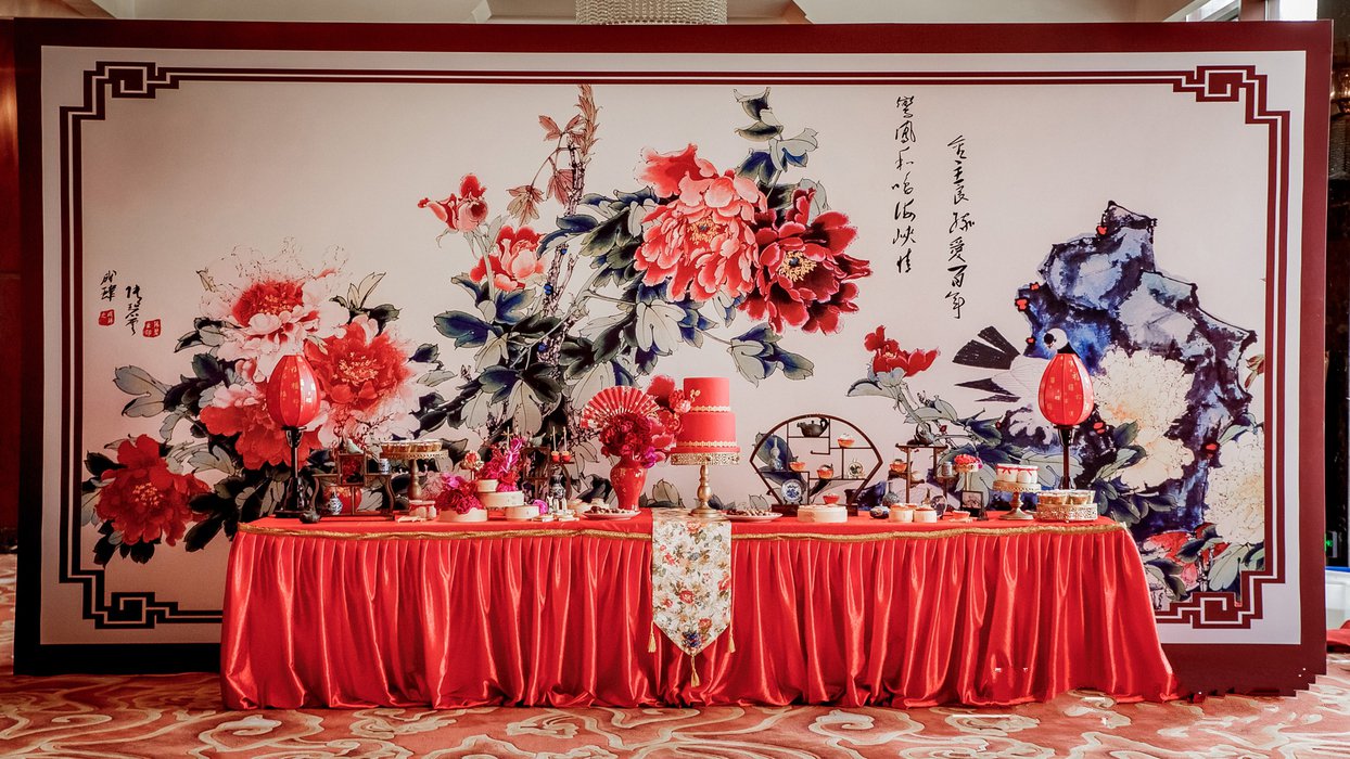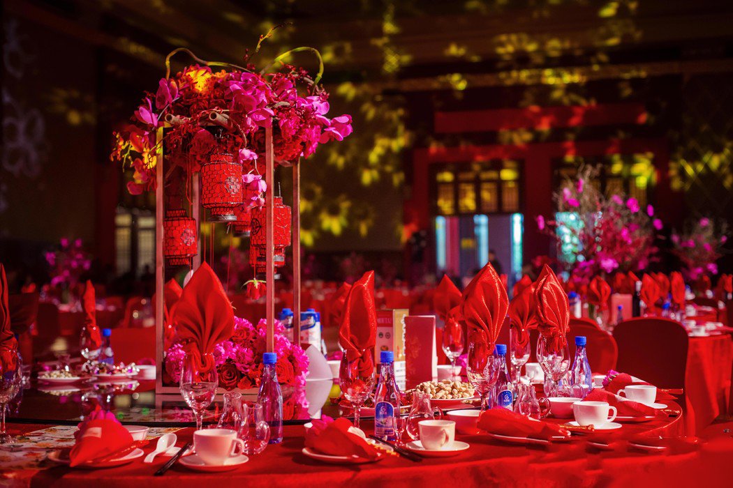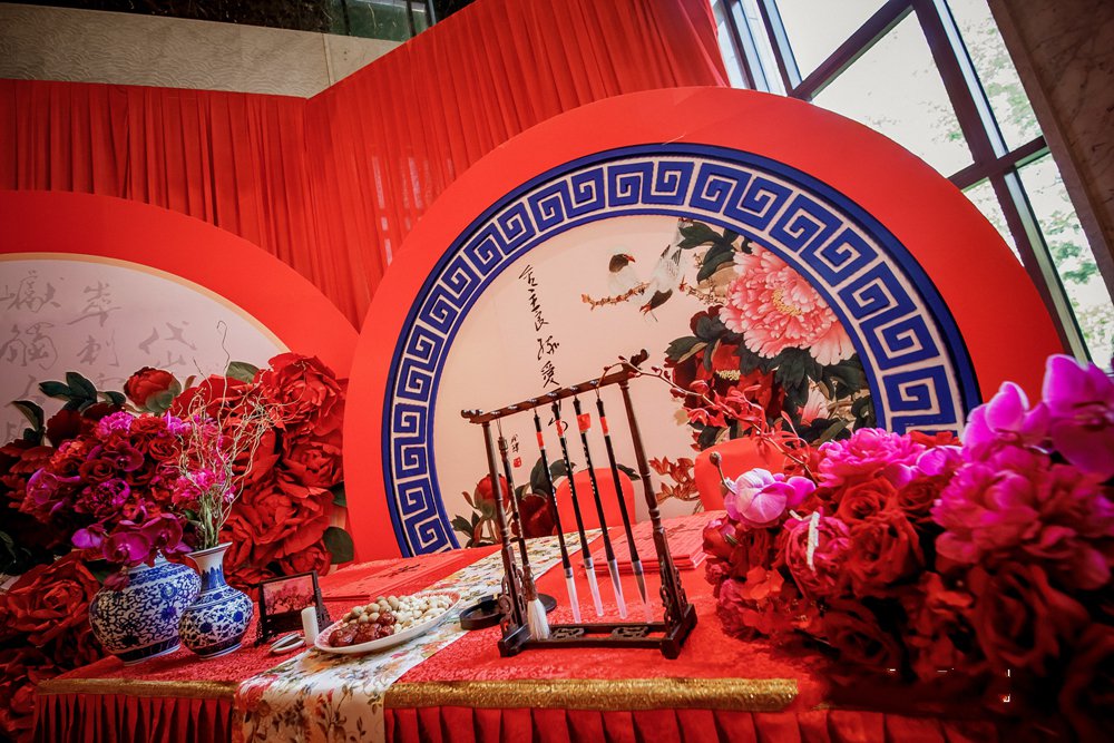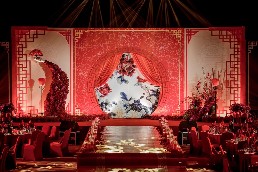 现场已“鸾凤和鸣海峡情,金玉良缘爱百年”为主题,60余桌的婚礼会场,通过我们15个小时的精心布置,从空间到细节,都贯穿出传统中式的喜庆与团圆。