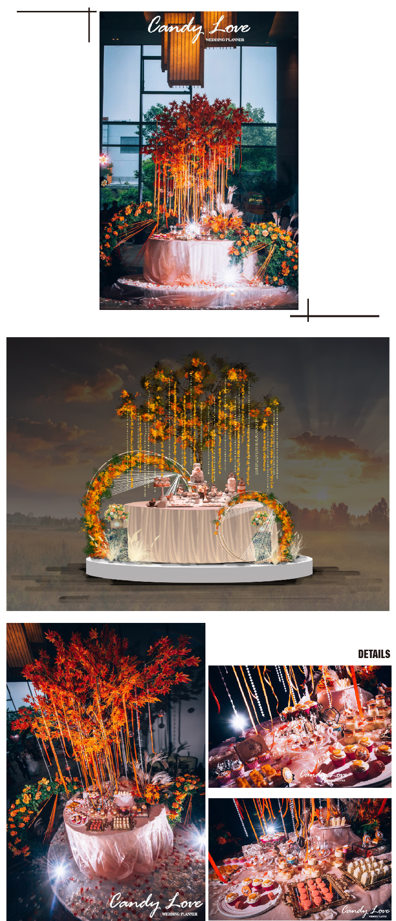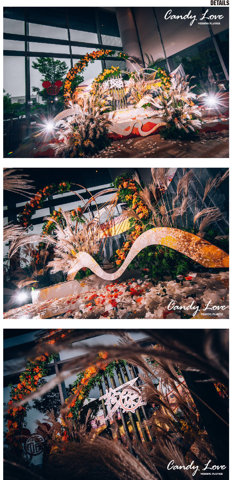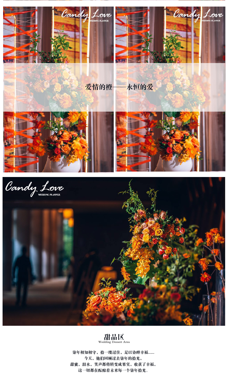 套餐内的方案构思、场地布置、喜好需求、报价明细等婚礼细节,我们都将为您专属定制,会根据每一对客人的喜好要求结合场地情况和预算做整体方案及报价。