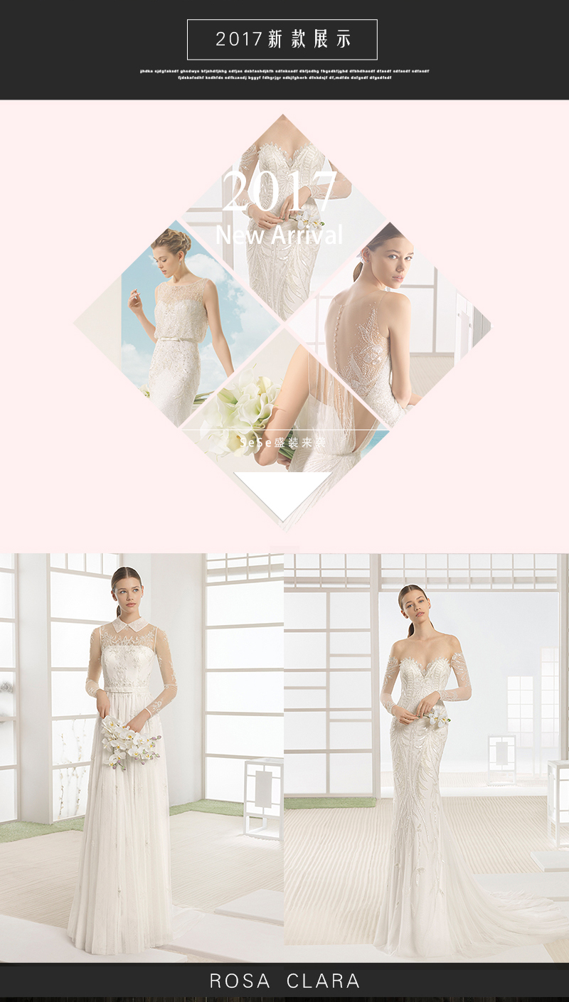 2017新款The One贴花透视圆领拖尾婚纱