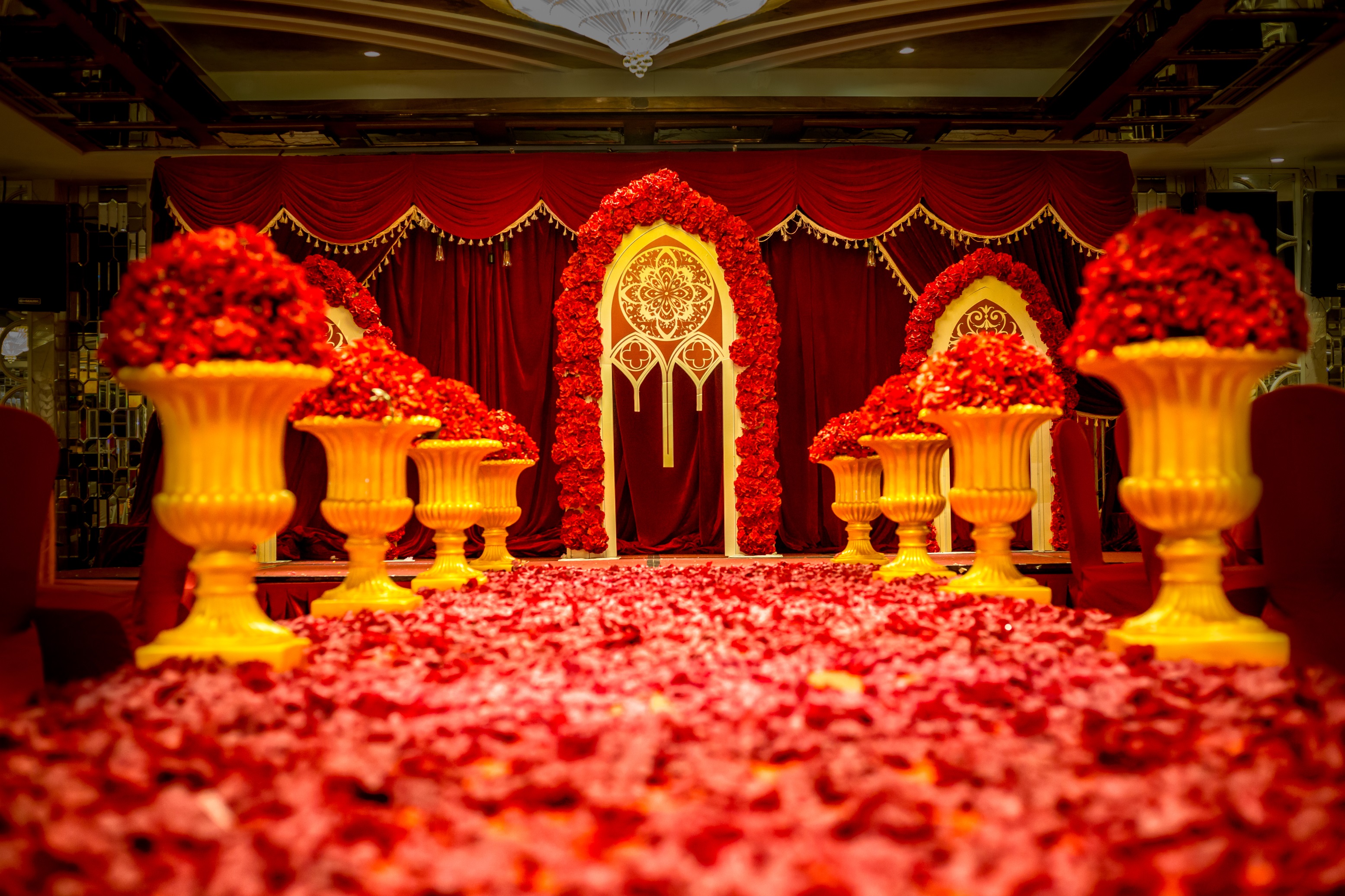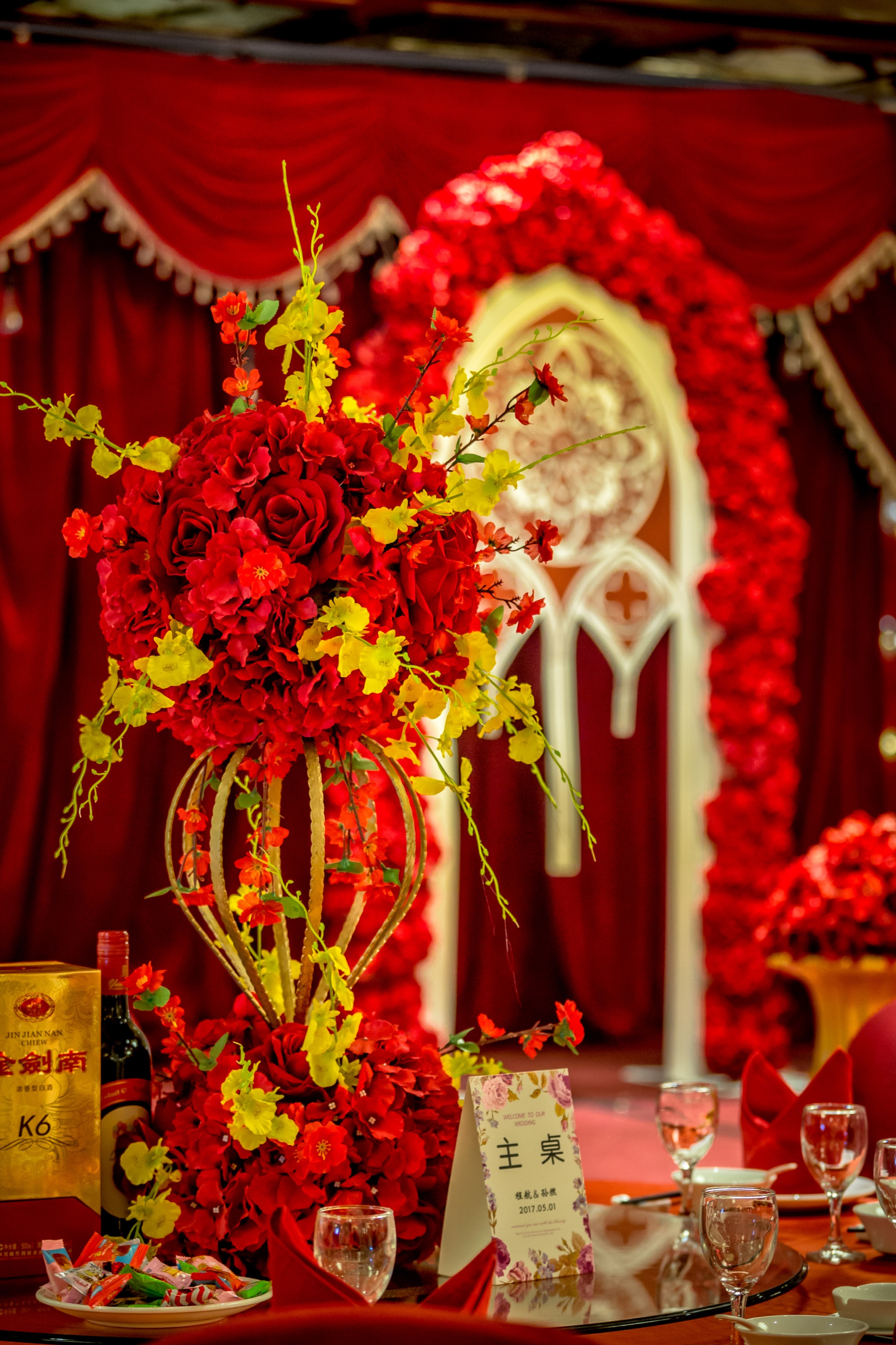 红色与金色撞色,可以说是传统中国人的大爱了,特别适合中国人的婚礼,多金多红火..........