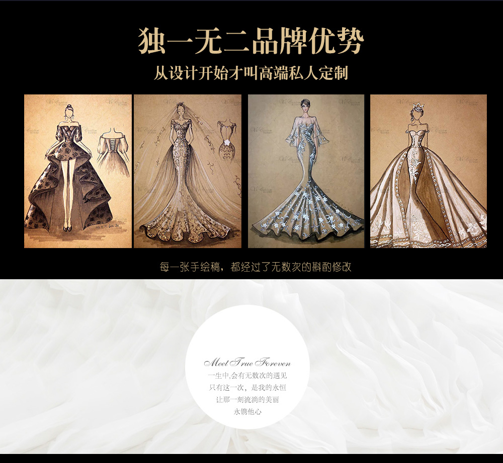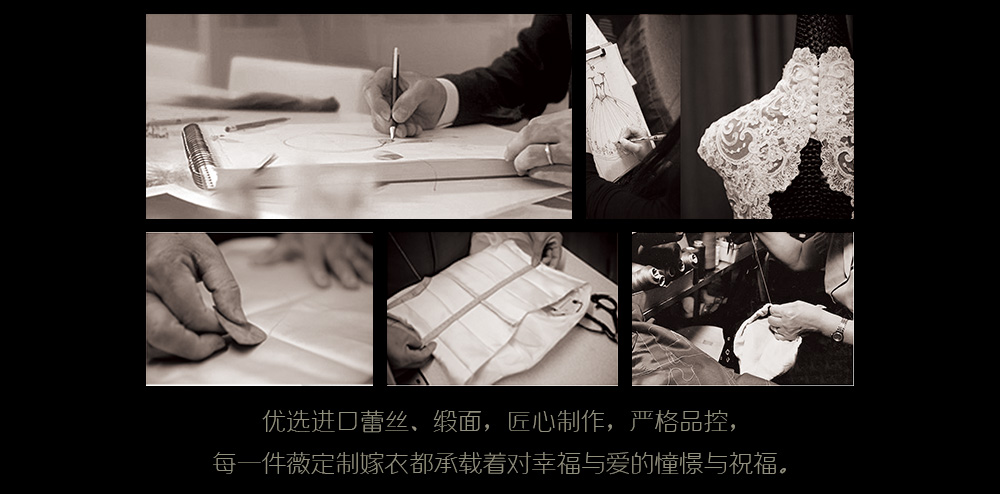 定制极致系列婚纱 送免租精致伴娘裙 2-3小时试纱时间 预约专业礼服师 全程2对1服务 专业精准量体服务