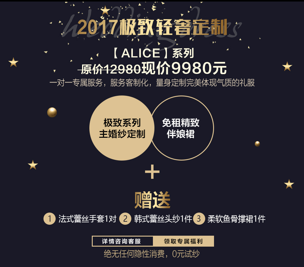 定制套餐: 极致系列主婚纱定制*1 免租精致伴娘裙*1