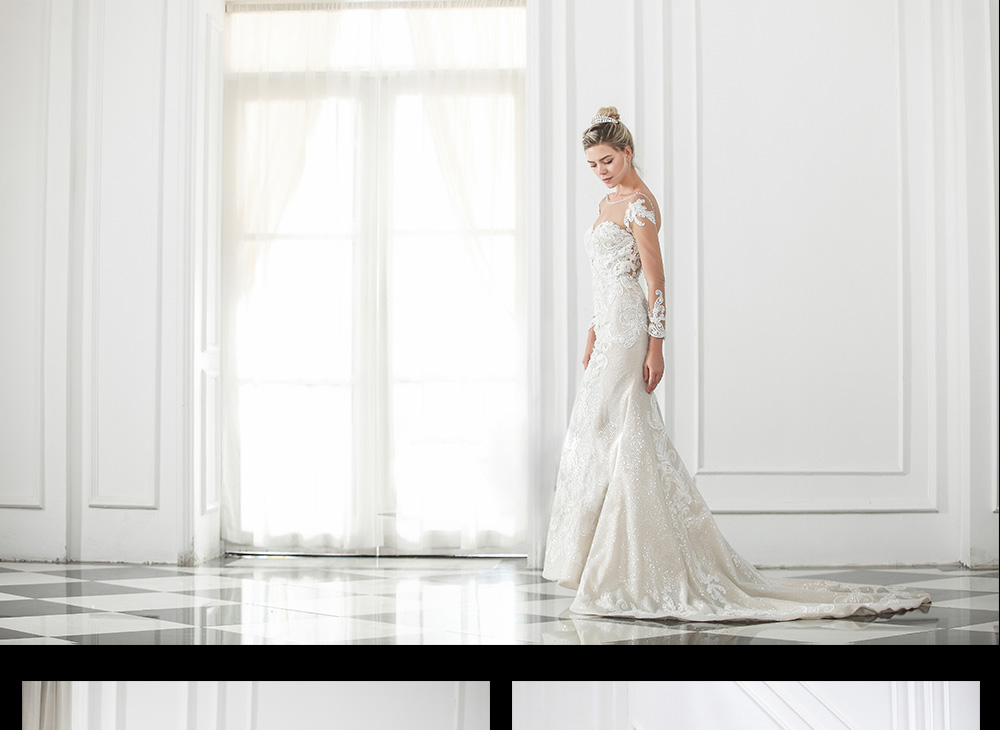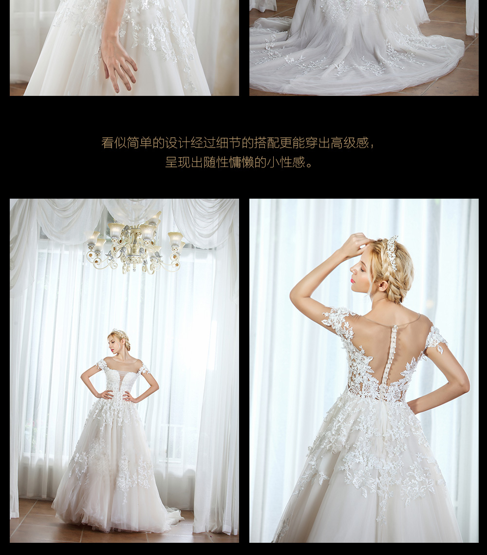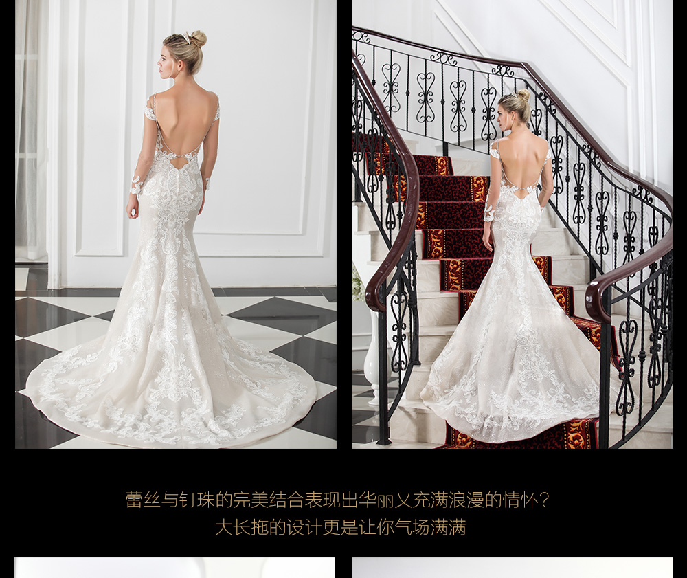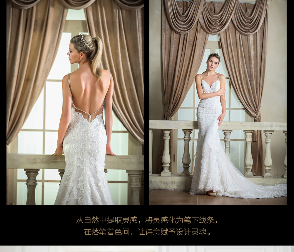 从自然中提取灵感, 将灵感化为笔下线条, 在落笔着色间, 让诗意赋予设计灵魂。 蕾丝与钉珠的完美结合表现出华丽又充满浪漫的情怀? 大长拖的设计更是让你气场满满。