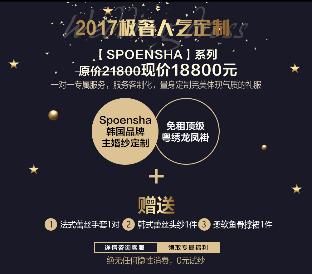 定制套餐: 定制Spoensha韩国品牌主婚纱*1 免租粤绣龙凤褂*1