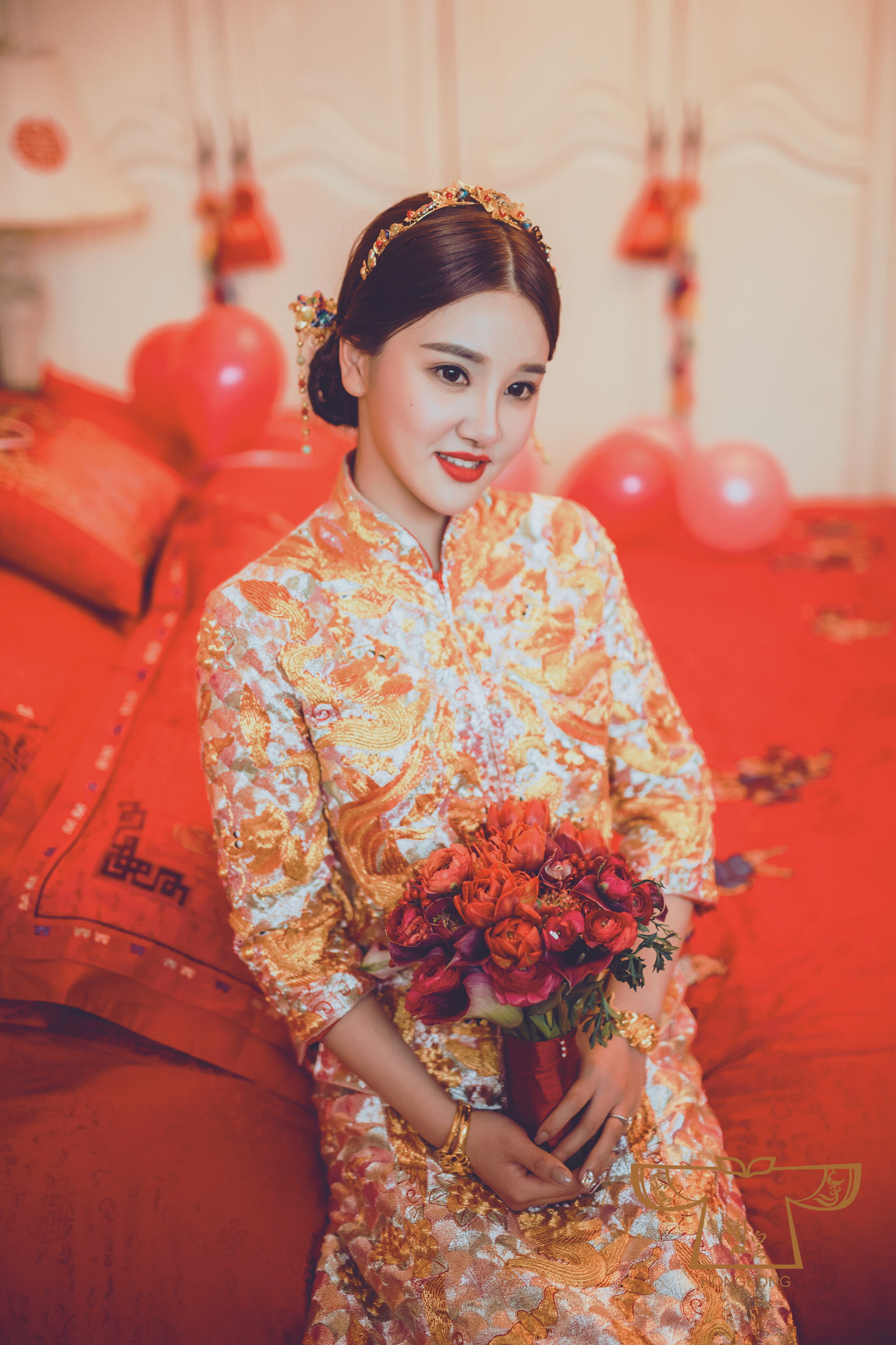龙凤褂是中国新娘嫁衣的经典代表,手工刺绣图案空凤栩栩如生。龙凤更是寓意龙凤呈祥、婚姻和谐幸福。